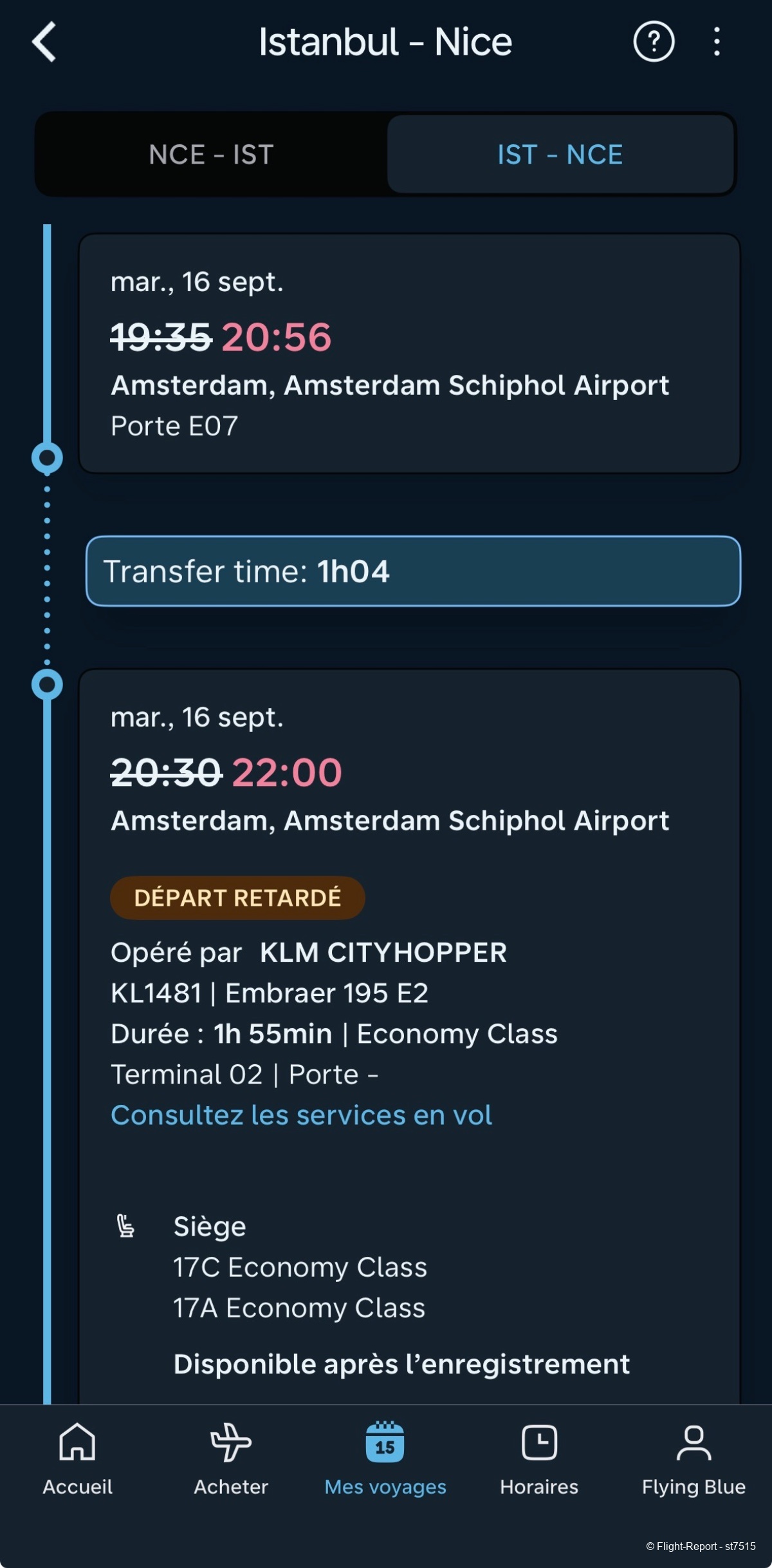 L'équipage nous informera ensuite des réjouissances qui nous attendent à AMS. Nous faisons partie des chanceux, notre vol vers NCE a été suffisamment retardé pour que la correspondance soit maintenue. Les espagnols passeront la nuit à AMS.