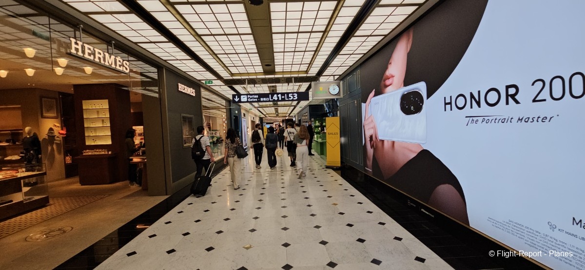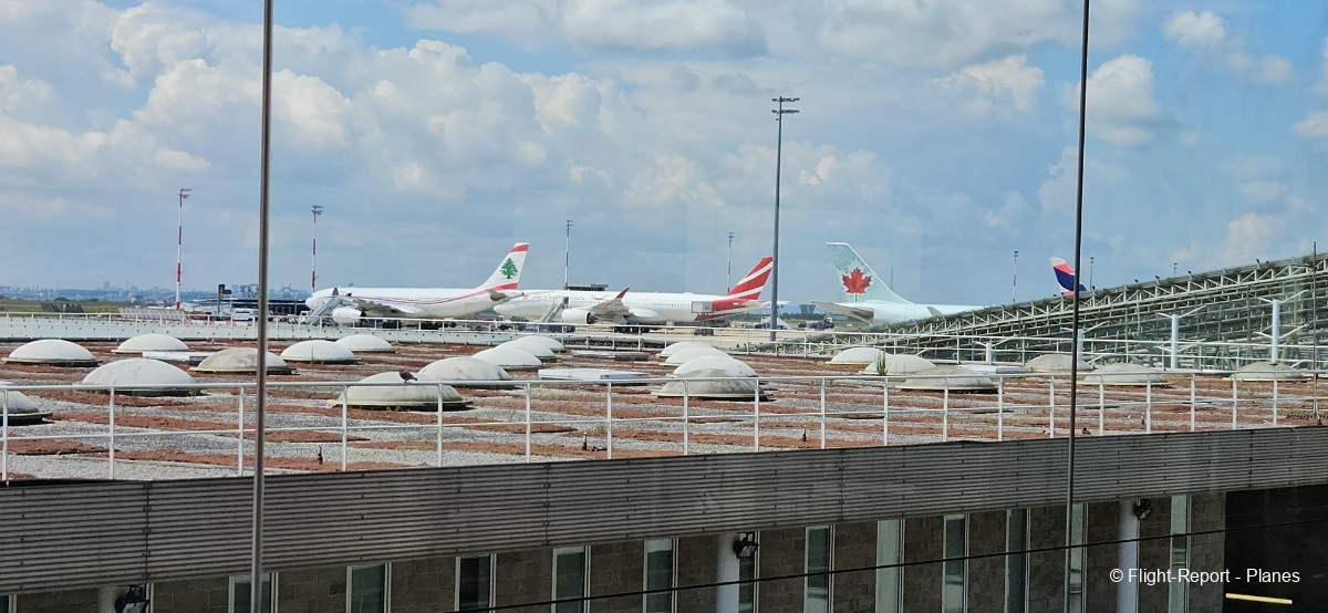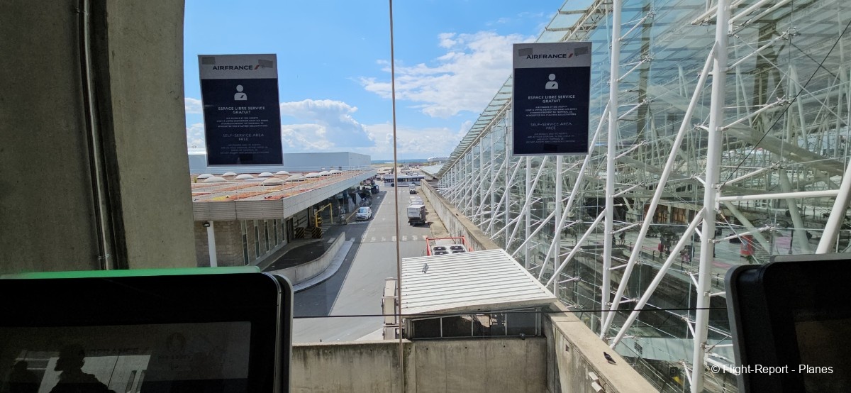 Une fois cette étape terminée, nous descendons d’un niveau pour déjeuner tranquillement. À 13h40, nous passons le contrôle des passeports, puis prenons la navette LISA en direction de la porte L du Terminal 2E. Ce trajet offre une belle vue sur le tarmac et les mouvements des avions.
