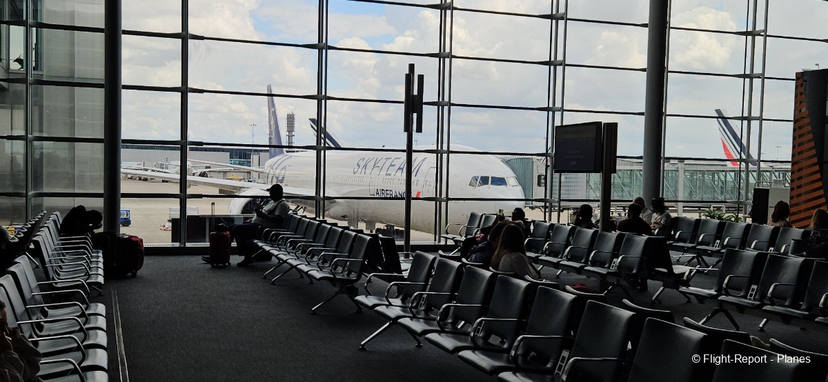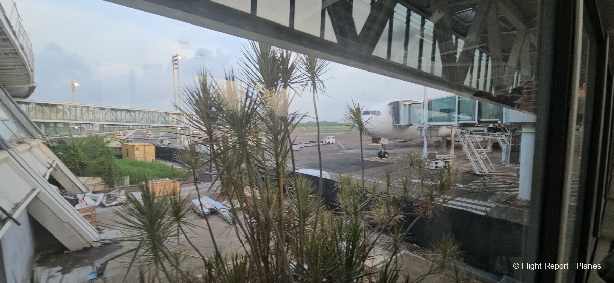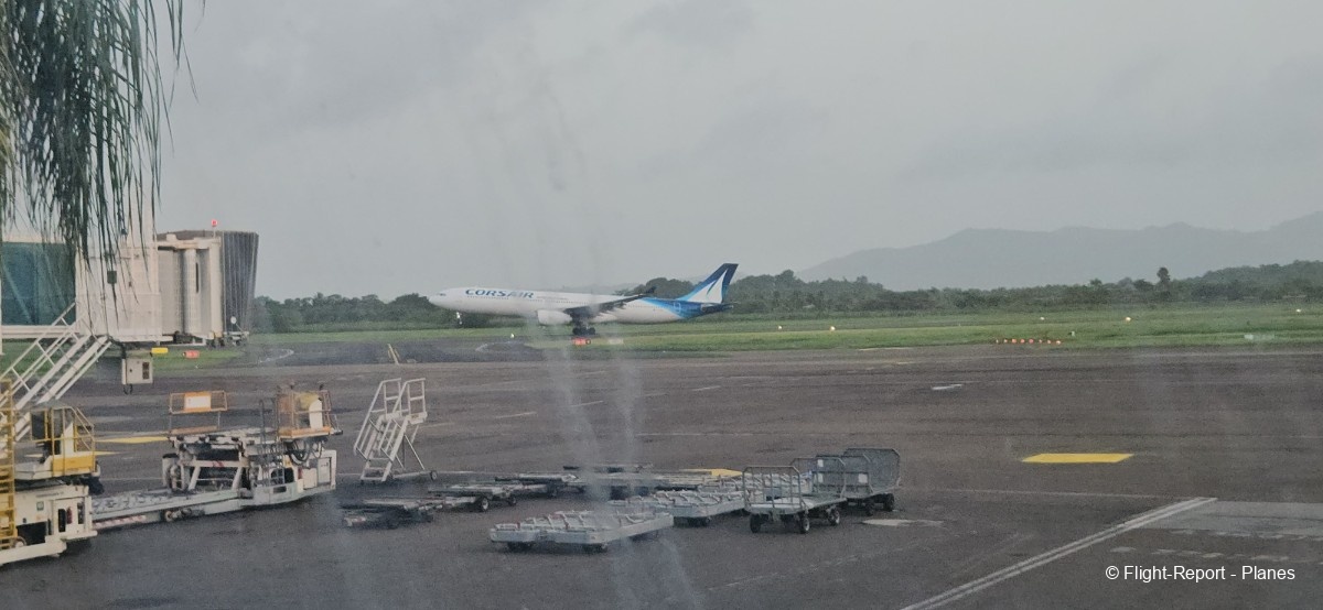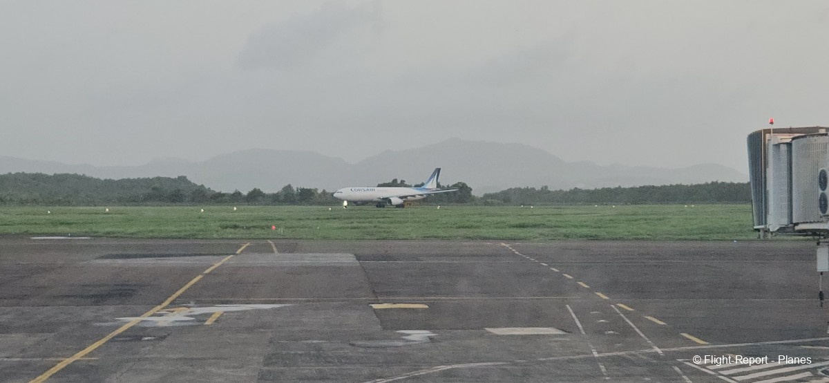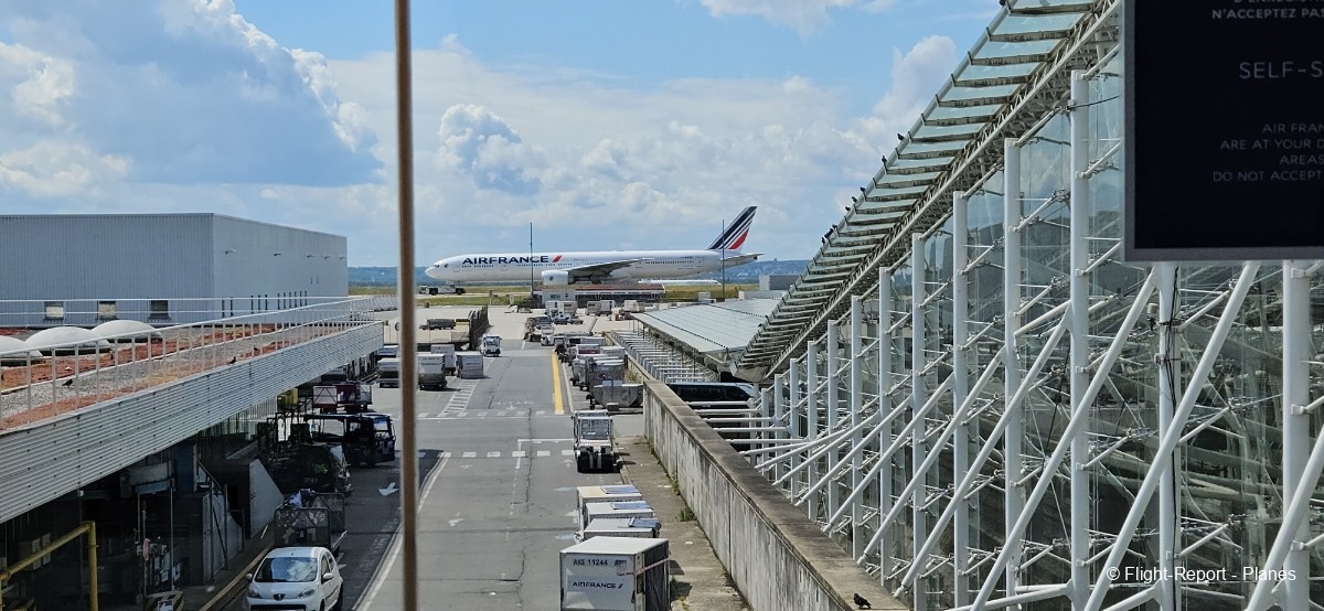 Une belle vue sur notre 777-300(ER) Air France s’offre à moi depuis l’aérogare, avant d’assister au décollage de l’A330 Corsair aperçu plus tôt.