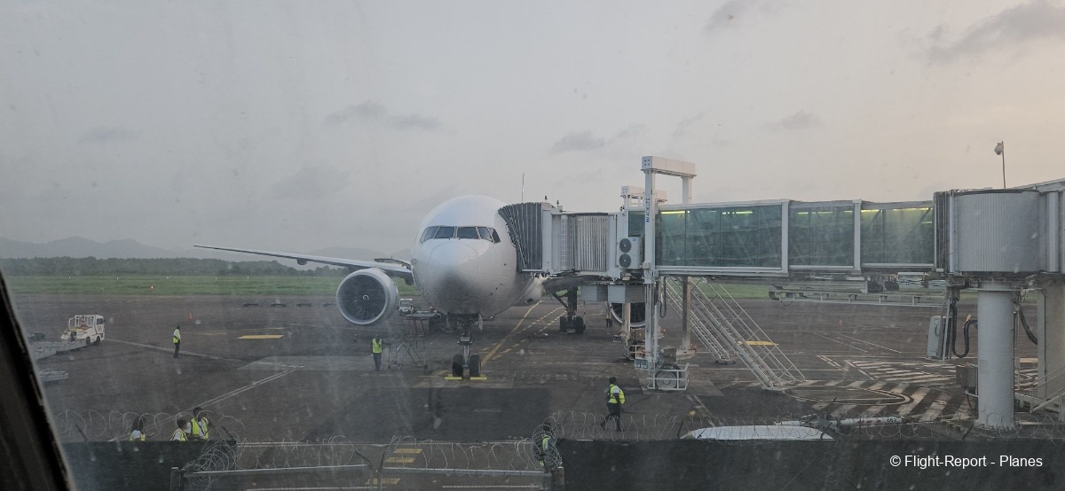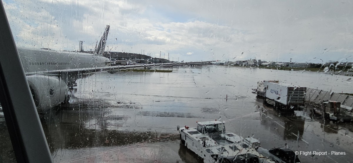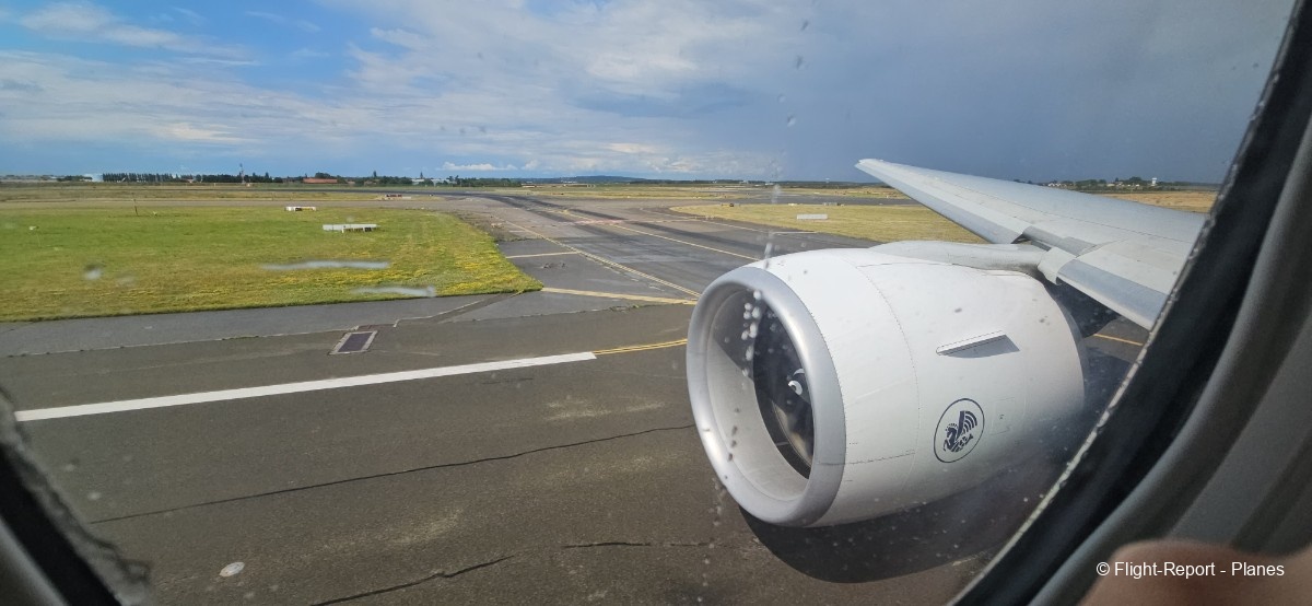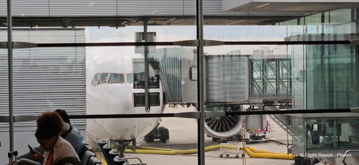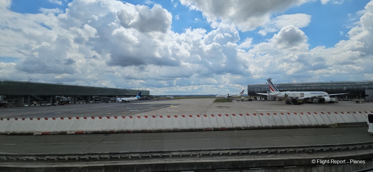 Une belle vue sur notre 777-300(ER) Air France s’offre à moi depuis l’aérogare, avant d’assister au décollage de l’A330 Corsair aperçu plus tôt.