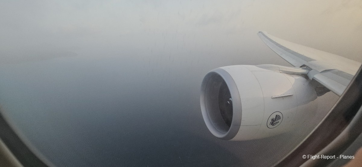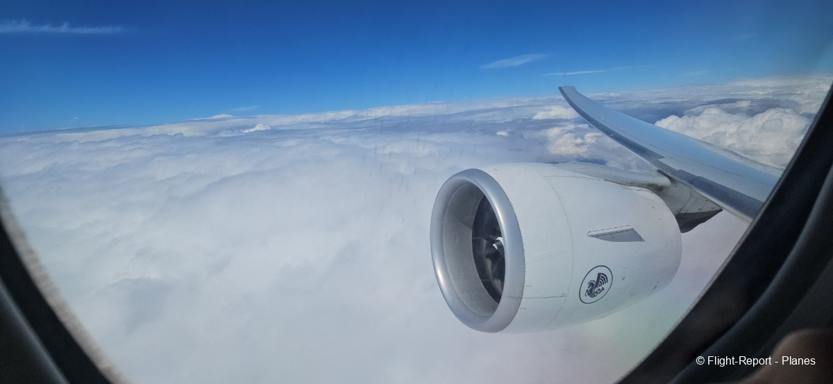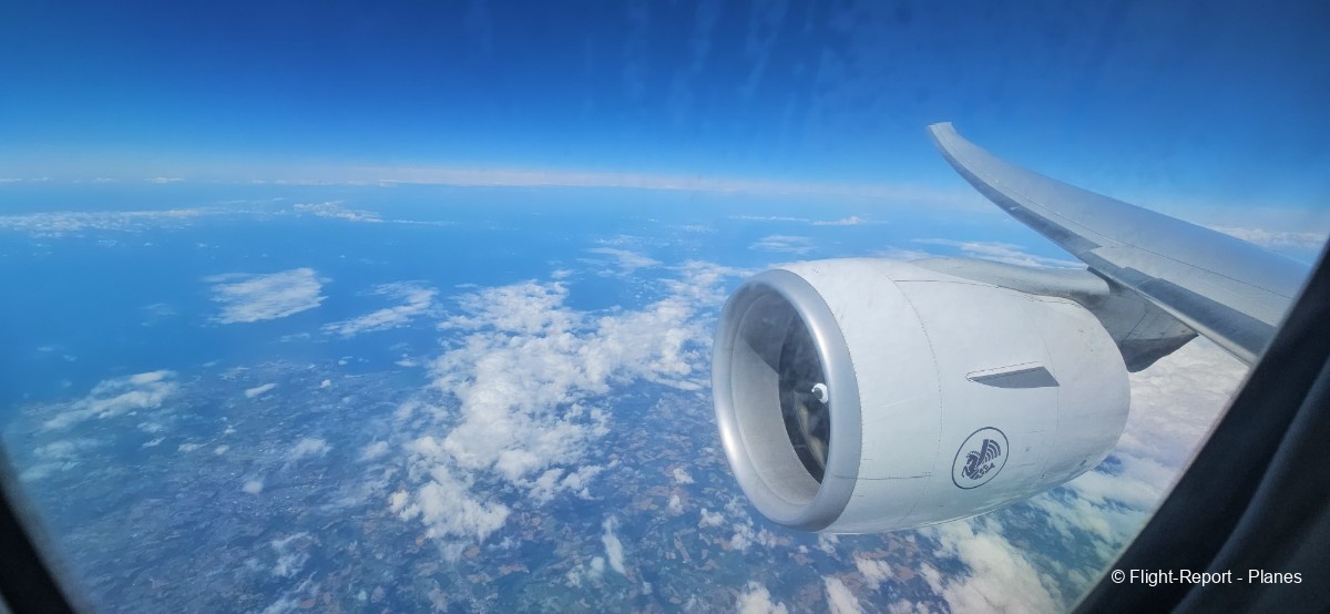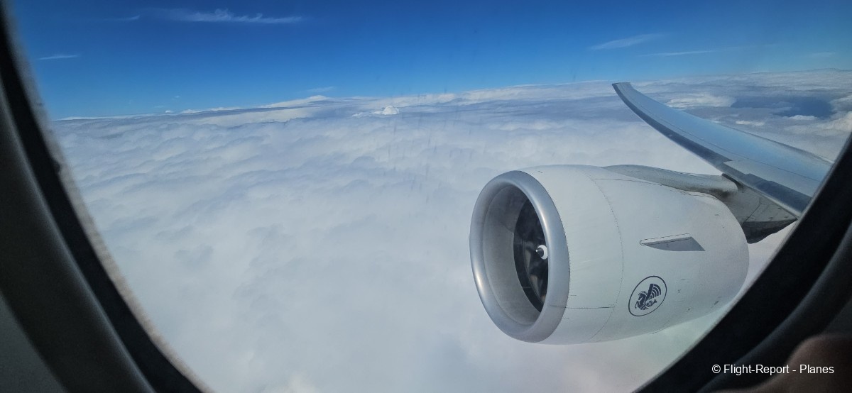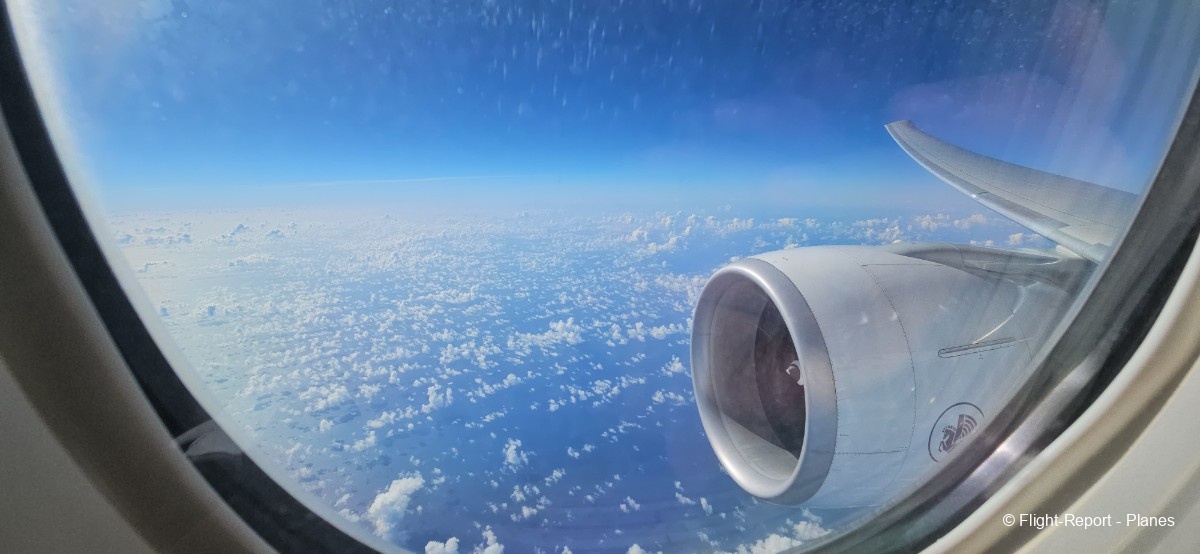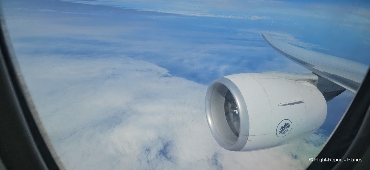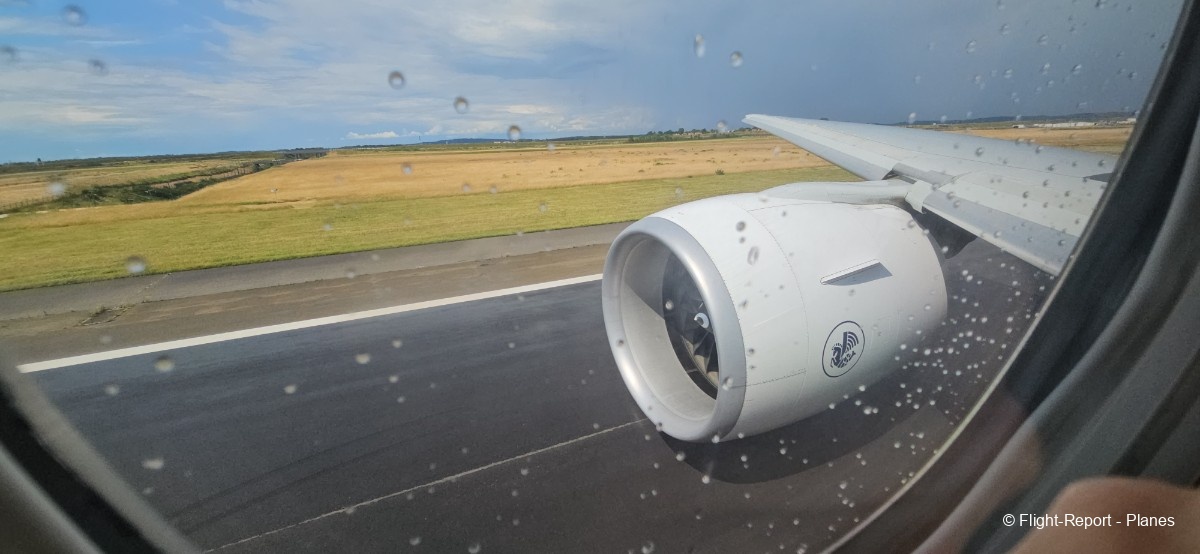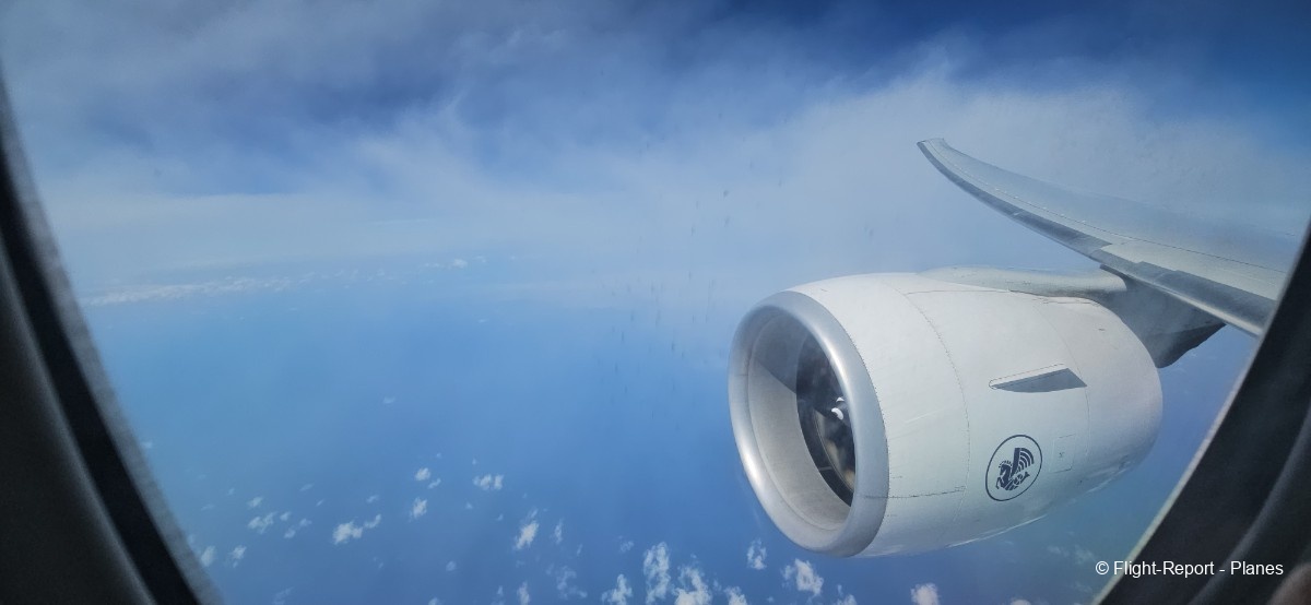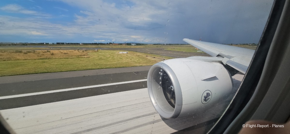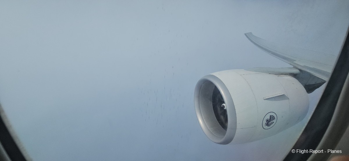 À 15h41, je prends place au siège 14L, offrant une vue exceptionnelle sur les moteurs GE90. Par chance, le ciel commence à se dégager. Le commandant de bord nous informe que le retard est dû à des difficultés d’approvisionnement du catering et à un point technique sur un siège.