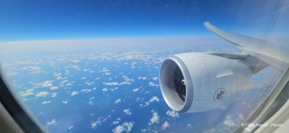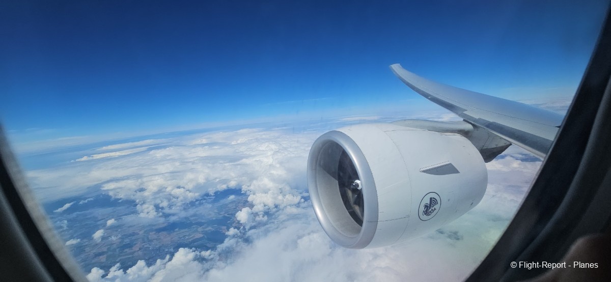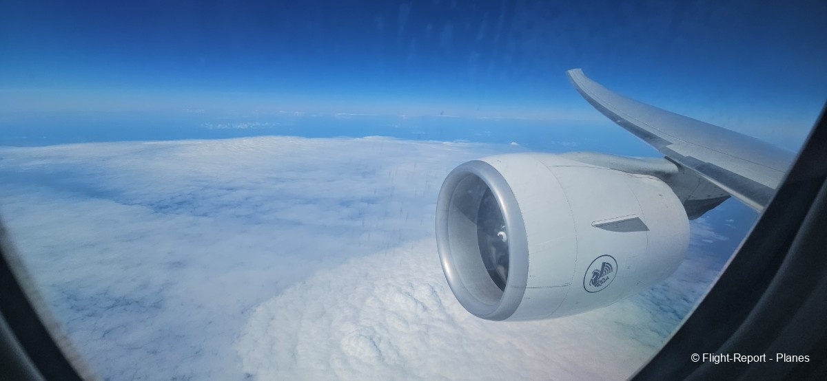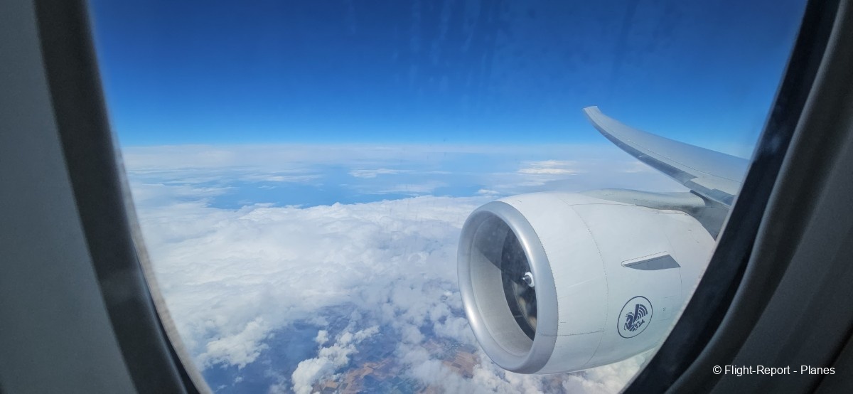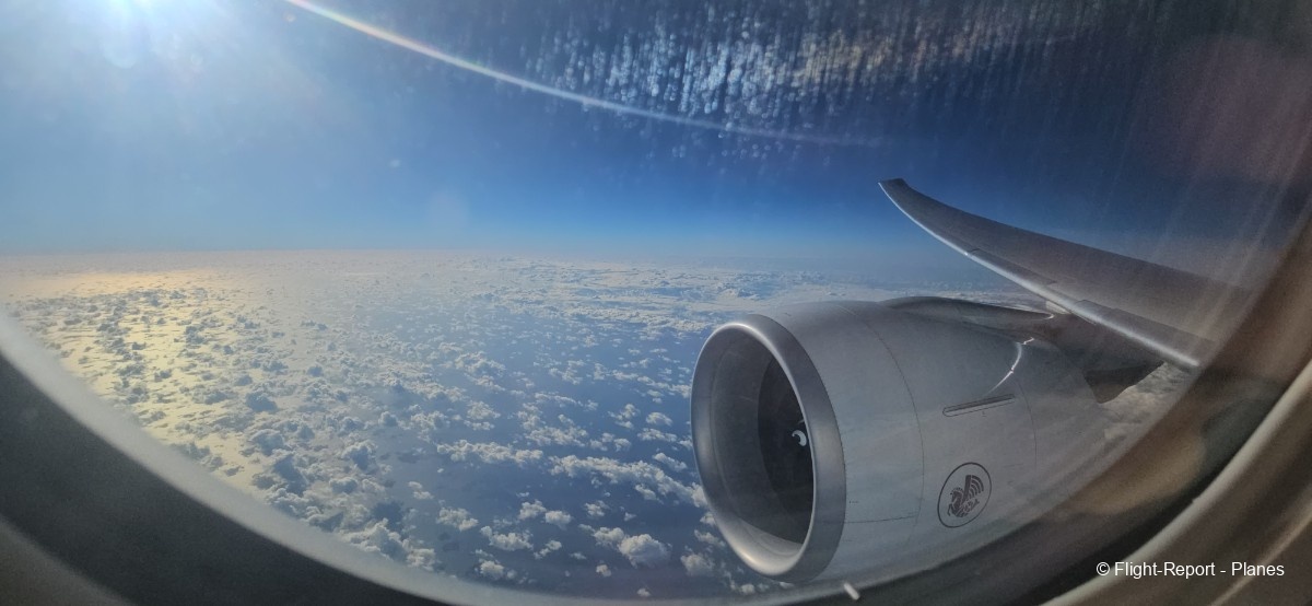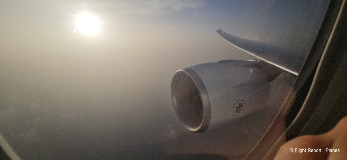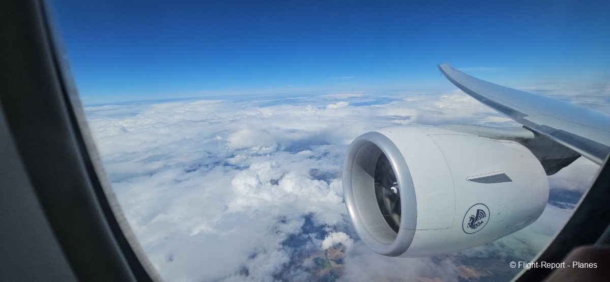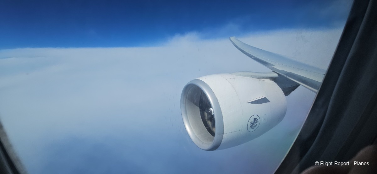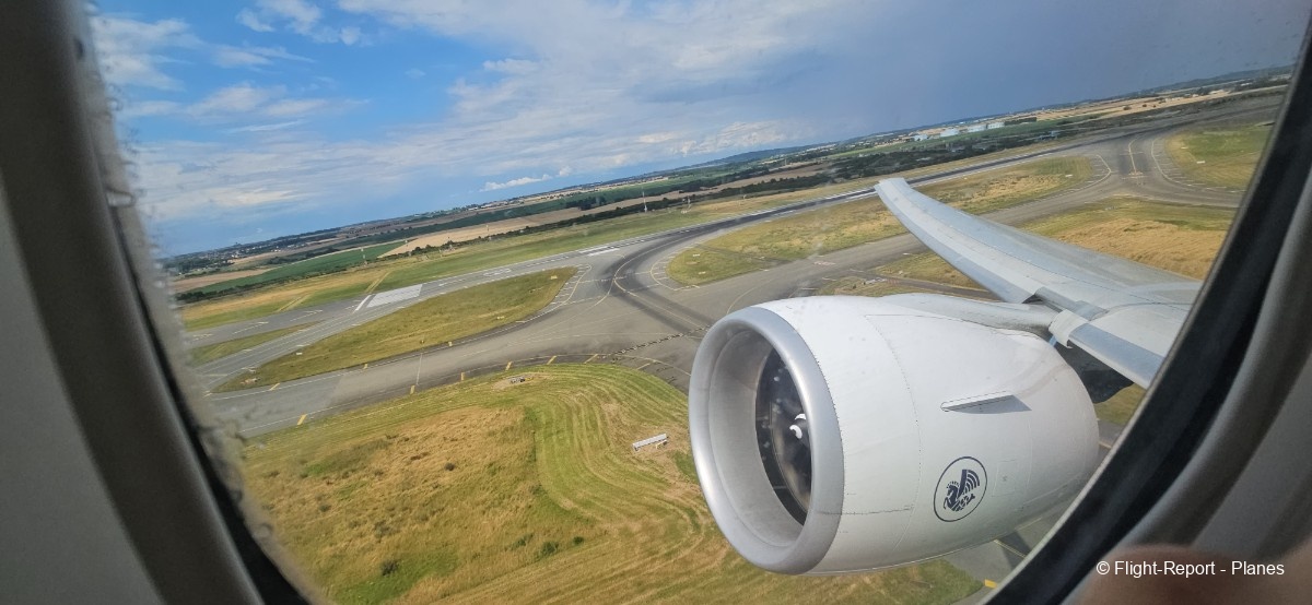 À 15h41, je prends place au siège 14L, offrant une vue exceptionnelle sur les moteurs GE90. Par chance, le ciel commence à se dégager. Le commandant de bord nous informe que le retard est dû à des difficultés d’approvisionnement du catering et à un point technique sur un siège.