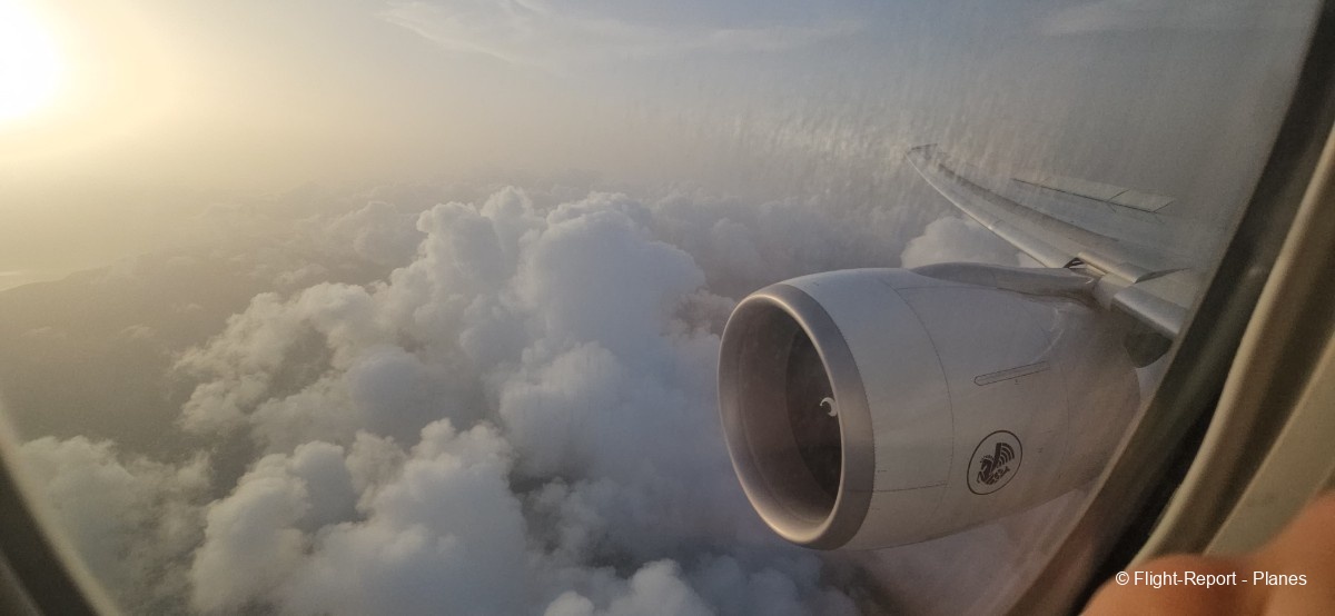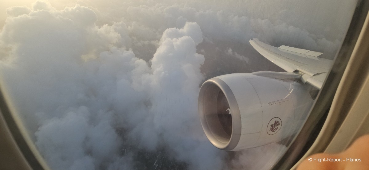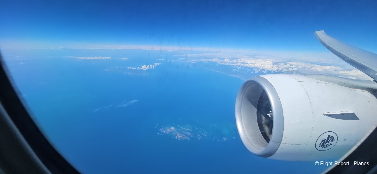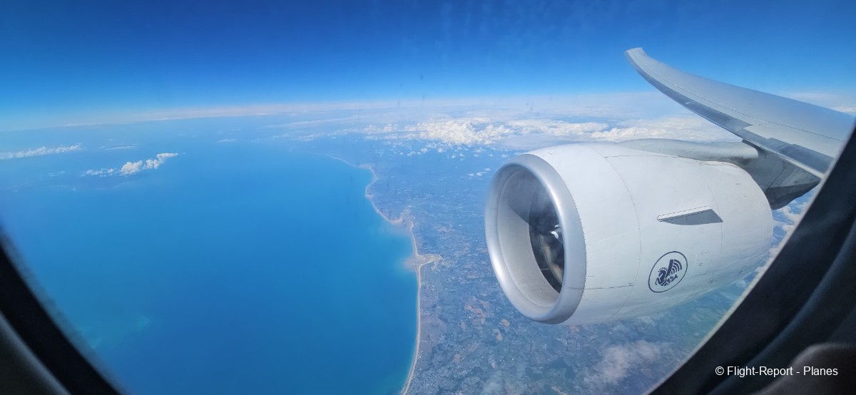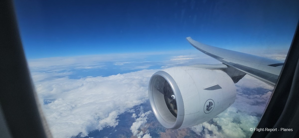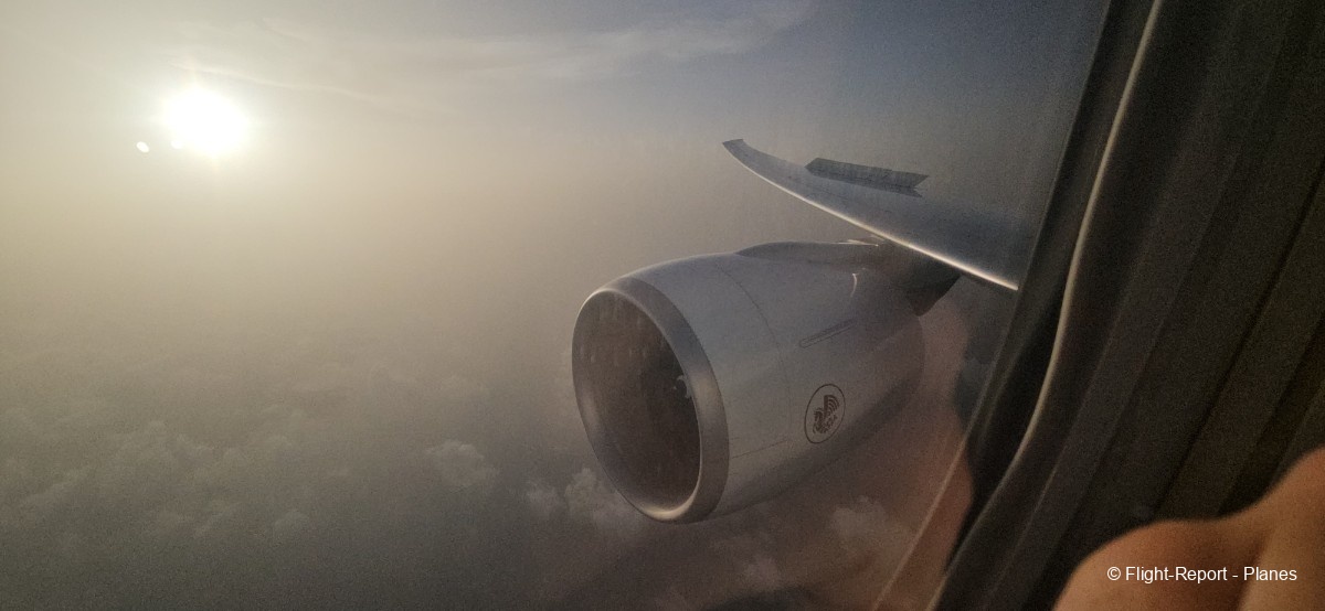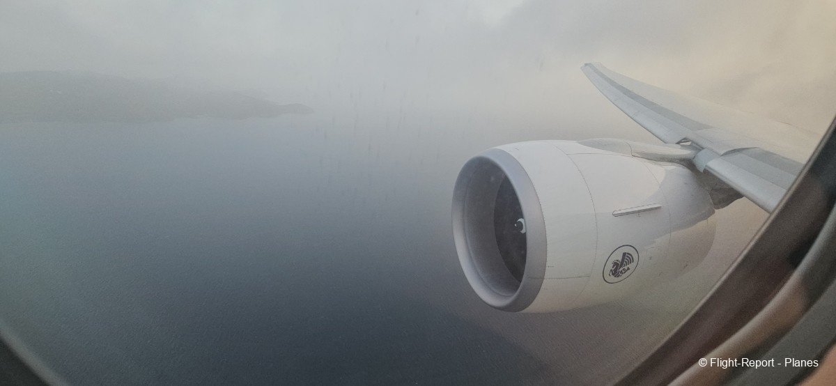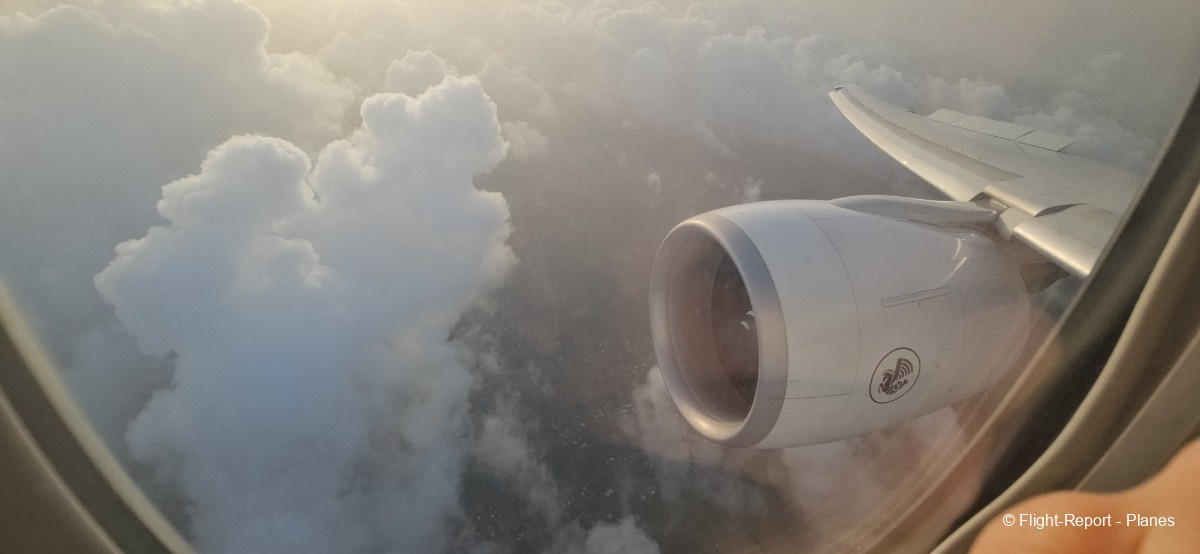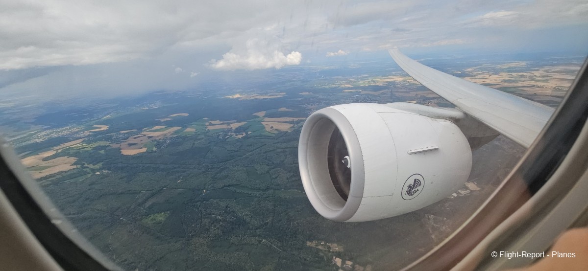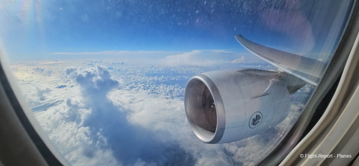 À 15h41, je prends place au siège 14L, offrant une vue exceptionnelle sur les moteurs GE90. Par chance, le ciel commence à se dégager. Le commandant de bord nous informe que le retard est dû à des difficultés d’approvisionnement du catering et à un point technique sur un siège.