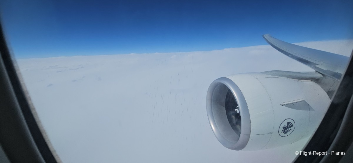Lorsque l’estimation indique 4h30 de vol restant, le ciel commence à se dégager. Plus tard, l’appareil atteint 36 000 pieds avec une vitesse de 493 nœuds (913 km/h). Il ne reste qu’1h25 de vol.