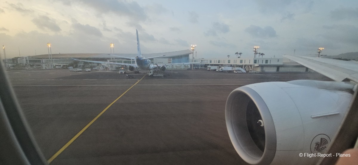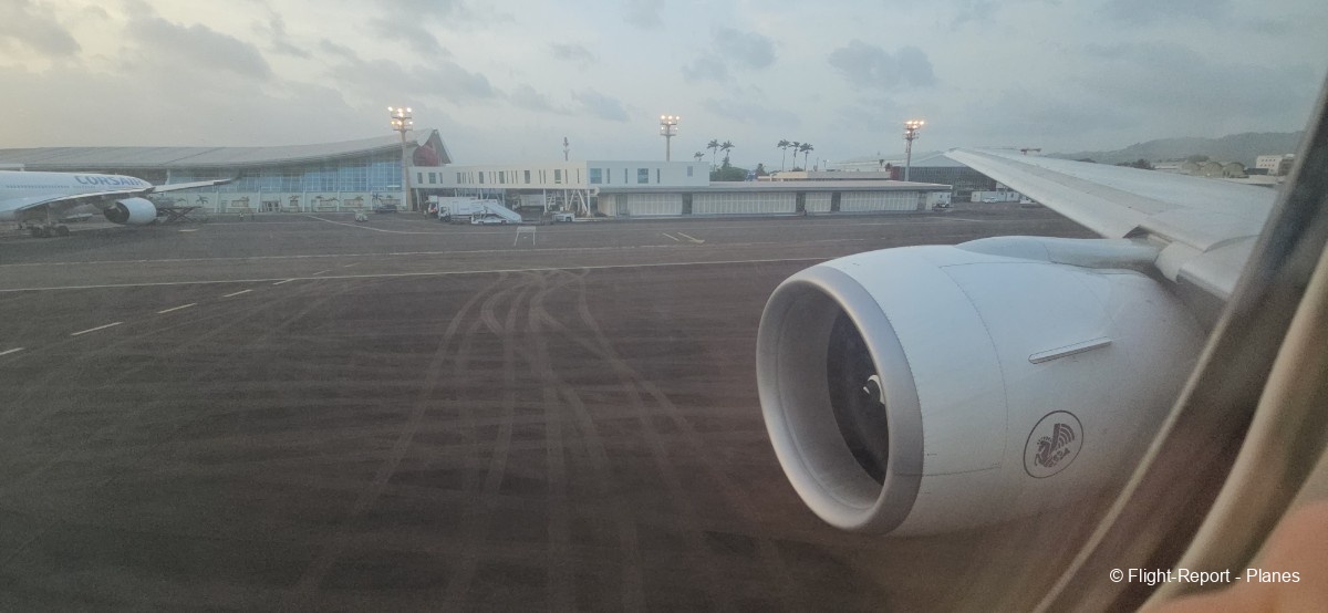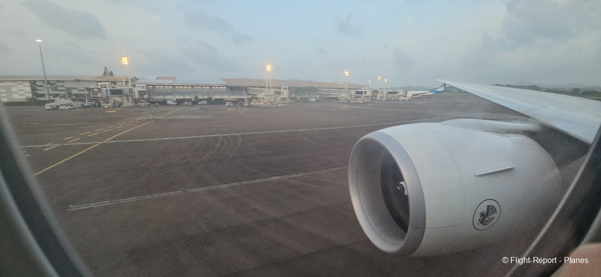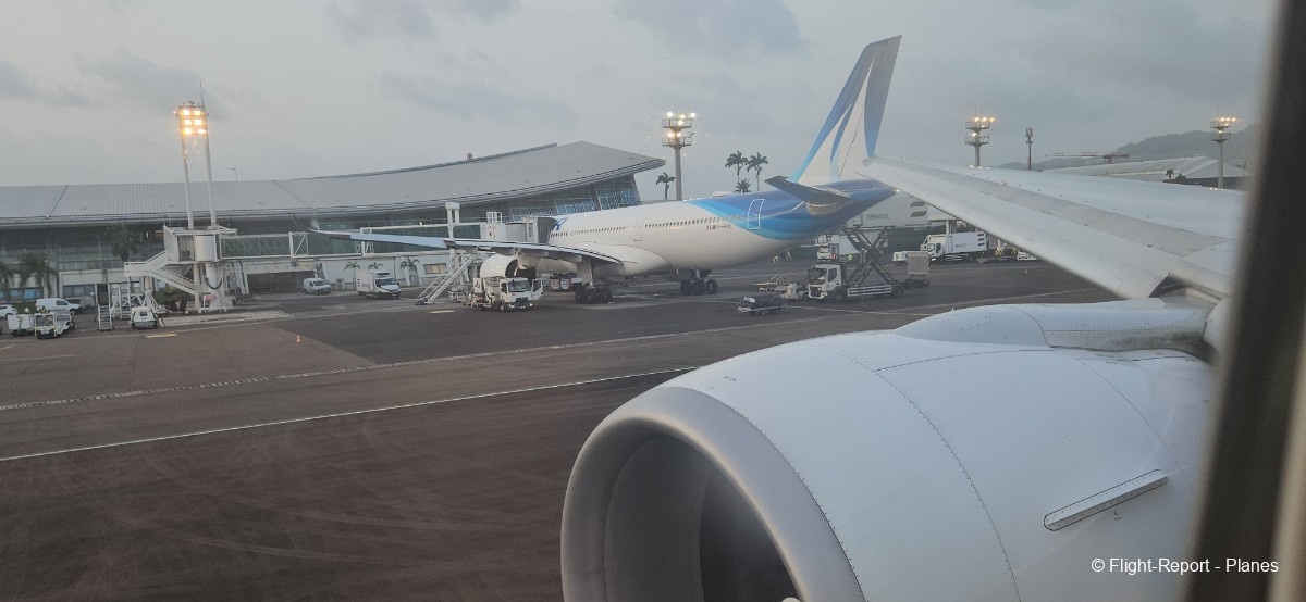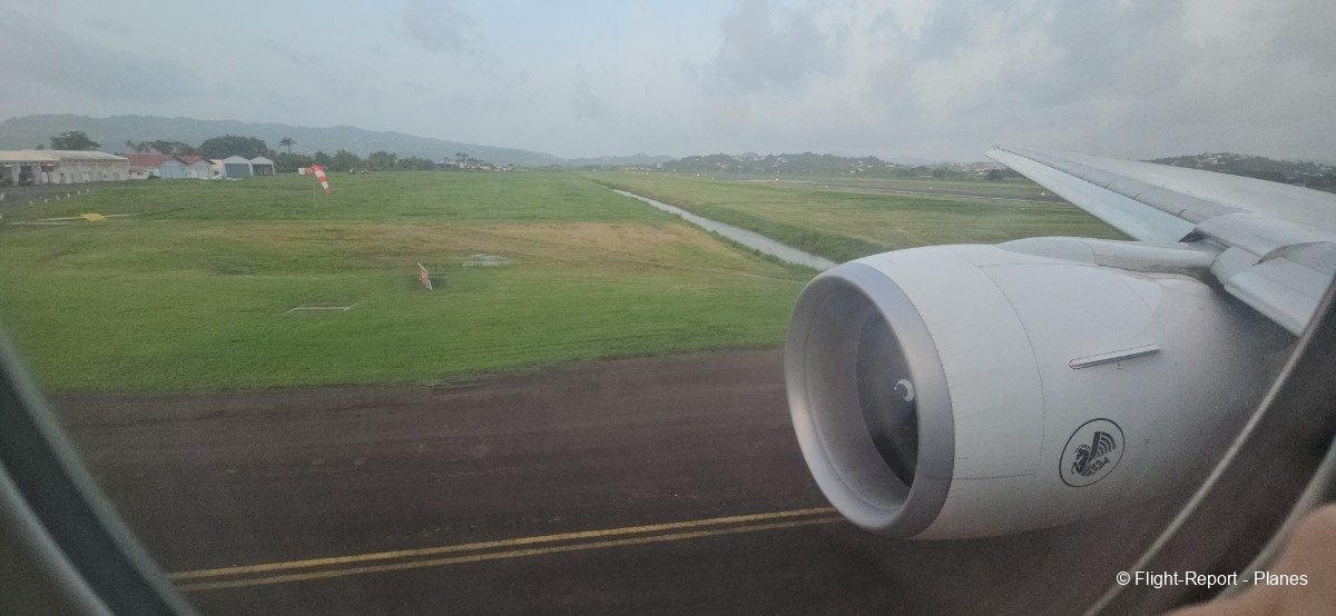 Alors que l’avion termine son roulage, l’équipage annonce le traditionnel « PNC, dernier virage ». Depuis mon hublot, je distingue également le décollage d’un ATR 72 d’Air Caraïbes à destination de Pointe-à-Pitre. L’avion se parque ensuite, et le débarquement débute.