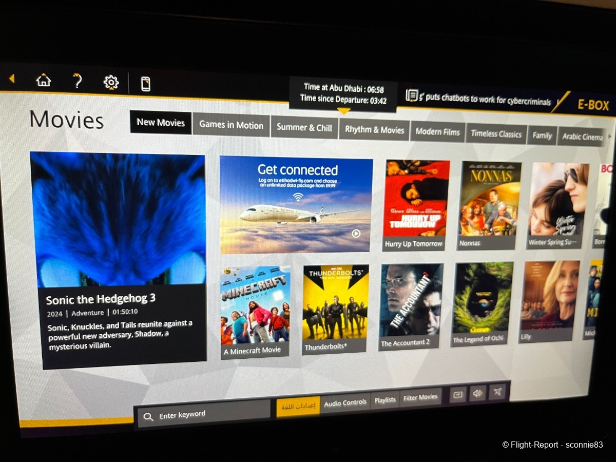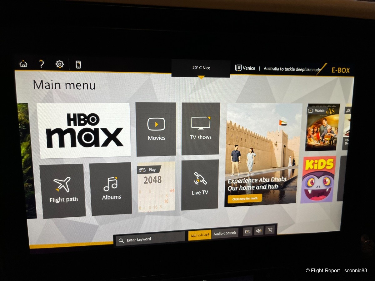 On voit que l'on est dans un avion Etihad, j'aime bien les couleurs.