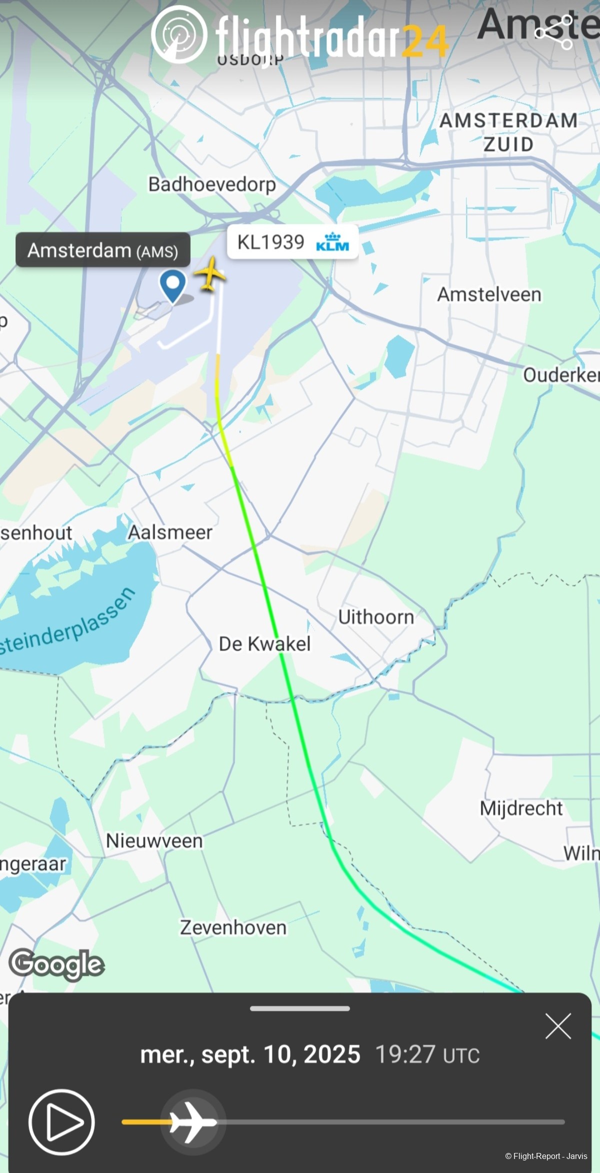 21h32 nous survolons la banlieue d'Amsterdam