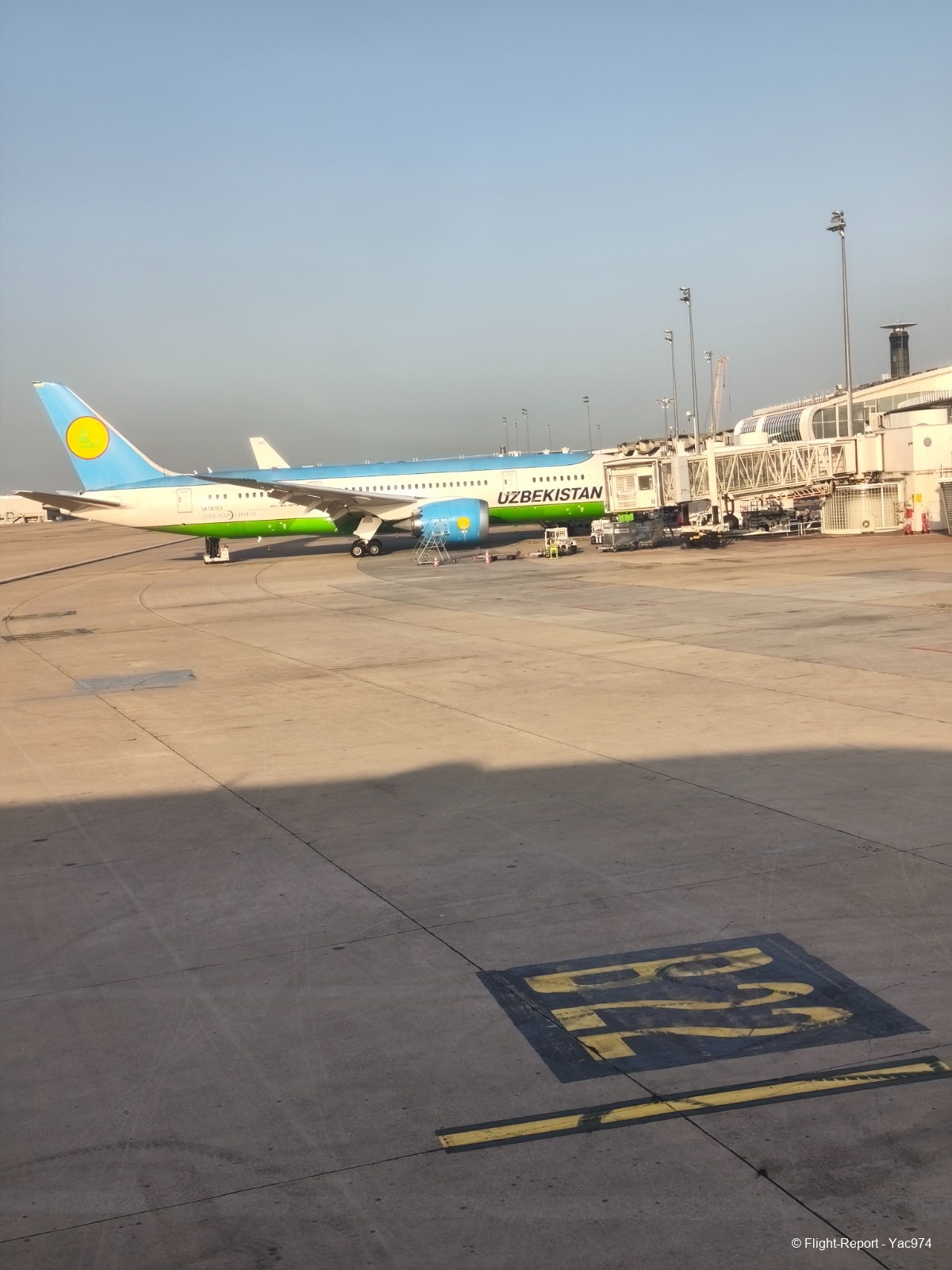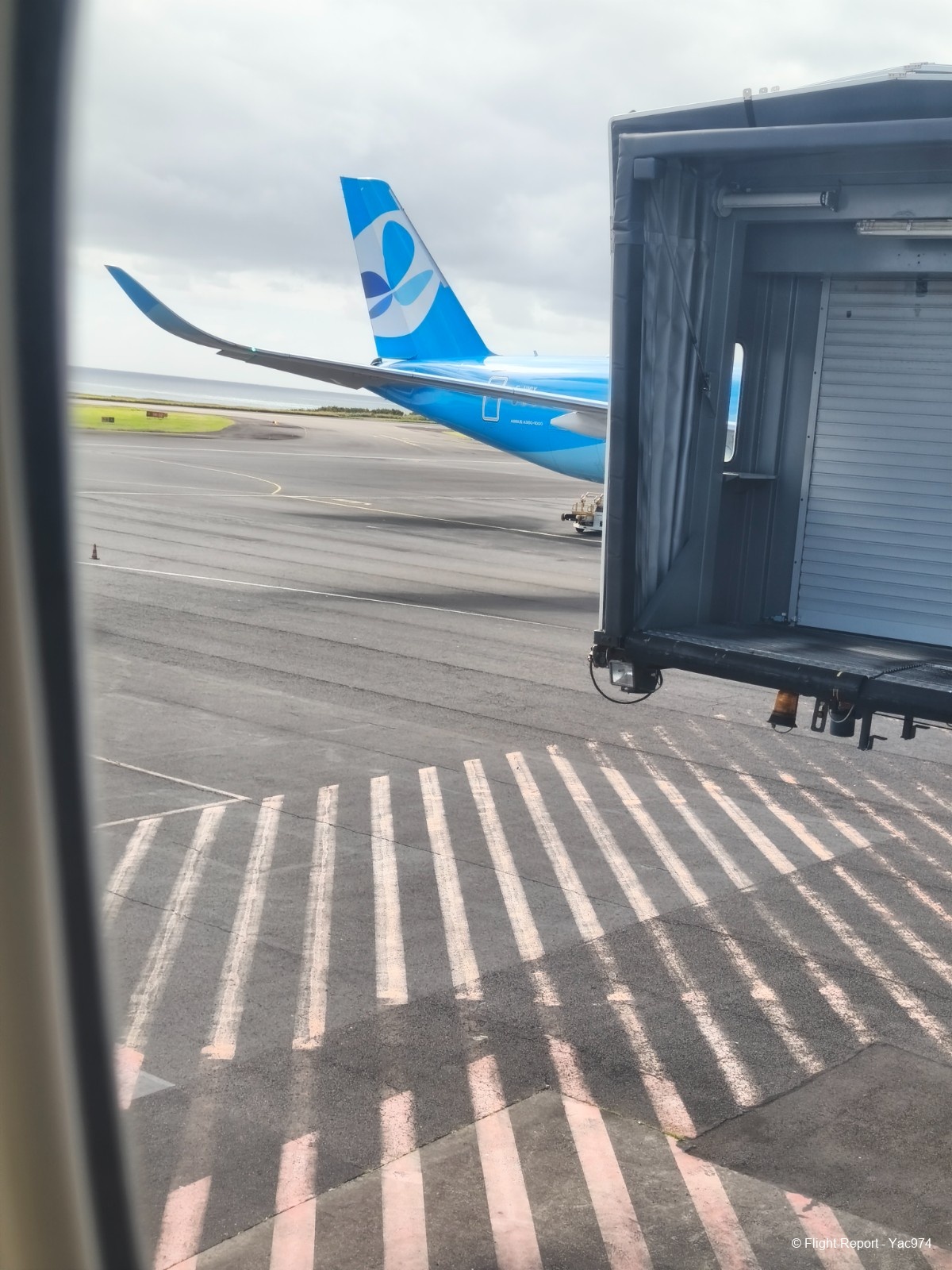 Vue sur l'A350-1000 de French Bee et le 777-300ER F-OLRE qui va m'emmener pour CDG ( et on attend même mon nom…en retard pour l'embarquement) !!!