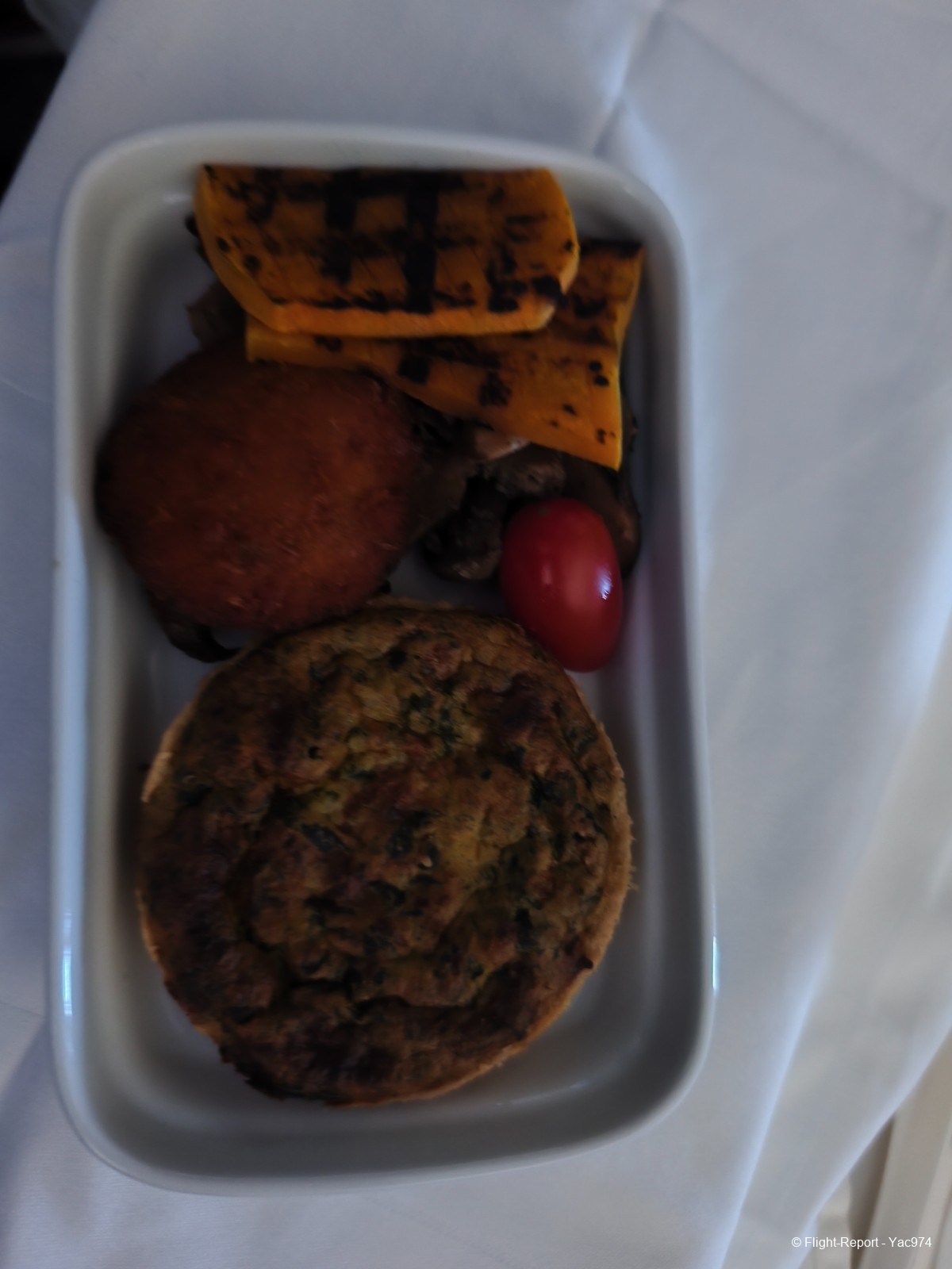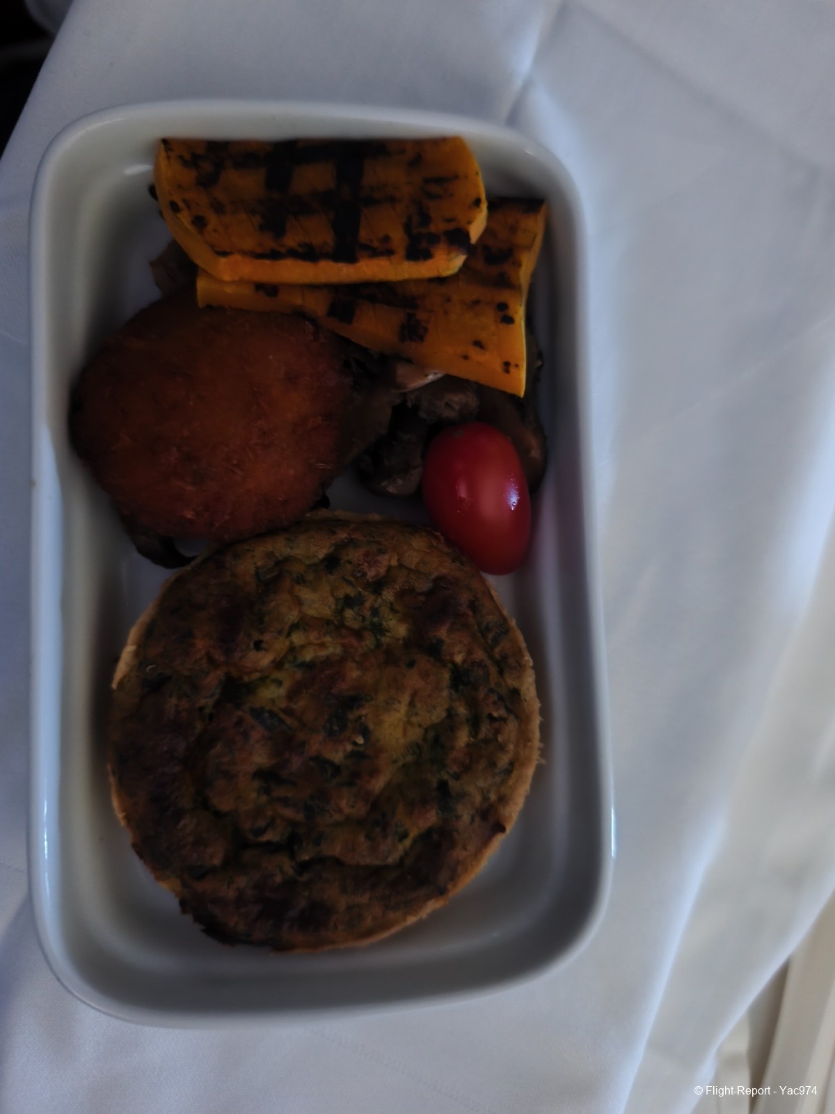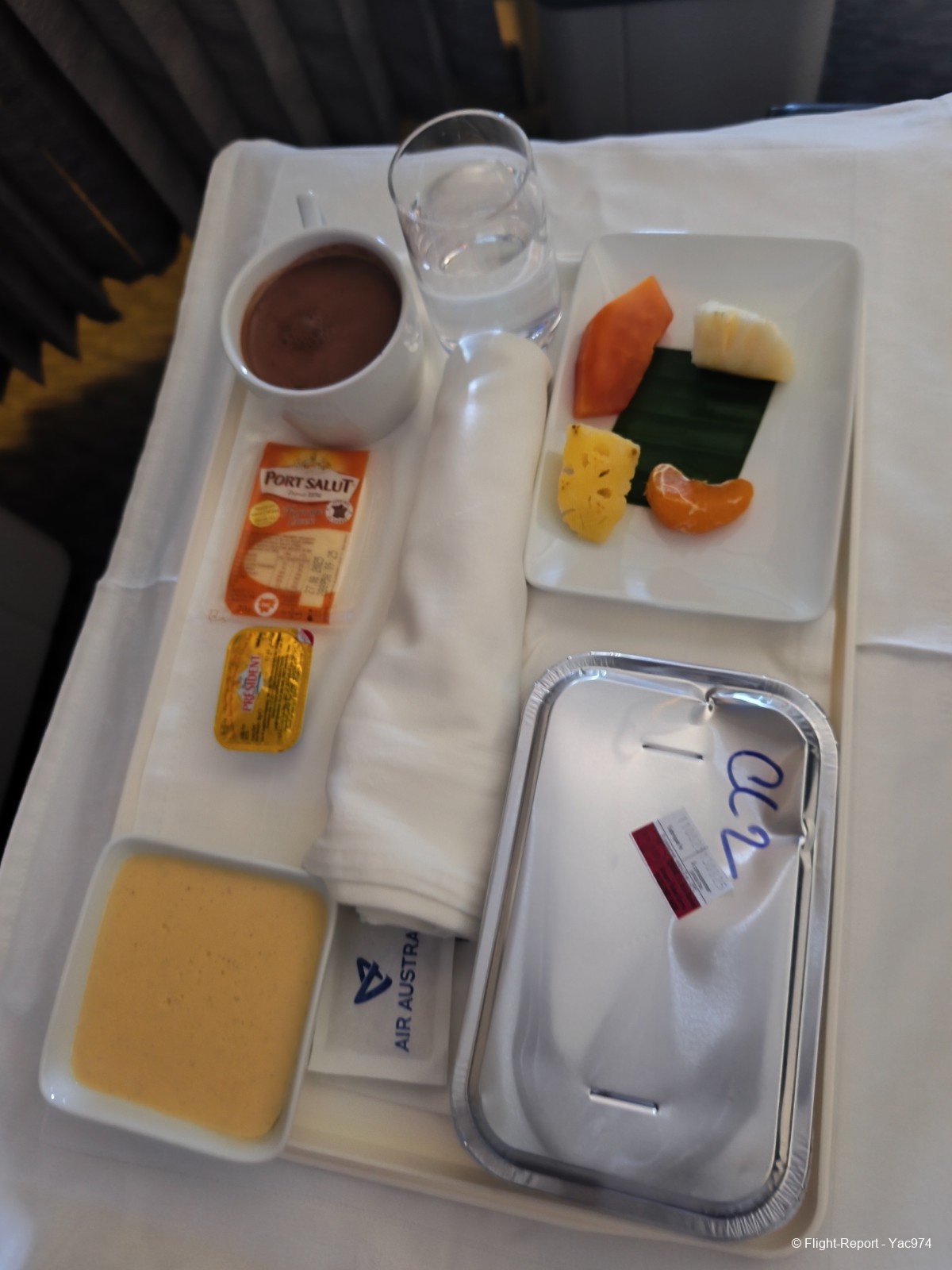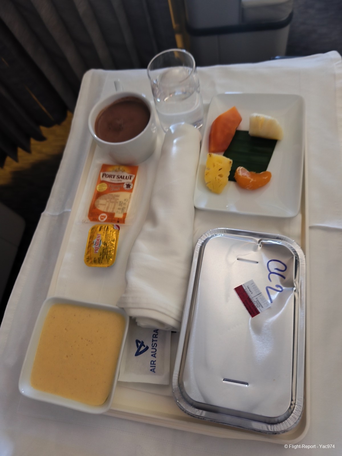 et environ à mi- vol …petit "encas" : glace mangue ou goyavier et sandwichs au choix (saumon ou crudité) mon choix c'est mangue et crudité