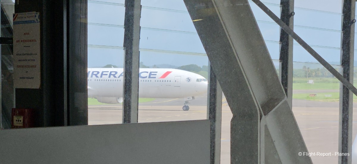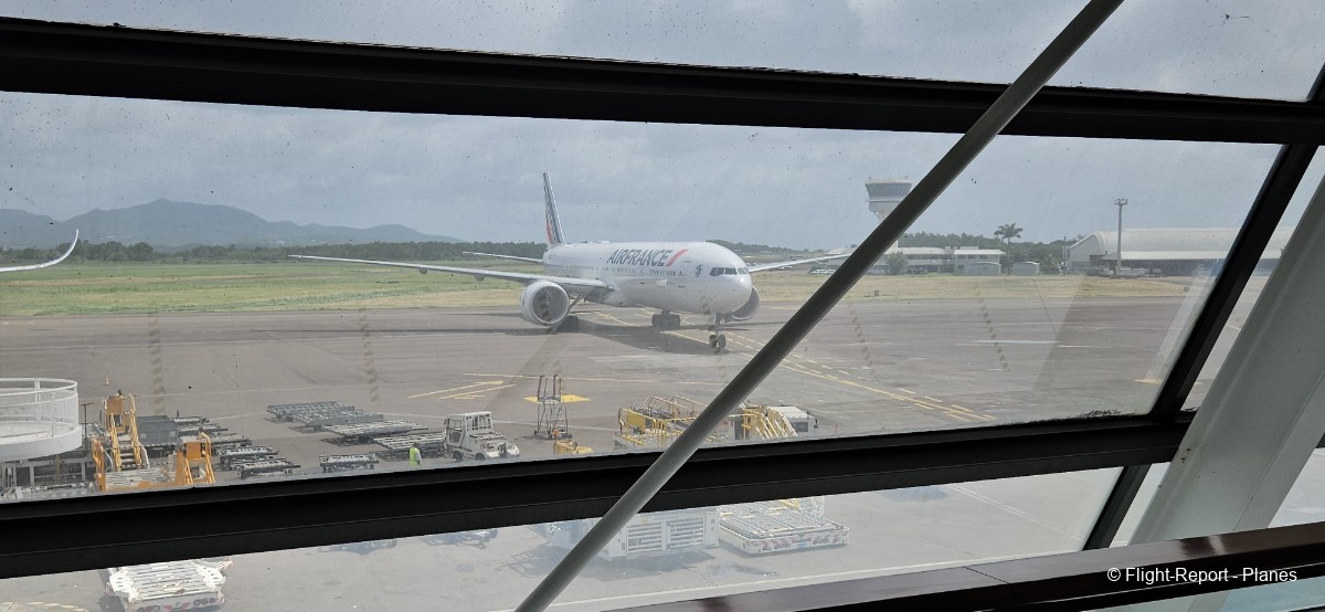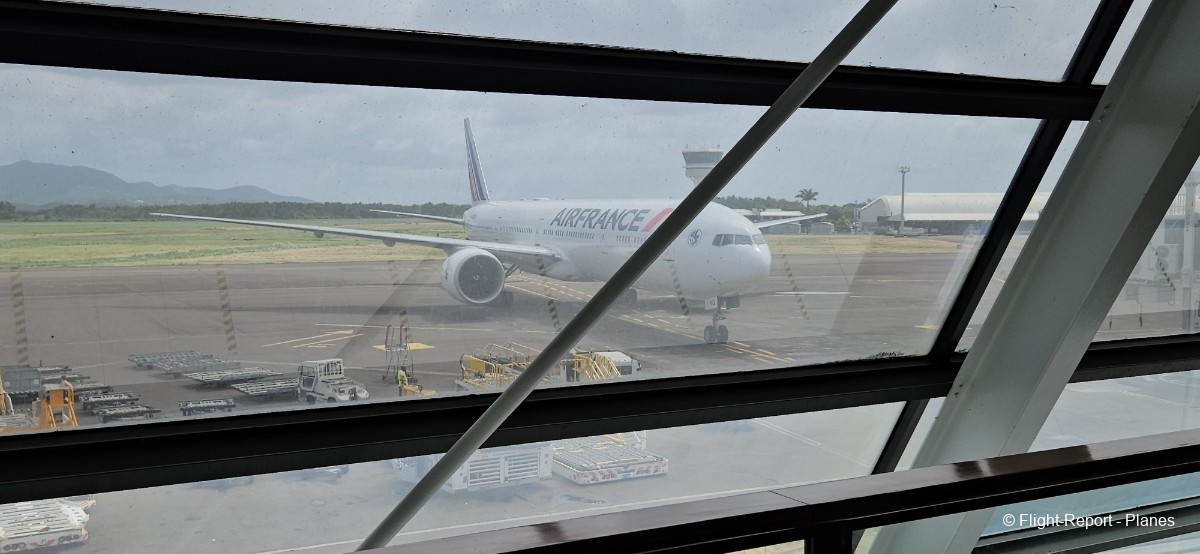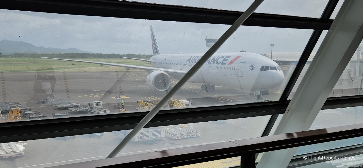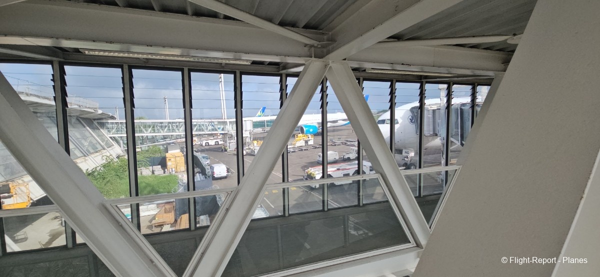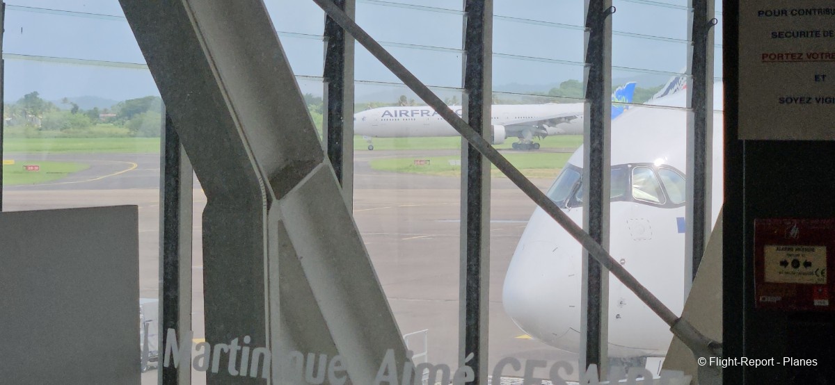 J’arrive à l’aéroport de Fort-de-France Martinique Aimé Césaire à 12h35, pour un vol dont l’embarquement est prévu à 15h15, le décollage à 16h45 et l’atterrissage à 7h le lendemain matin. Les bagages sont directement déposés au comptoir avant de monter au niveau 1 du hall afin de déjeuner.