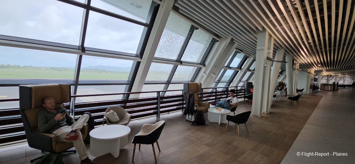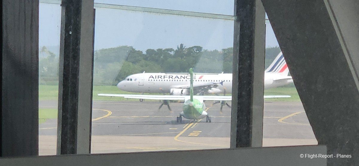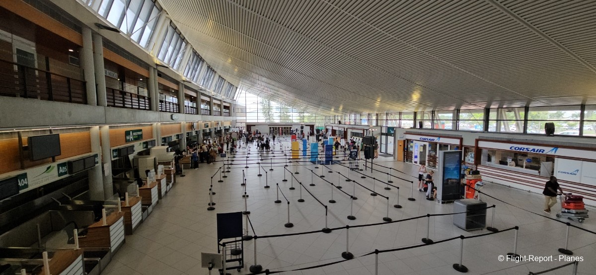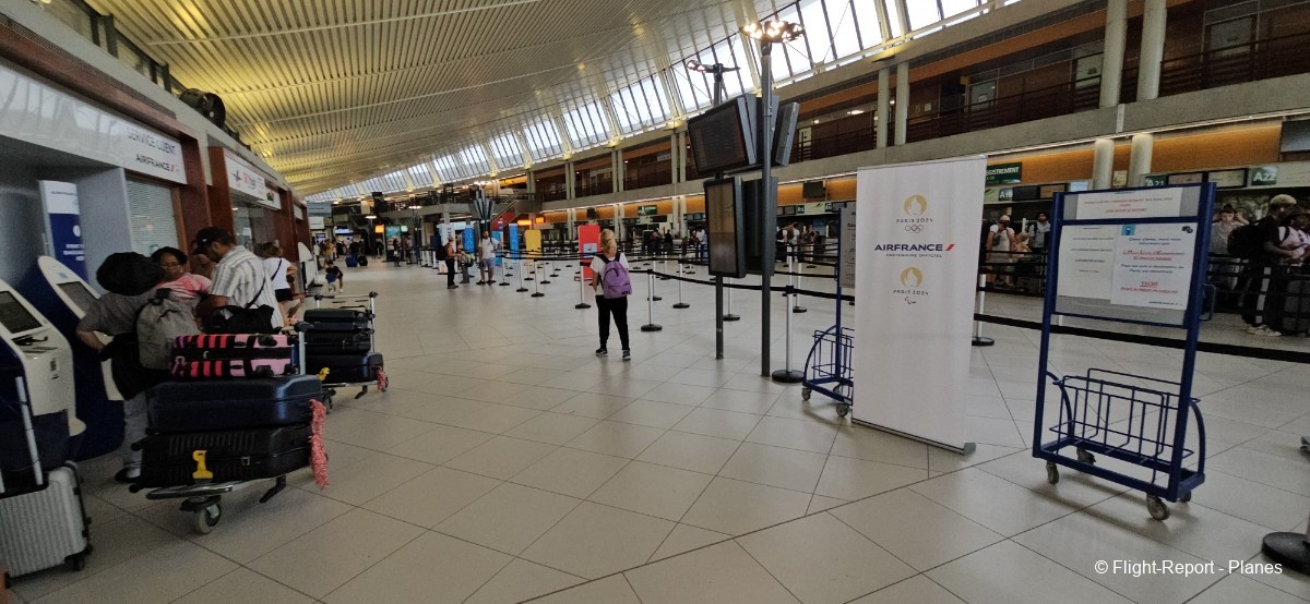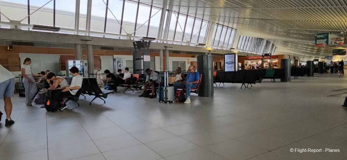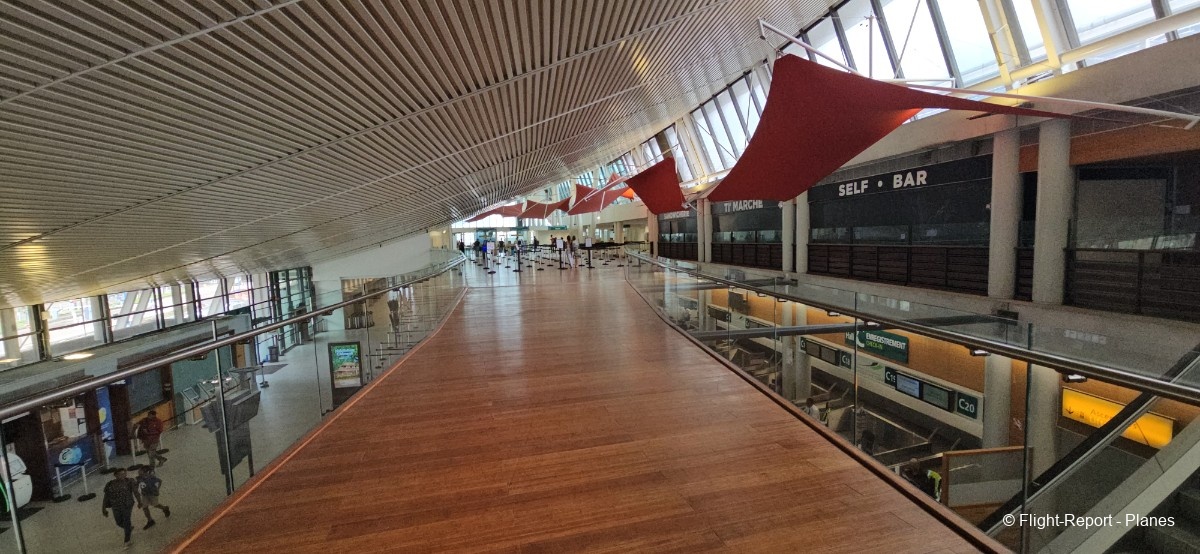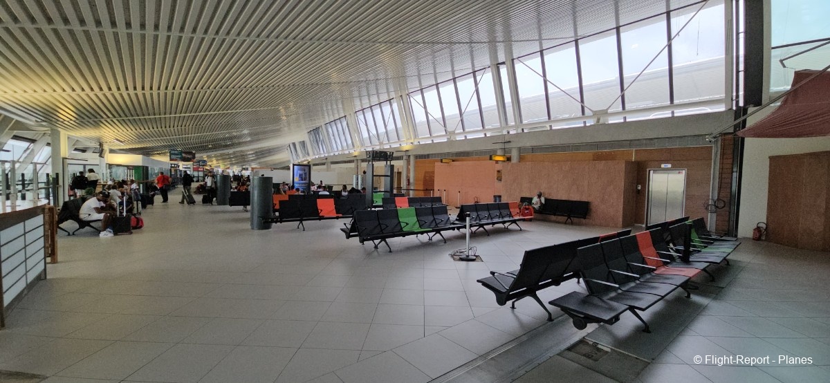 J’arrive à l’aéroport de Fort-de-France Martinique Aimé Césaire à 12h35, pour un vol dont l’embarquement est prévu à 15h15, le décollage à 16h45 et l’atterrissage à 7h le lendemain matin. Les bagages sont directement déposés au comptoir avant de monter au niveau 1 du hall afin de déjeuner.