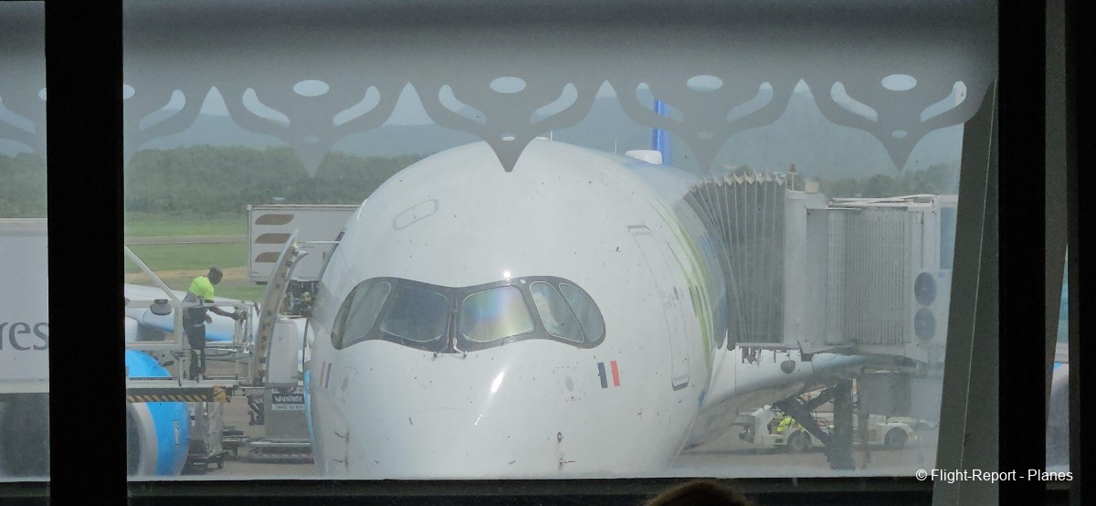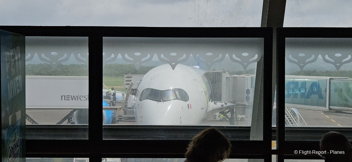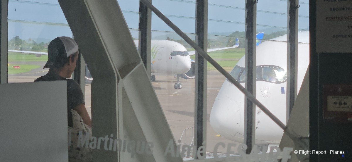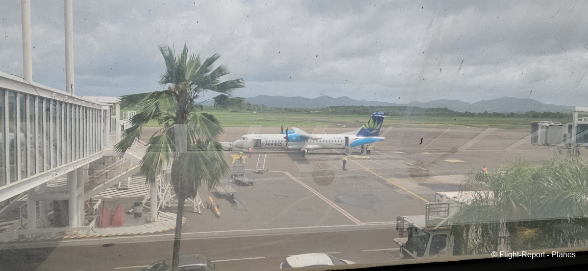 un ATR 72-600 ainsi qu’un A350 d’Air Caraïbes. Notre vol partira depuis la porte 6, la dernière porte du terminal.