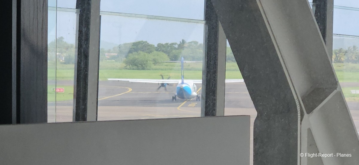 Vers 13h30, nous passons les portiques où les cartes d’embarquement sont scannées, puis les contrôles de sécurité. Nous rejoignons ensuite la salle d’embarquement, qui offre une belle vue sur le tarmac ainsi que sur la piste. On peut y observer plusieurs mouvements : un ATR 72-600 d’Air Antilles,