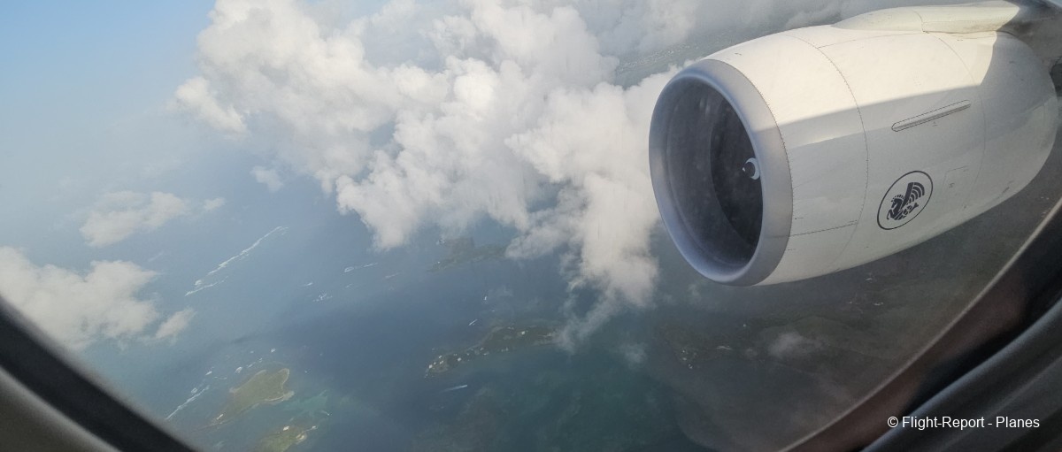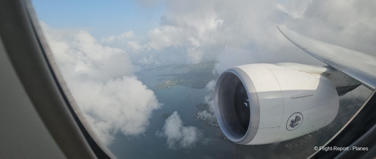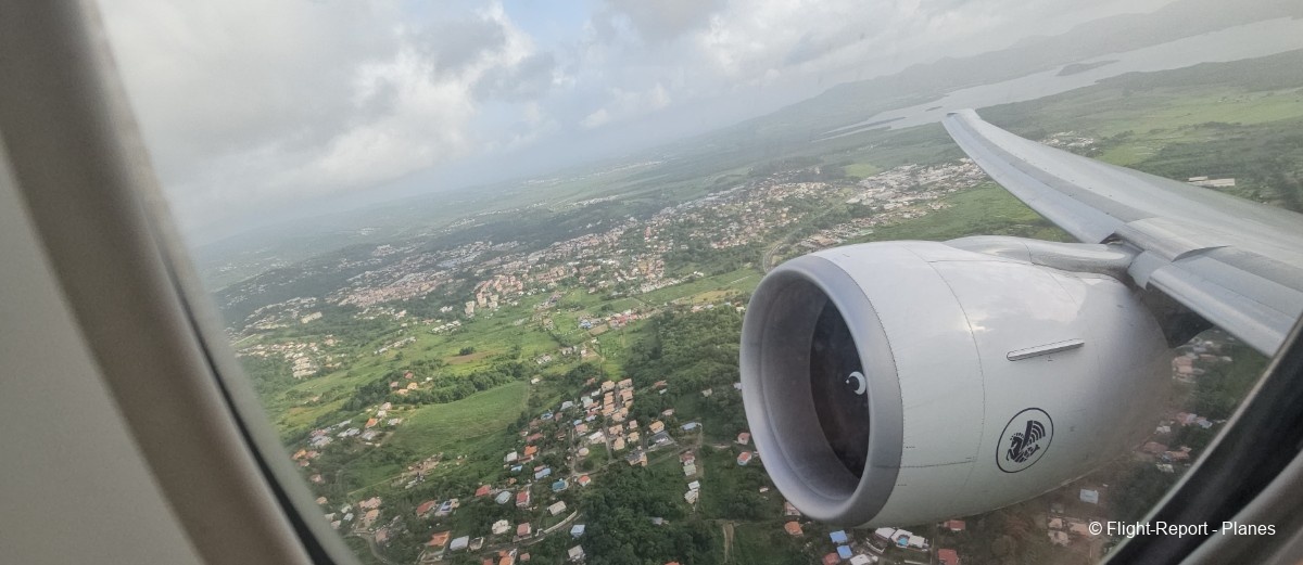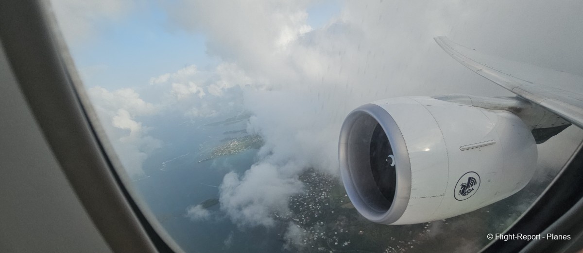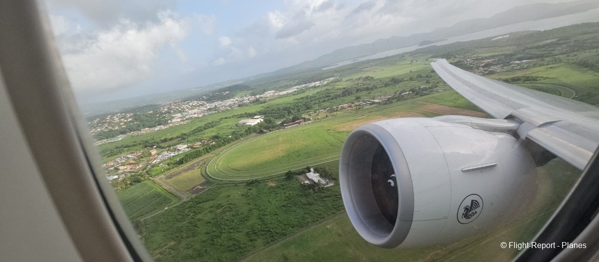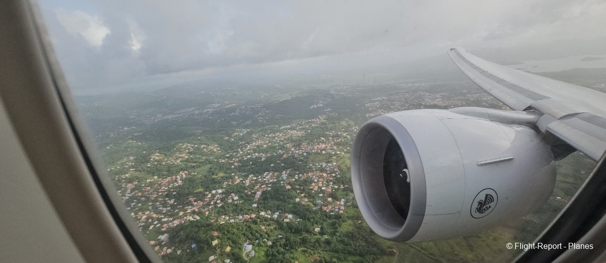 Le décollage est superbe, offrant une vue sur l’île et ses zones habitées. Nous traversons ensuite la couche nuageuse et, une fois au-dessus, nous quittons les côtes martiniquaises.
