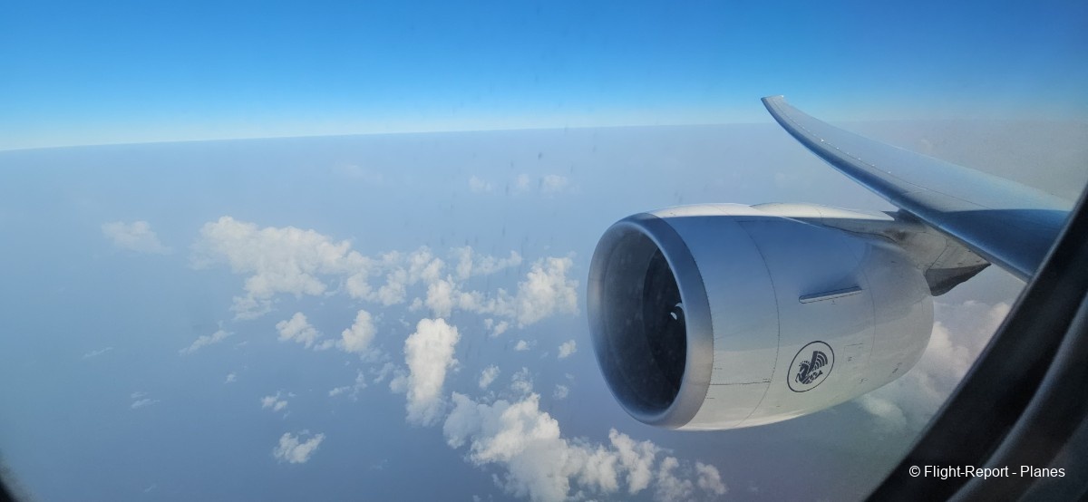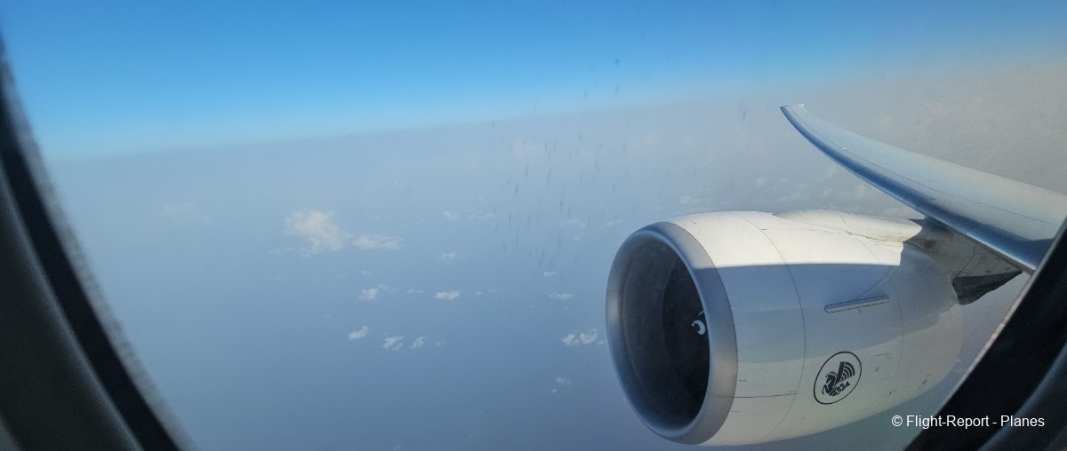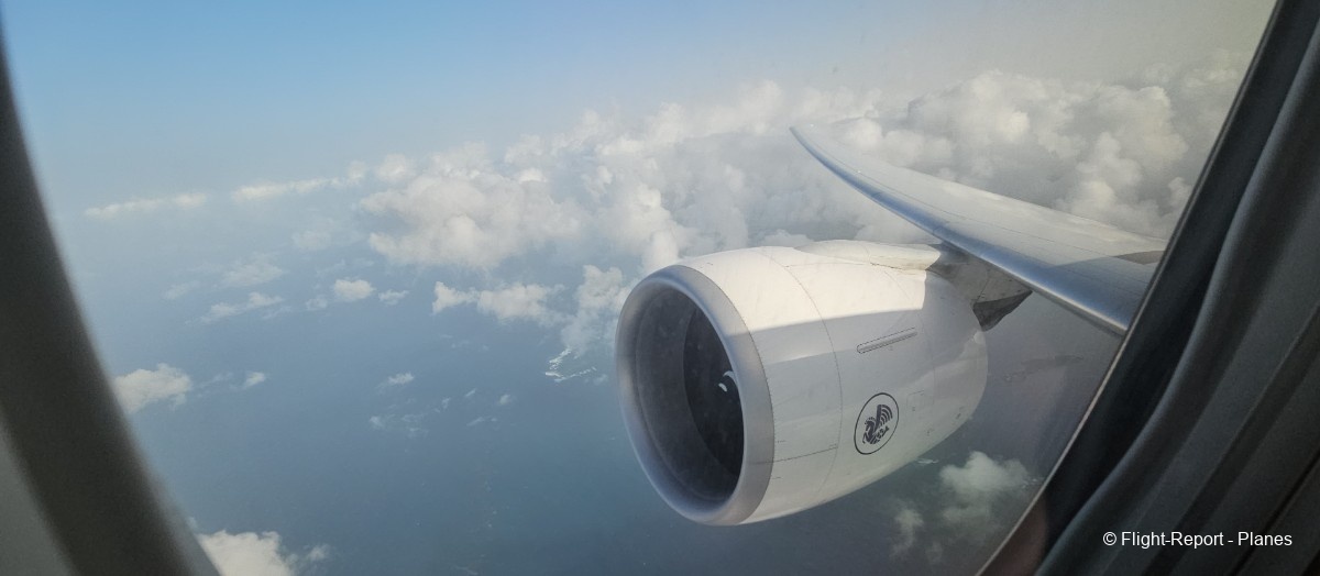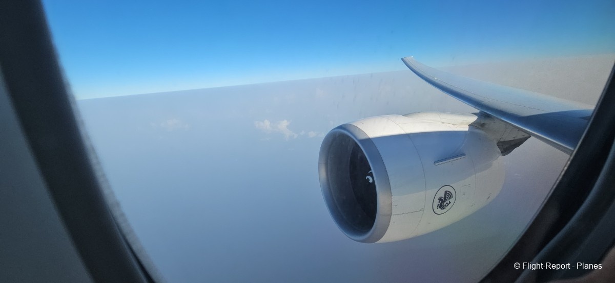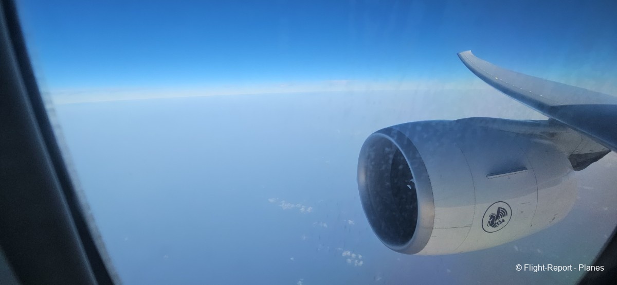 Une dizaine de minutes après le décollage, nous atteignons notre altitude de croisière à 35 000 ft, pour une vitesse de 490 kts (907 km/h).