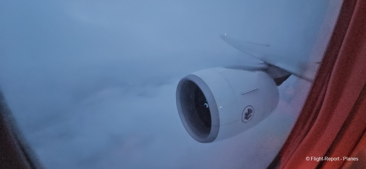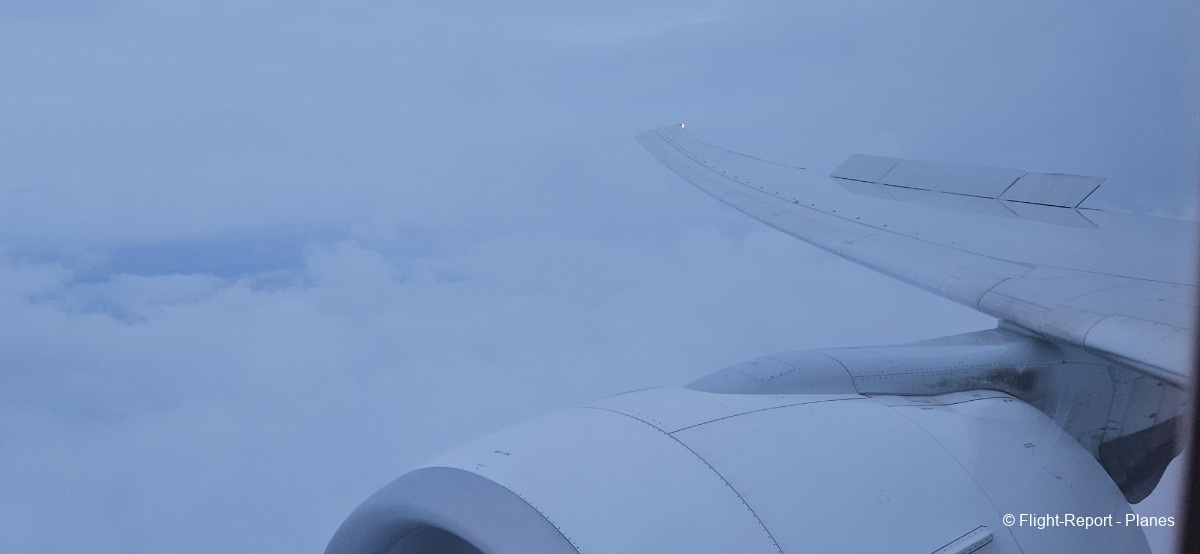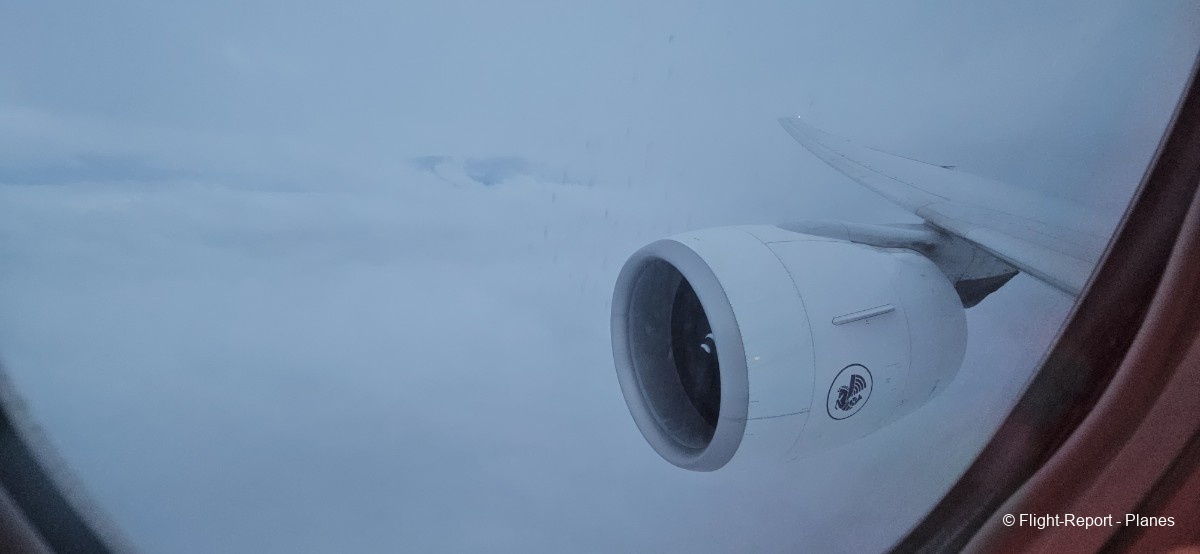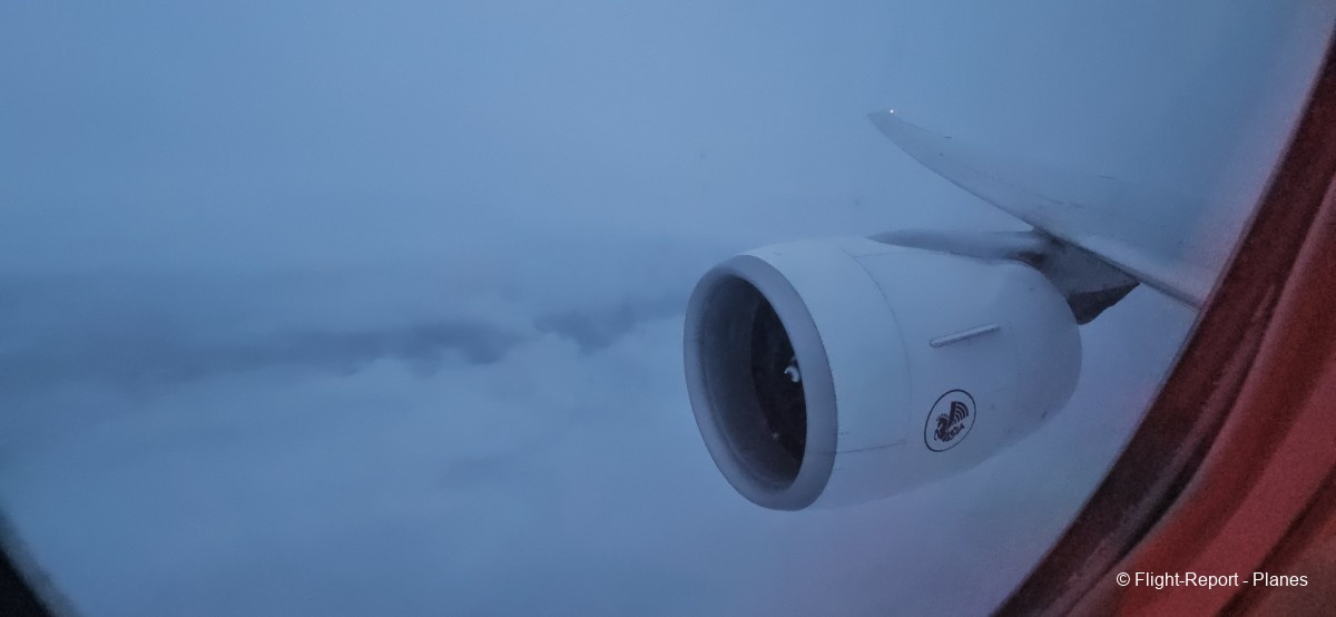 Enfin, à 40 minutes de l’arrivée, le ciel commence à s’éclaircir à l’horizon. Nous approchons Paris sous un plafond totalement nuageux, prêts pour la descente.