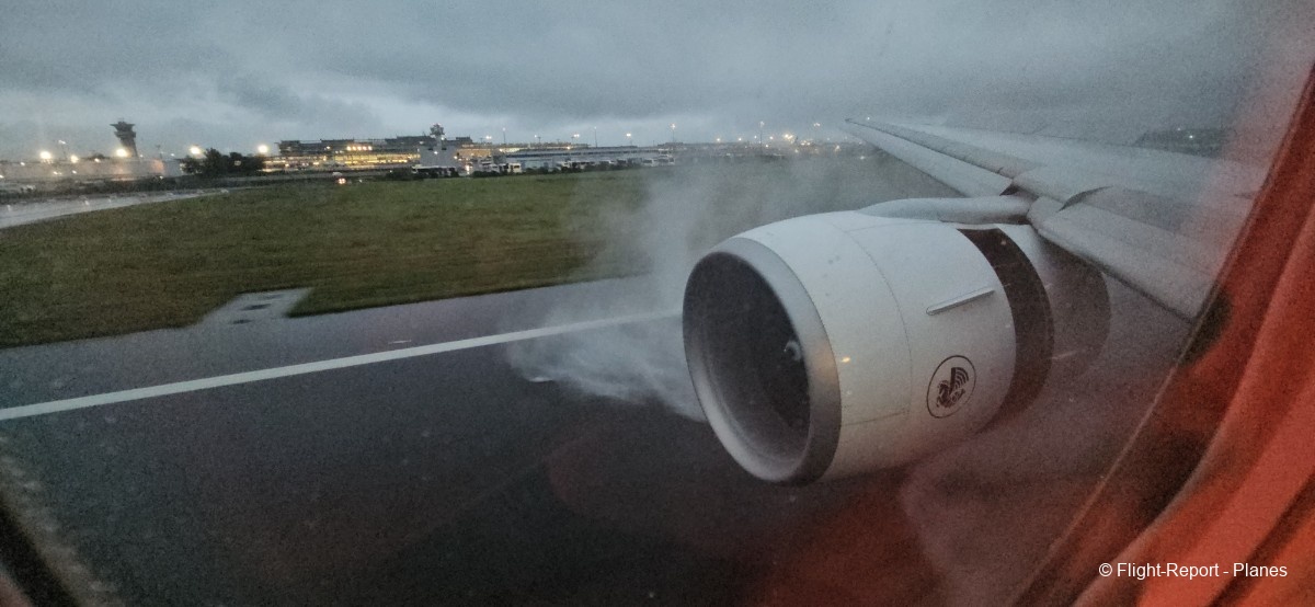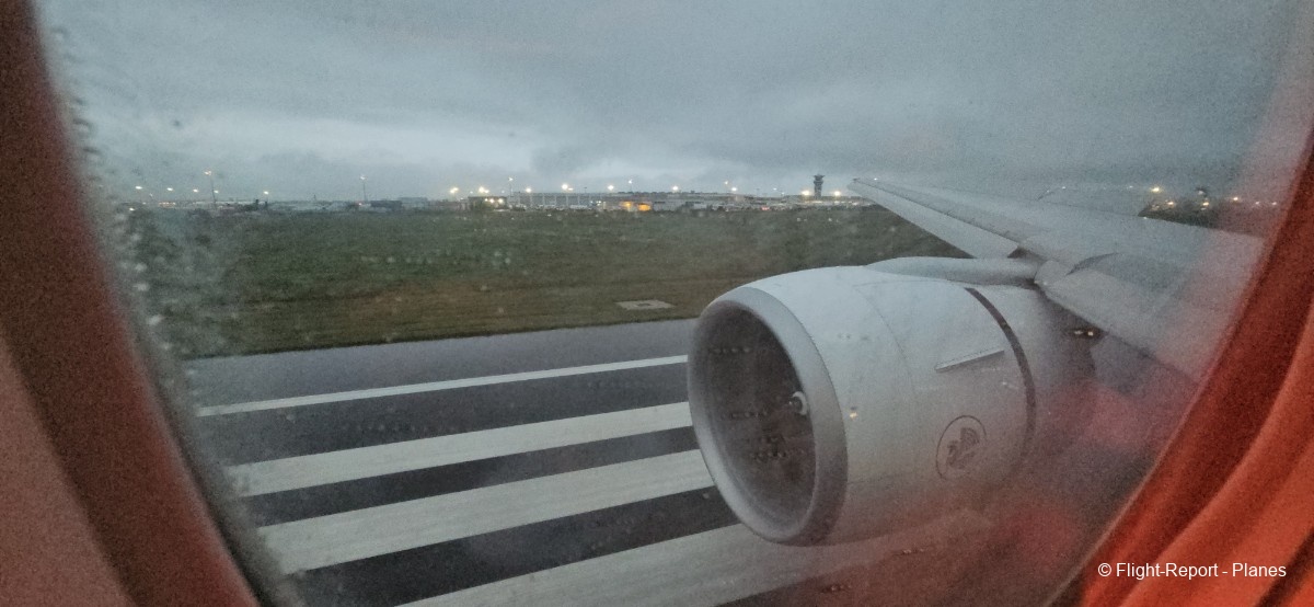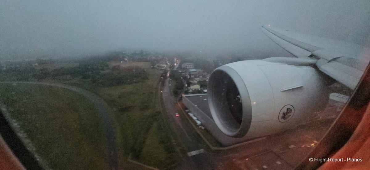 L’atterrissage est effectué en douceur sur une piste mouillée à 6h37, avec 23 minutes d’avance sur l’horaire prévu.