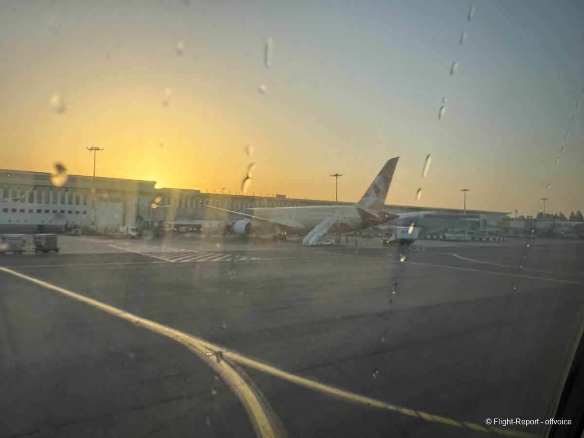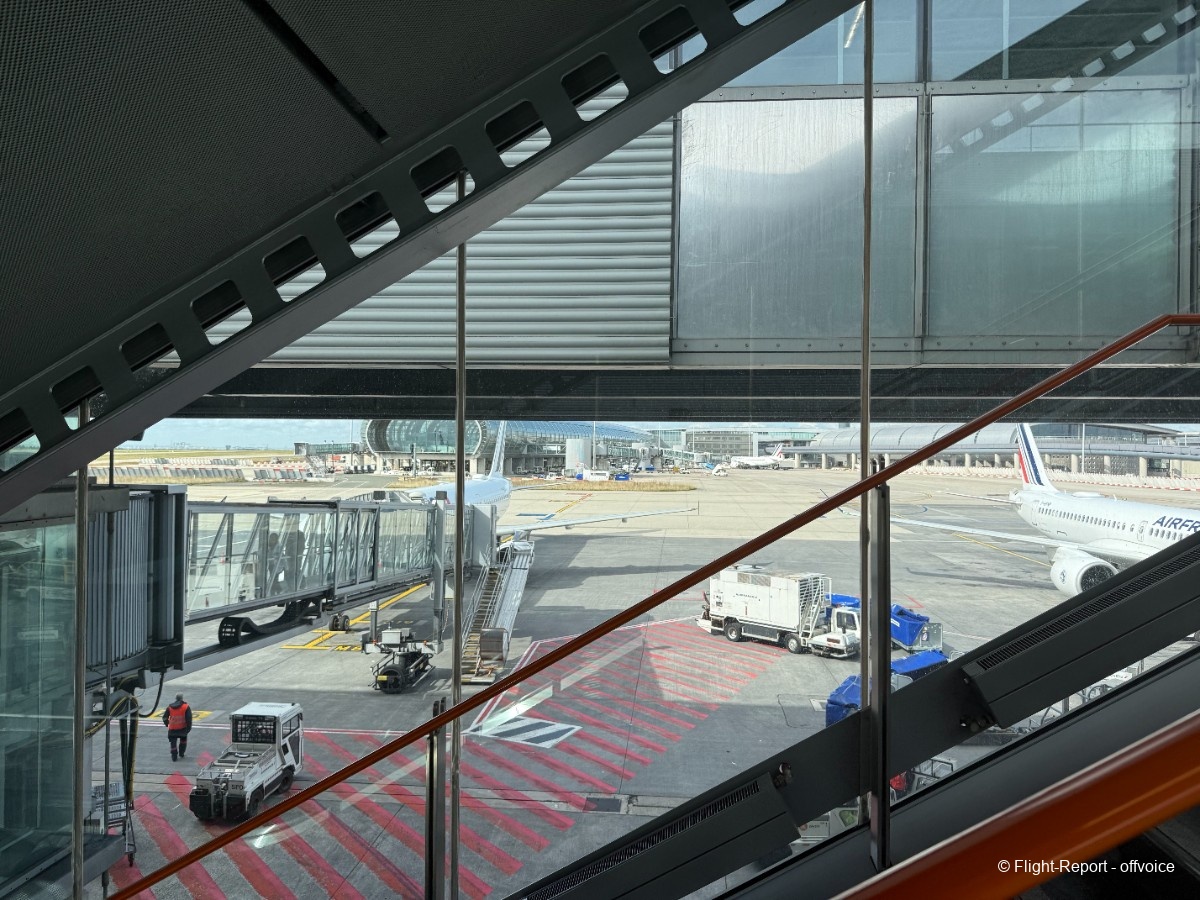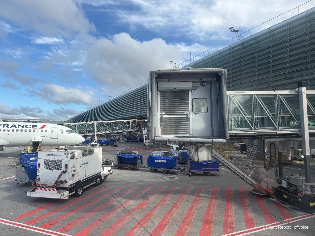Je ne m'attarde donc pas dans ce salon et me rend en porte où l'embarquement (par bus, car AF parque le dernier/premier vol de la journée au large) a débuté.