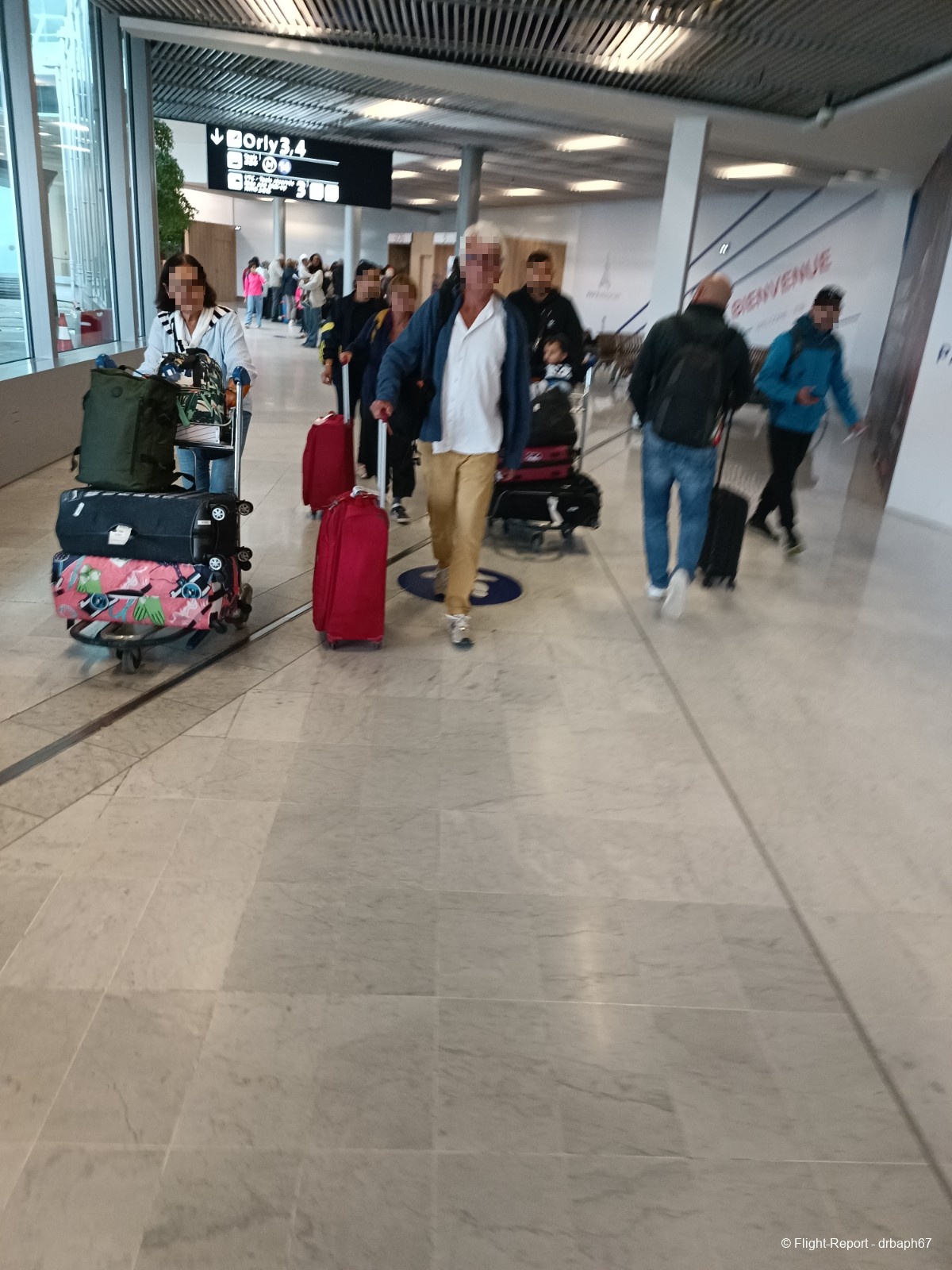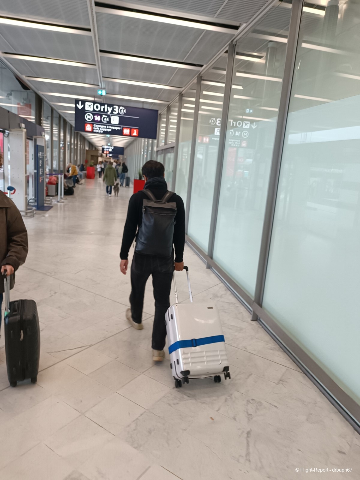 Le jour du vol, je me rendrai à Orly en VTC. Je traverserai les arrivées du Hall 3. Je serai marqué par le nombre de personnes présentes dans l'aéroport pour un vol du mercredi après midi hors de vacances scolaires. Cependant j'ai déjà connu Orly plus bondé qu'aujourd'hui