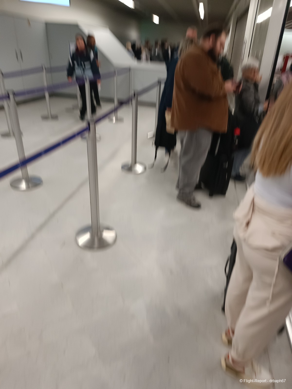 Direction ensuite l'embarquement. Celui ci commencera après une confusion liée à un entrecroisement avec celle du vol de la porte à côté (mal) assuré par la compagnie aérienne low cost verte et blanc. À l'ouverture de l'embarquement la situation revient très vite à la normale et j'embarque en zone Sky Priority.