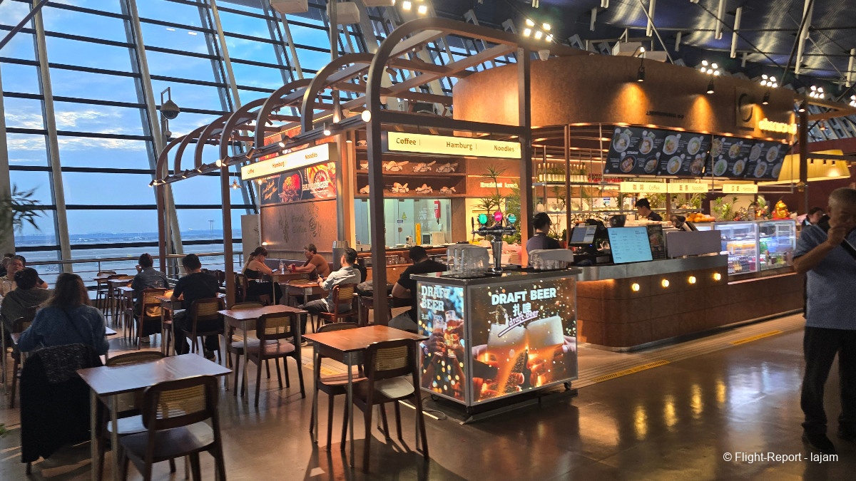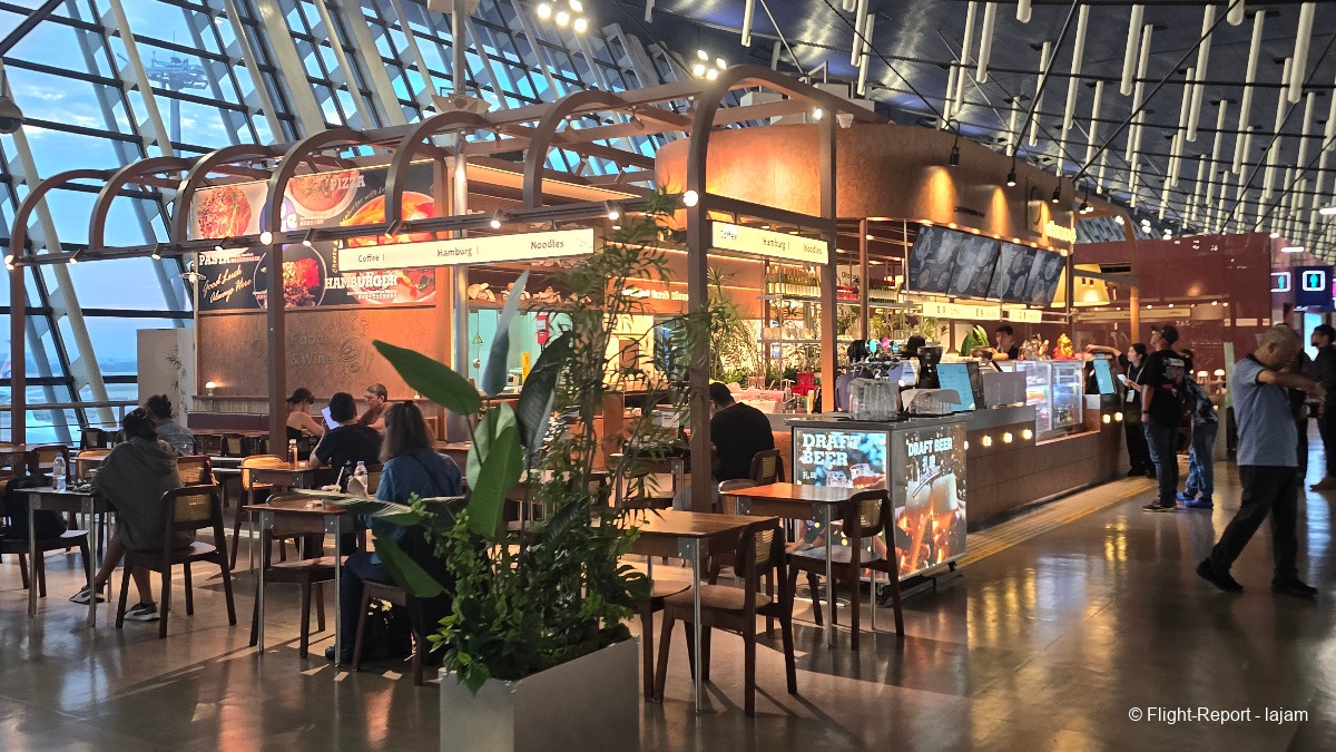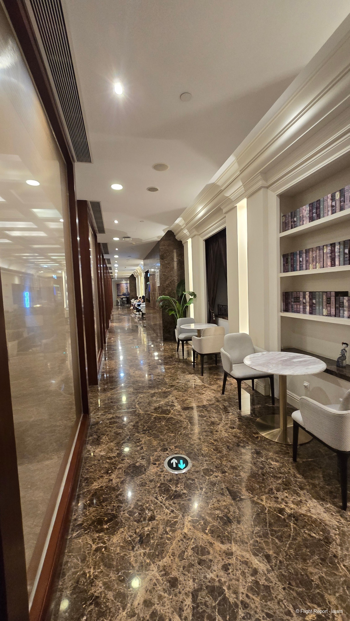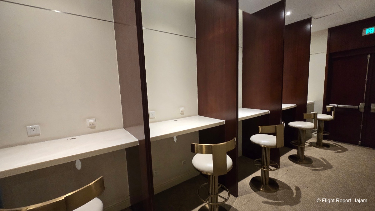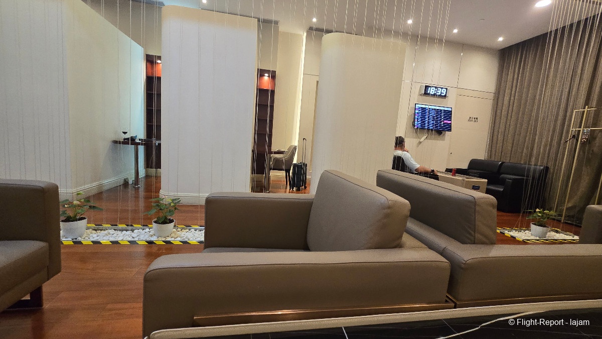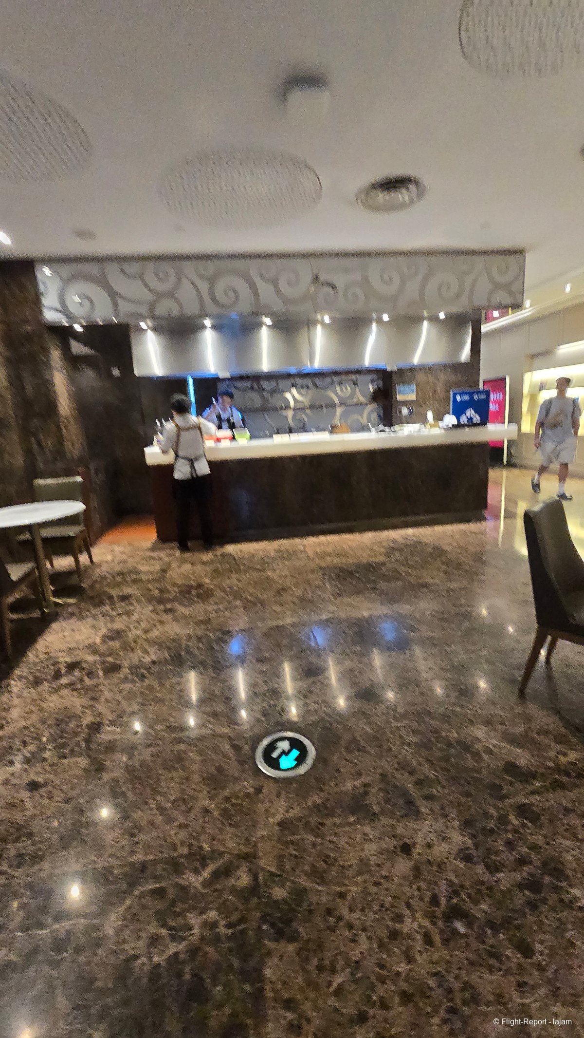 Le salon est directement après la sécurité. Il est plutôt bien. Il y a plusieurs sous-salons. Je me balade dedans pour le découvrir. Il y a un endroit de cuisine où il est possible de commander des plats. Le Wifî fonctionne bien. Le salon est plutôt calme. Il y a des alcoves pour travailler et passer des coups de téléphone et autres visios.