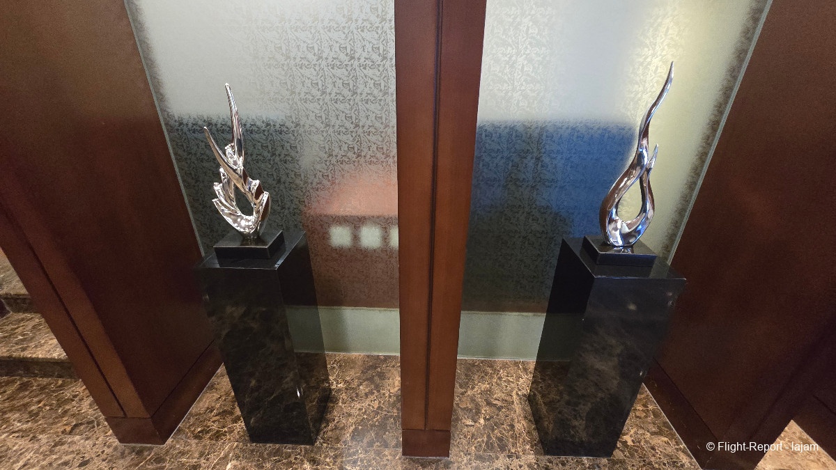 Le vin rouge n’est pas bon. Le blanc est OK. Le personnel est très serviable. Je souhaite me doucher avant de prendre l'avion. Mais il y a une bonne attente: 45 min à attendre. Mais mon attente sera un peu moins longue. Une hôtesse m'appelle. Je me rends compte que je passe devant d'autres personnes. Je n'ose rien dire. Je me dis que c'est sûrement grâce à mon statut et le vol que je prenais (l'embarquement commençait dans moins de 30 minutes quand j'ai été appelé pour la douche).