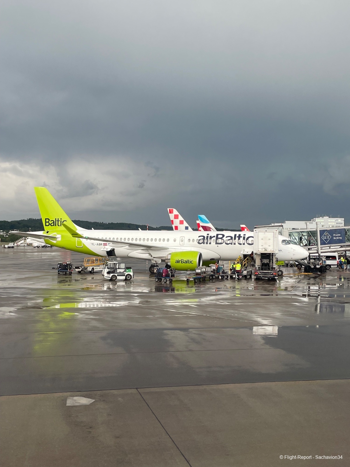 Notre avion stationne à côté d’un A220-100 de Swiss âgé de 6 ans.