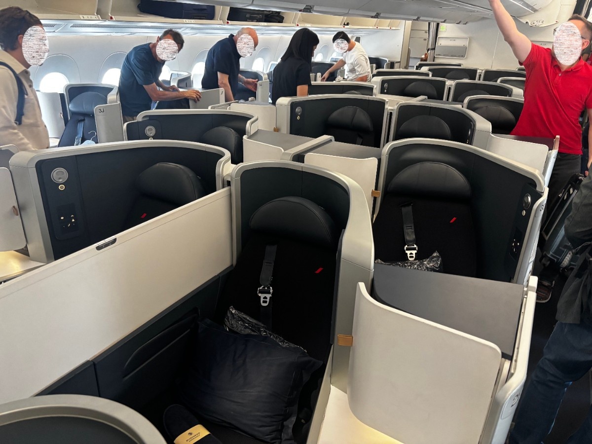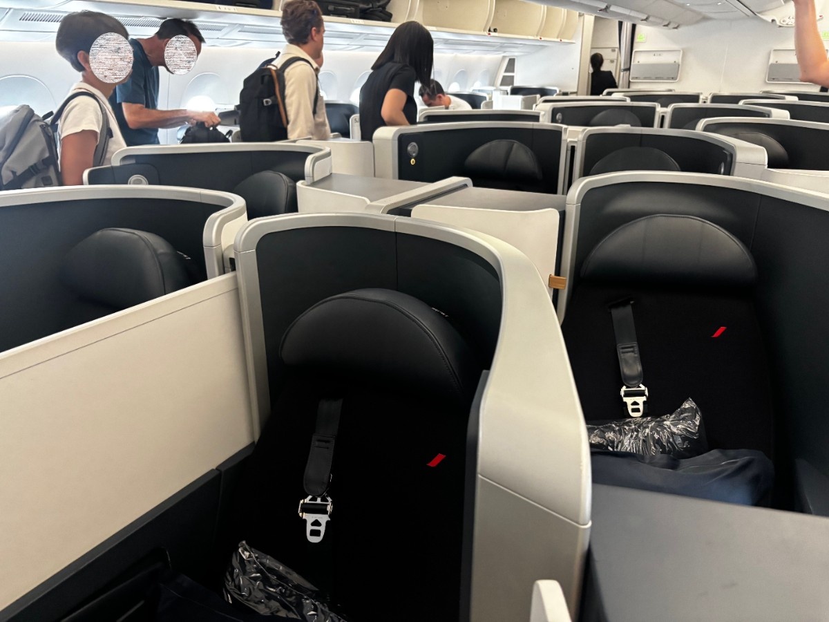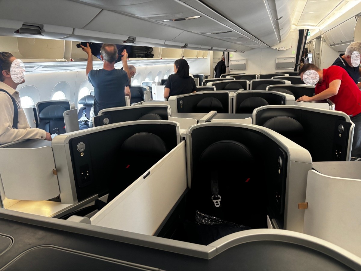 Je m'enquière de savoir s'il y a un problème, et il m'informe que oui en effet, nos surclassements ne sont pas valables et qu'il nous demande donc de rejoindre nos sièges initiaux en cabine Premium.