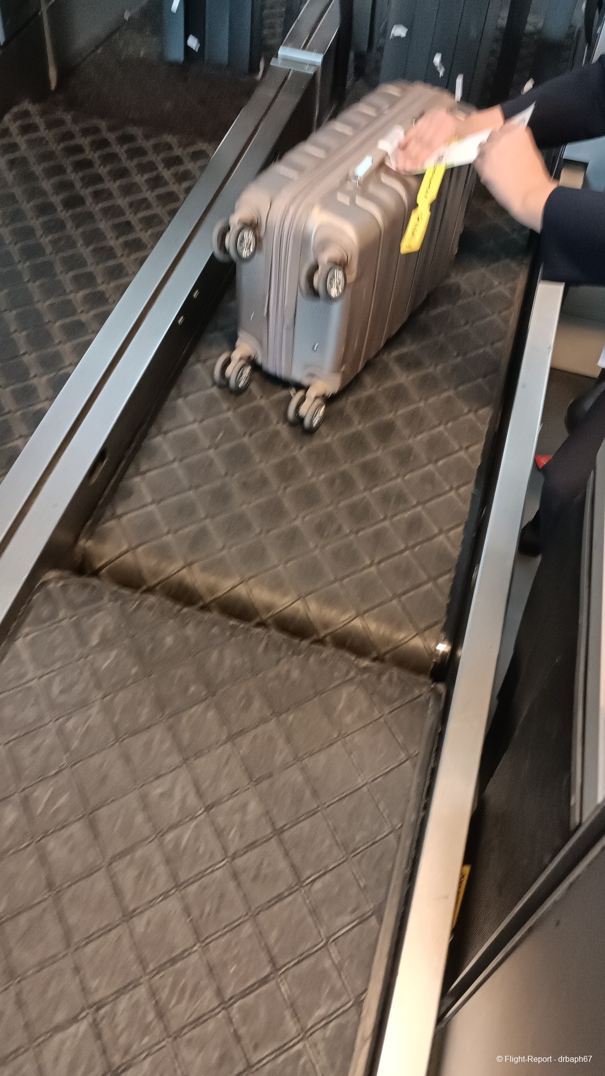 Nous arrivons en porte de sortie et nous dirigeons vers les tapis bagages. Le chemin sera inhabituel et le panneau d'affichage des tapis affectés sera à peine plus grand qu'un écran télé dans un recoin exigu sur le trajet. La livraison bagages commence en avance, l'occasion de voir qu'en dépit des efforts de TLS, l'usage de l'étiquette jaune Sky Priority à Toulouse a du chemin à faire pour entrer dans les coutumes locales.