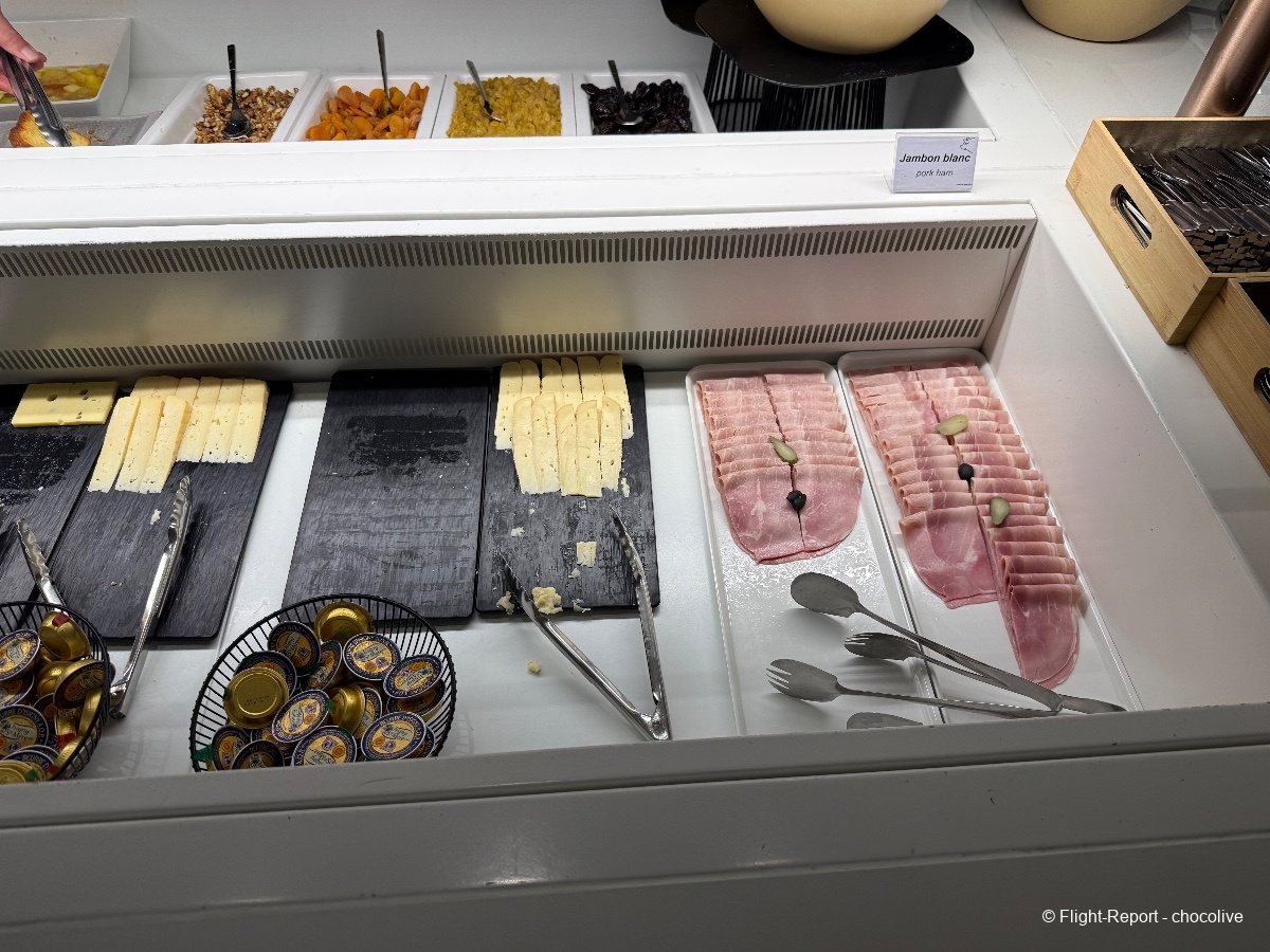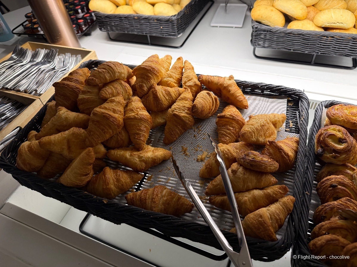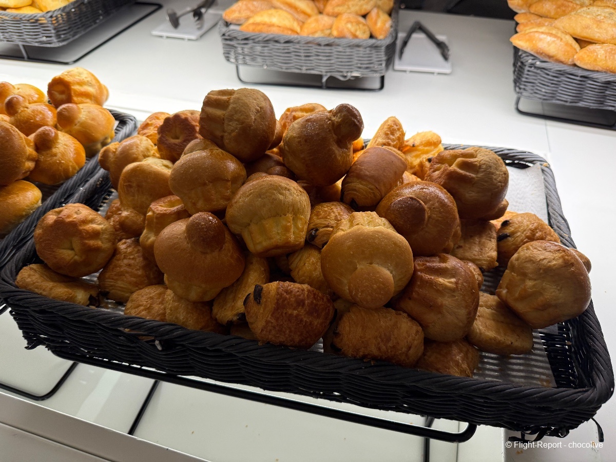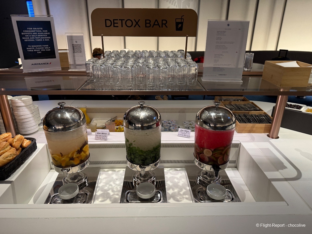 À cette heure, les réservations au spa Clarins ne sont pas encore ouvertes. Pour ma part, petit déjeuner léger avec un café et du chocolat. Bonne nouvelle : les Valrhona sont en libre service à côté des machines à café, et à cette heure, il y a du Perrier en canettes. Ouf.