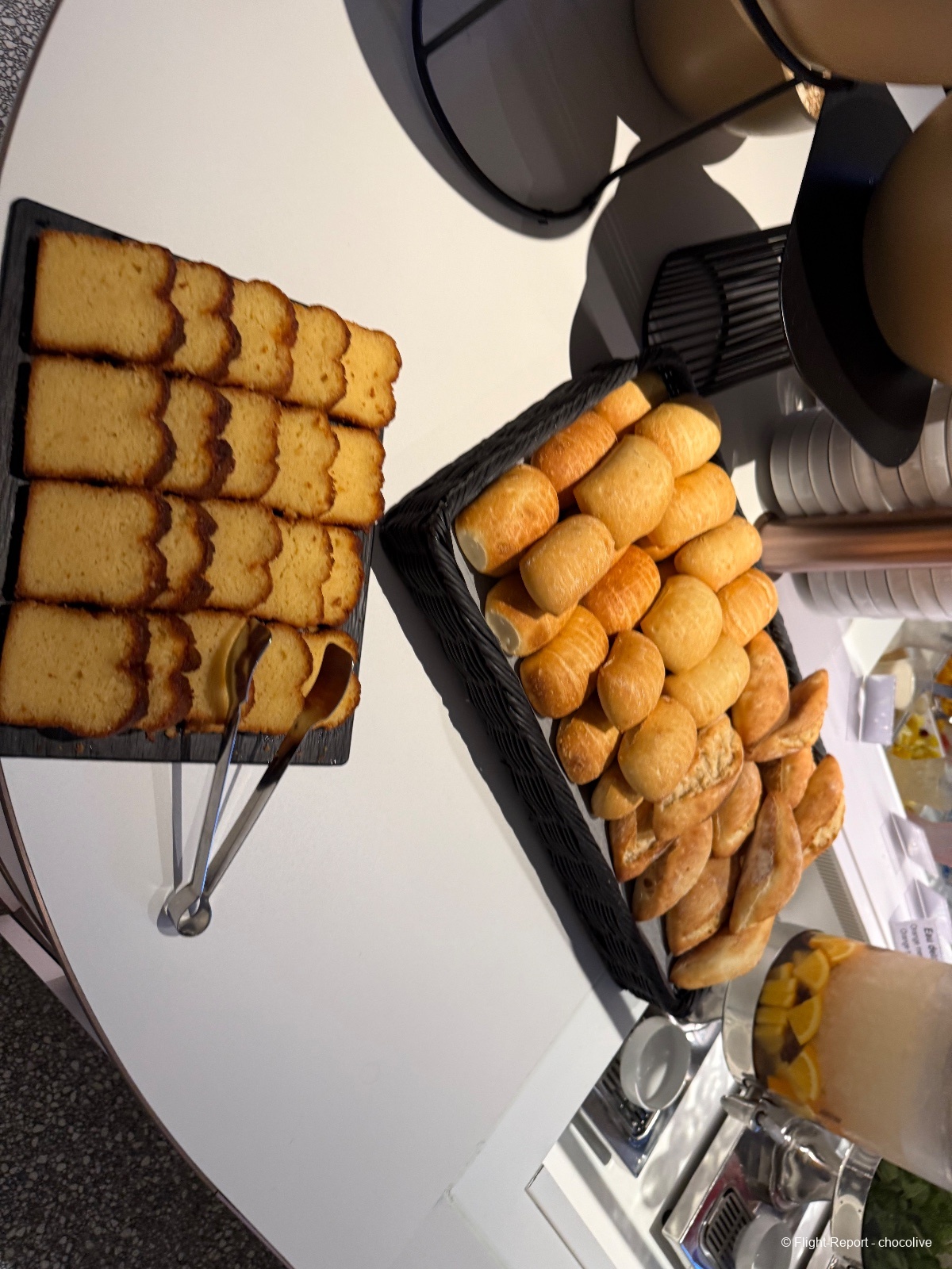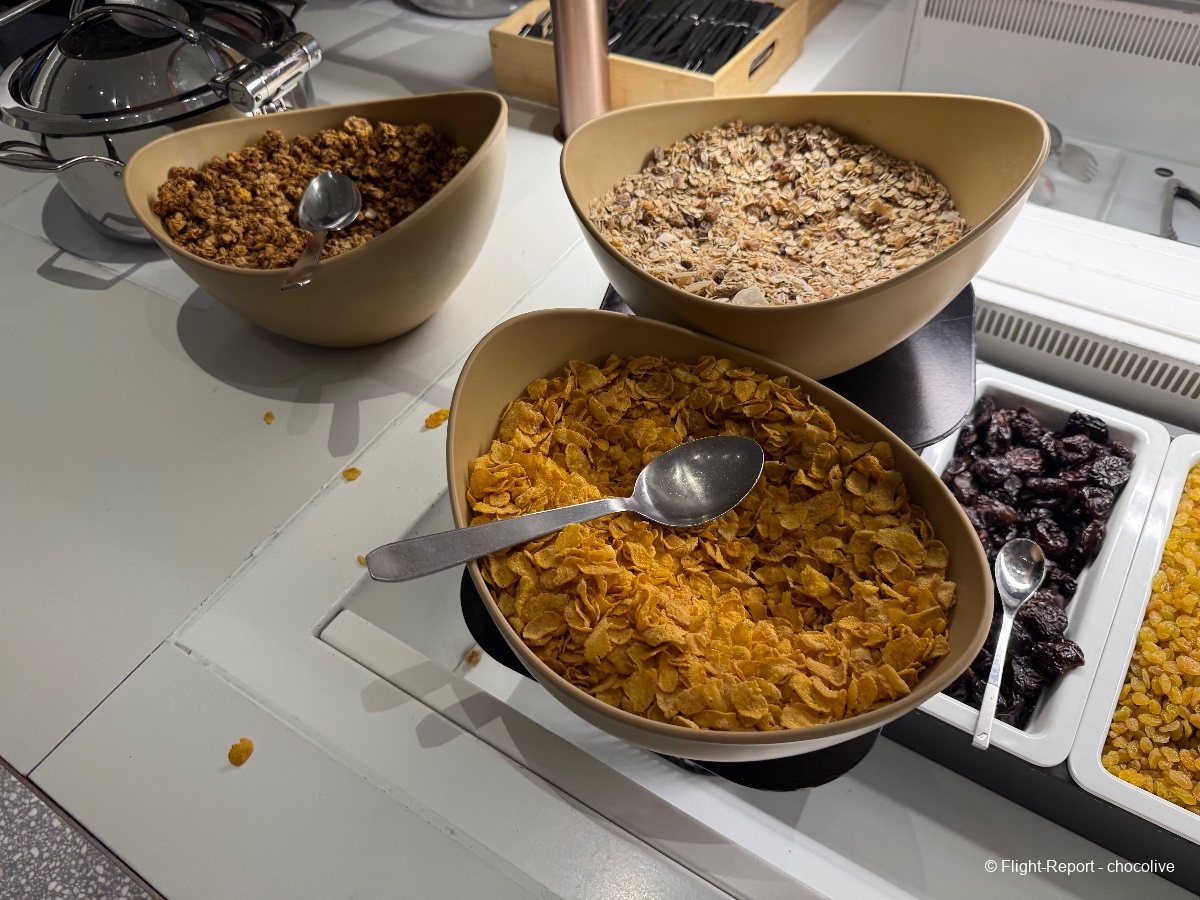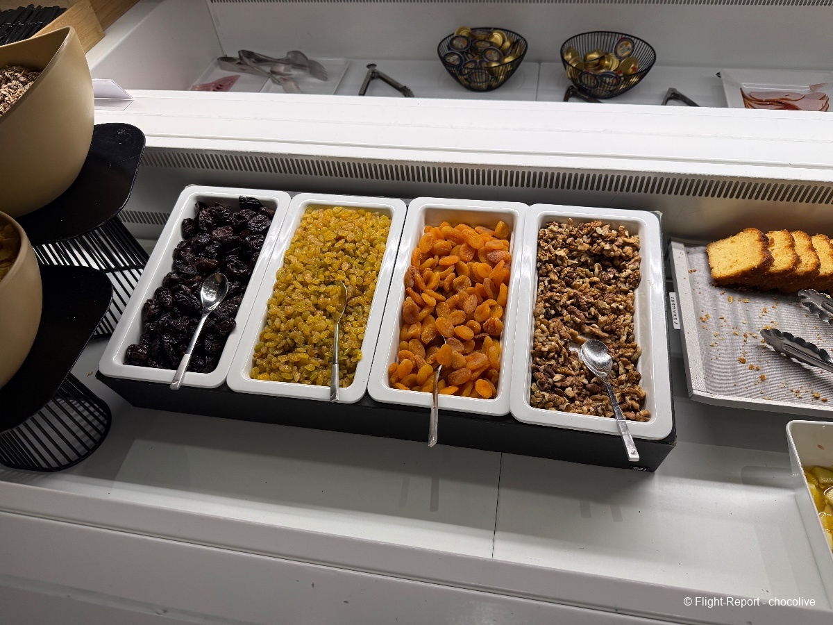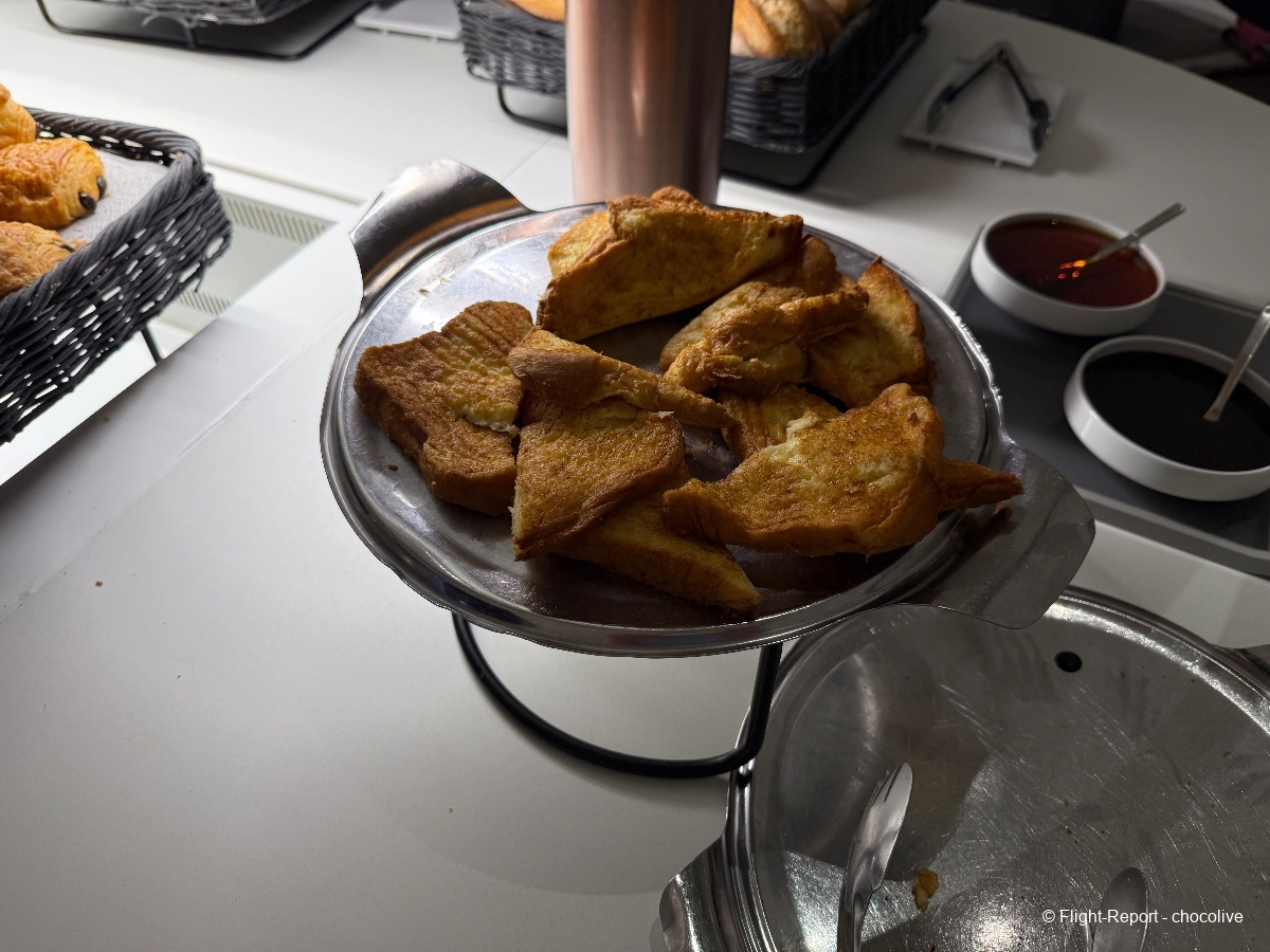 À cette heure, les réservations au spa Clarins ne sont pas encore ouvertes. Pour ma part, petit déjeuner léger avec un café et du chocolat. Bonne nouvelle : les Valrhona sont en libre service à côté des machines à café, et à cette heure, il y a du Perrier en canettes. Ouf.