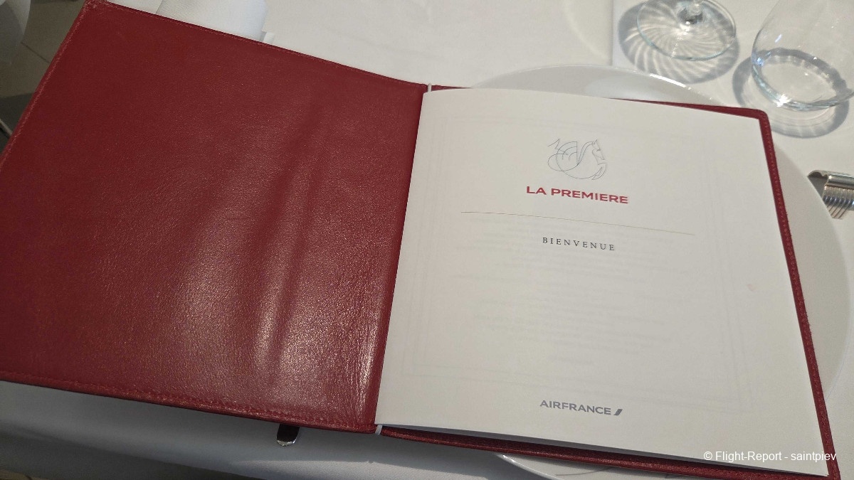 Mon hôtesse me demande si je souhaite dîner. Ma réponse étant affirmative, le menu m'est apporté. Elle m'informe que le service pourra démarrer très rapidement après le départ. C'est parfait car il y est tard, déjà 23h15 !