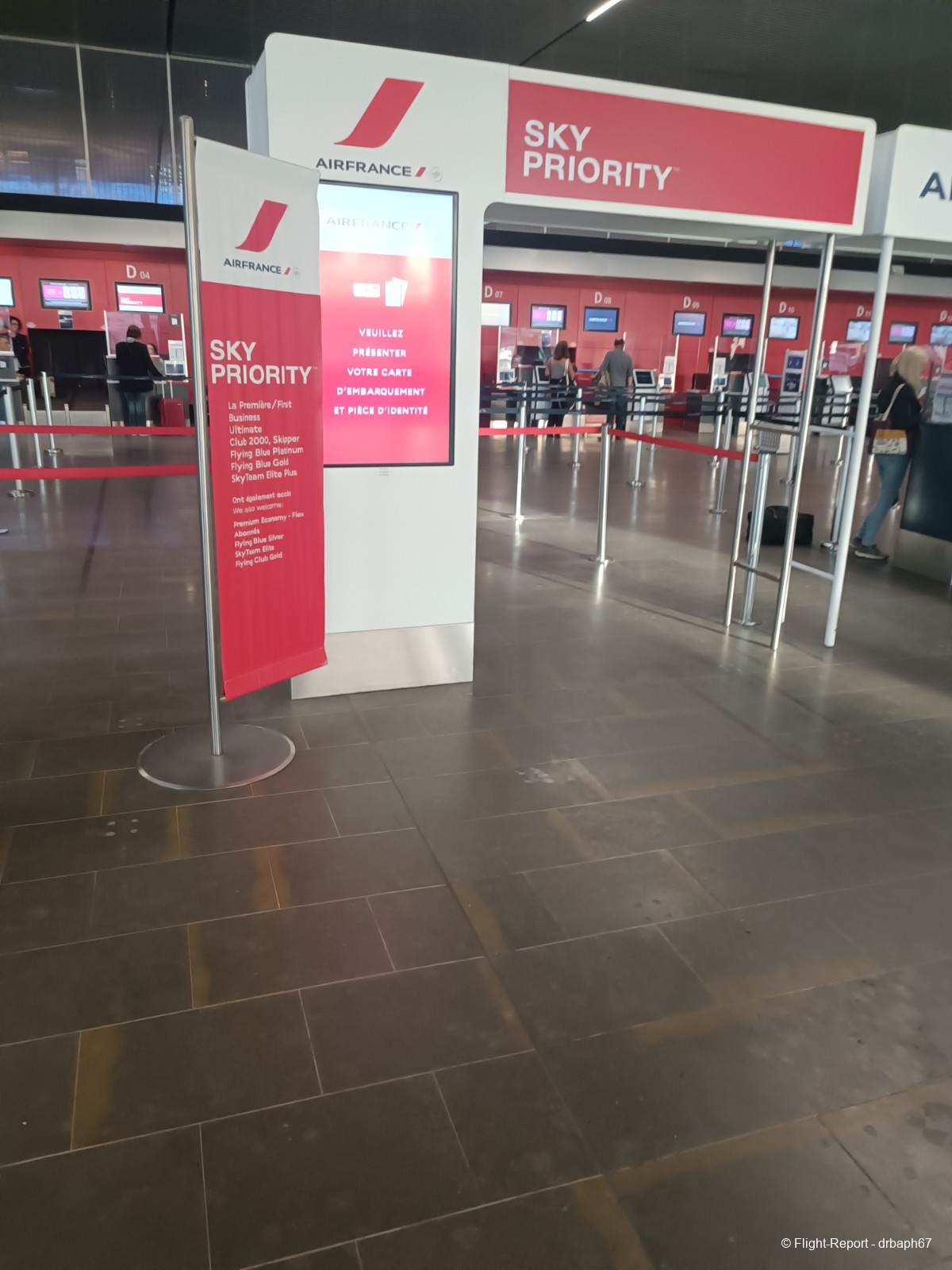 Je me dirige ensuite vers les comptoirs Air France pour enregistrer mon bagage en soute, comme d'habitude je prends la file Sky Priority mais il n'y a pas de queue. Le bagage sera vite enregistré et je me dirige vers la PIF.