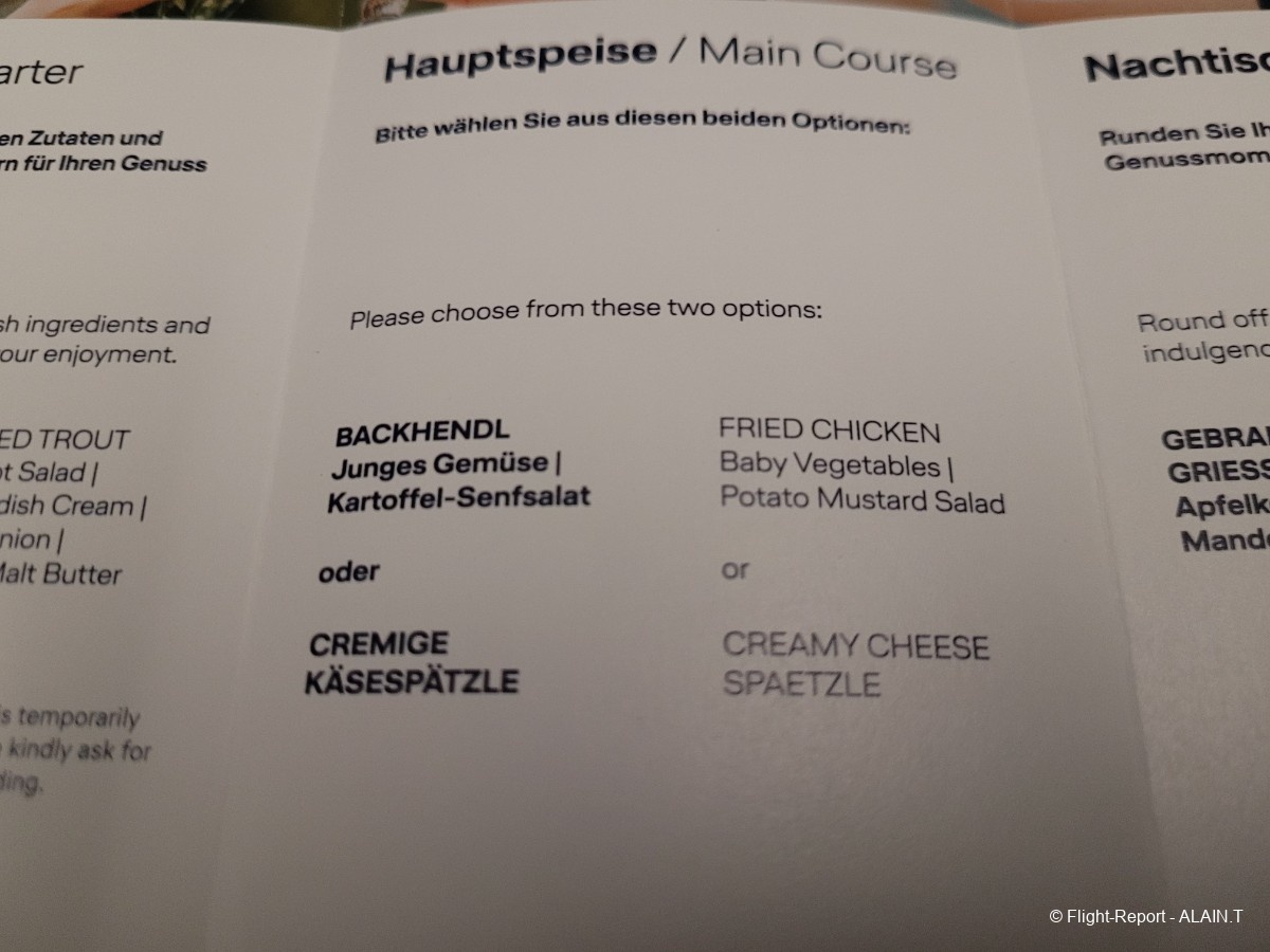 Sur ce vol, quelques jours avant le départ, par email, il nous a été proposé de choisir le plat principal que l'on souhaitait sur une liste de 5 plats différents de ceux du menu. L'hôtesse nous demandera si le plat proposé est bien celui réservé. Ce qui est le cas.