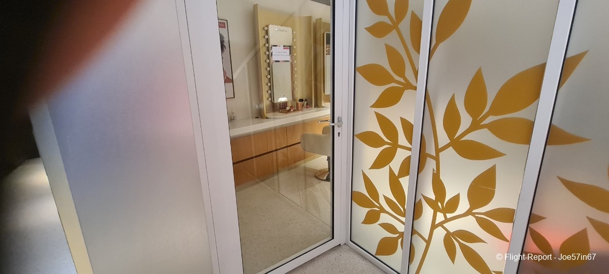 Je me suis installé à l'étage car il y avait moins de monde. L'espace Clarins n'était malheureusement pas encore ouvert. Il y a un espace douche et un espace pour dormir. Je vous montre les quelques photos même si vous connaissez déjà le salon par cœur.