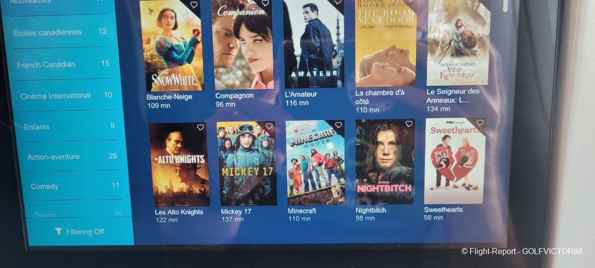 l'IFE avec des nouveautées en quinze jour. NE PAS OUBLIER SES ECOUTEUR autrement c'est 19 dollards Canadien.