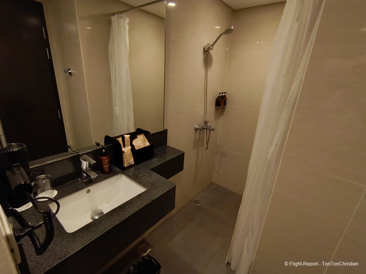 Avant le long vol de 10h45 qui m'attend, je prends une douche dans cet espace qui est très propre.