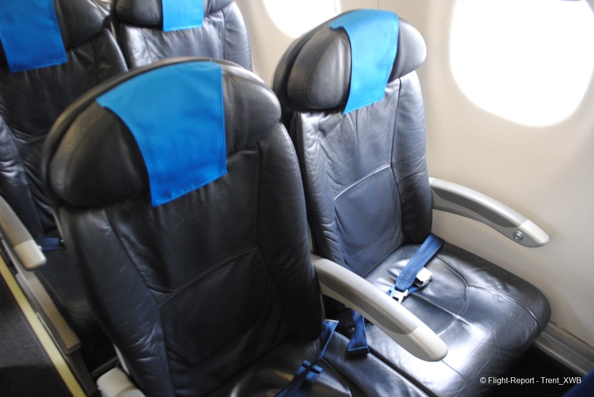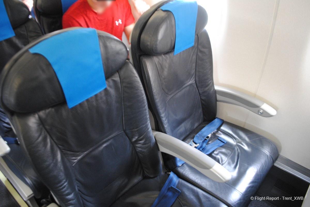 My seat is 15A right after the wing. The seat, having a lot of padding, feels comfortable and has (almost) 18.0" width between armrests. The seat has adjustable headrest, leather upholstery, tray table and seat pocket. The row pitch is OK. Having flown on a quite a number of different Embraer operators, I can say that this seat model is one of the best for Embraers, so kudos to LOT.