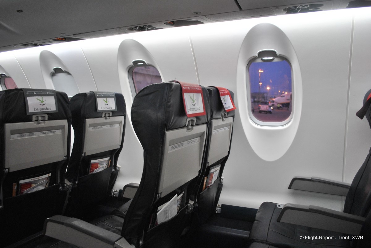 The cabin consists of 100 seats in standard 2-2 layout, with some front rows used for "eurobusiness" depending on the load.