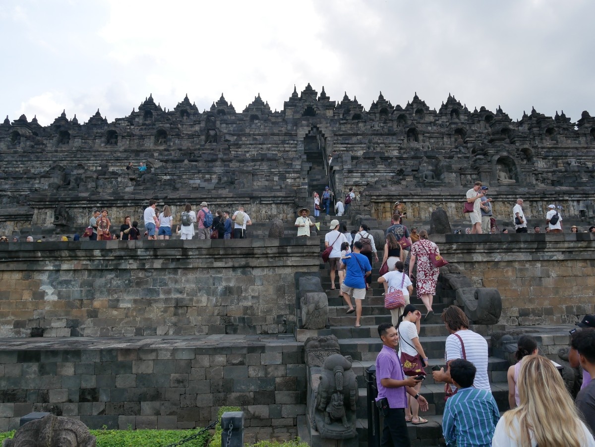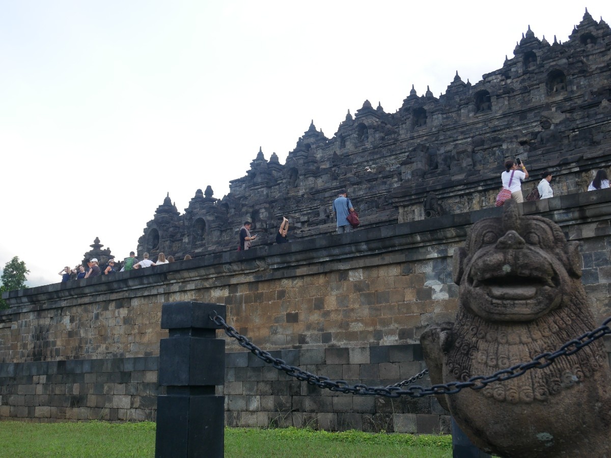 A Borobudur (temple Bouddhiste construit entre le 8éme et le 9éme siècle de notre ère), la visite est particulièrement encadrée depuis peu, et elle se fait accompagnée d'un guide obligatoirement.