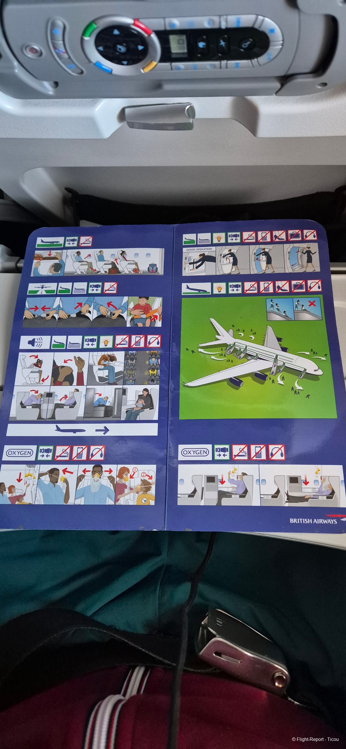 Sans pour autant être très vielle, on sent que la cabine n'est plus toute jeune non plus. Les écrans sont de qualité convenable mais loin de celle proposée sur un A350 par exemple. Les consignes de sécurité sont diffusées via un film humoristique so british. Avec ma copine, nous cherchons pendant un tout petit moment l'endroit pour brancher nos casques audio pris depuis la maison et comprenons finalement que cela se fait via l'accoudoir. Je ressens cependant un peu l'âge de cet avion sur ce point aussi car la qualité sonore n'est pas optimale et il y a des sortes de grésillements de temps en temps. Cela fera toutefois l'affaire.