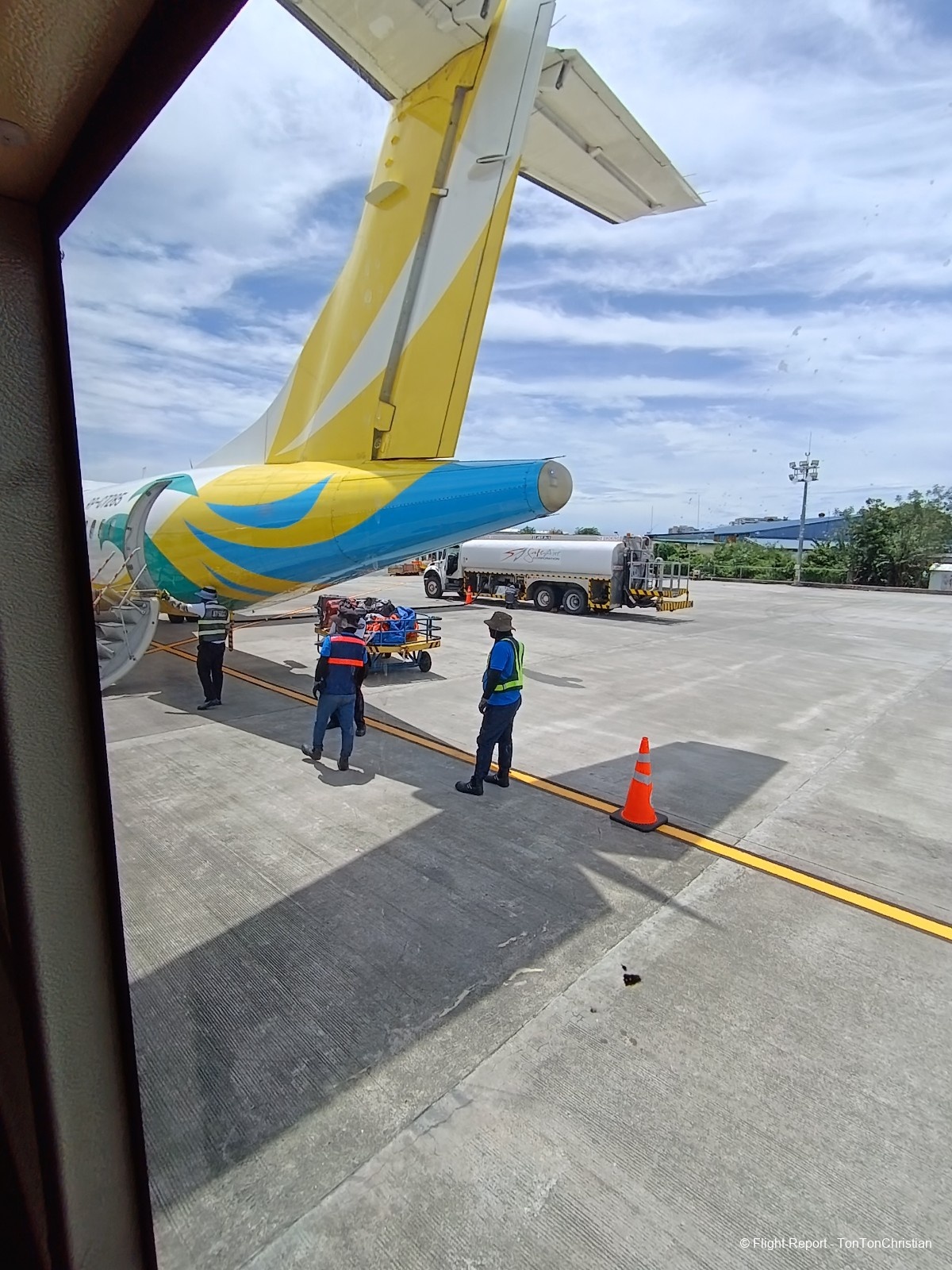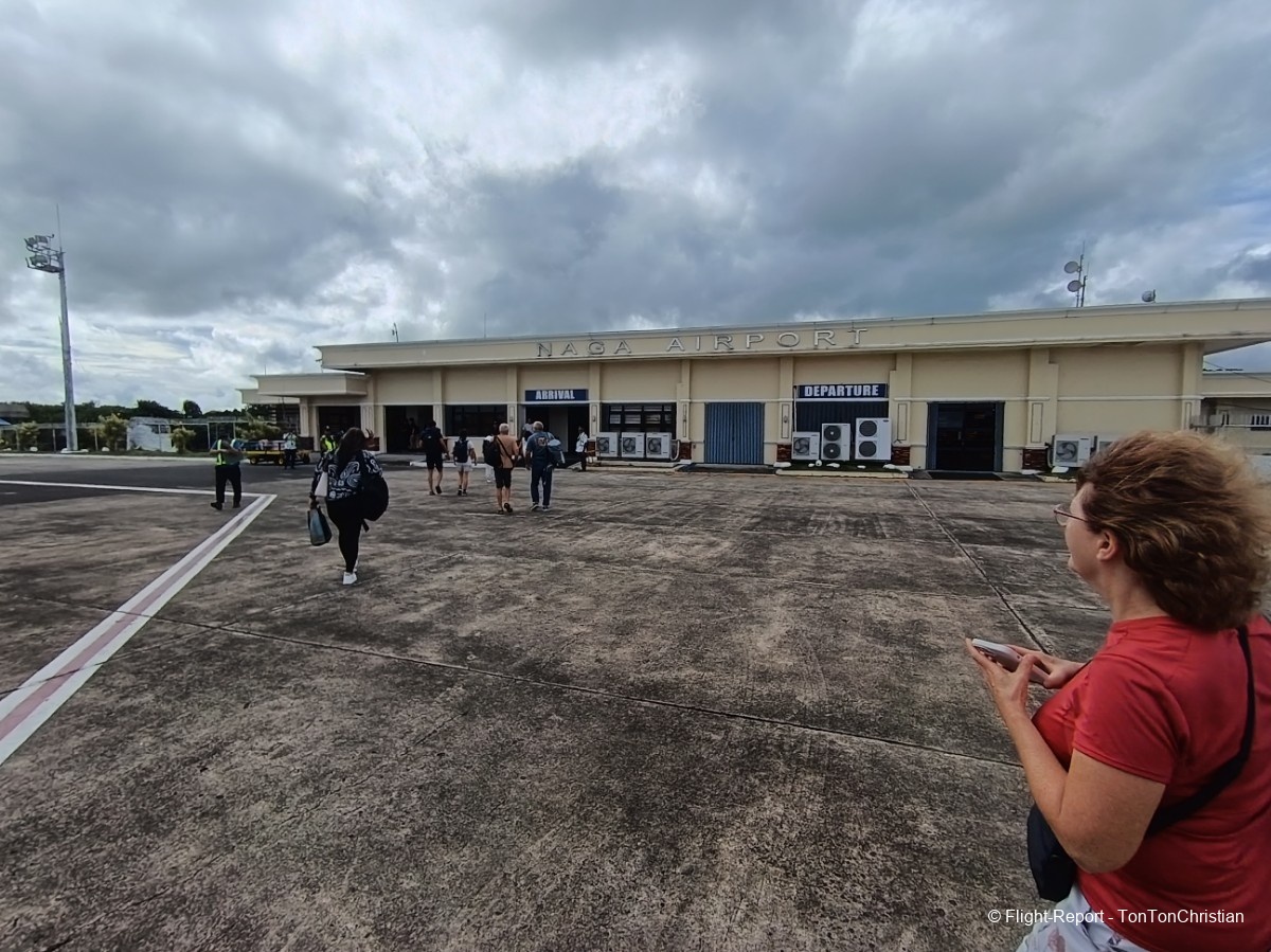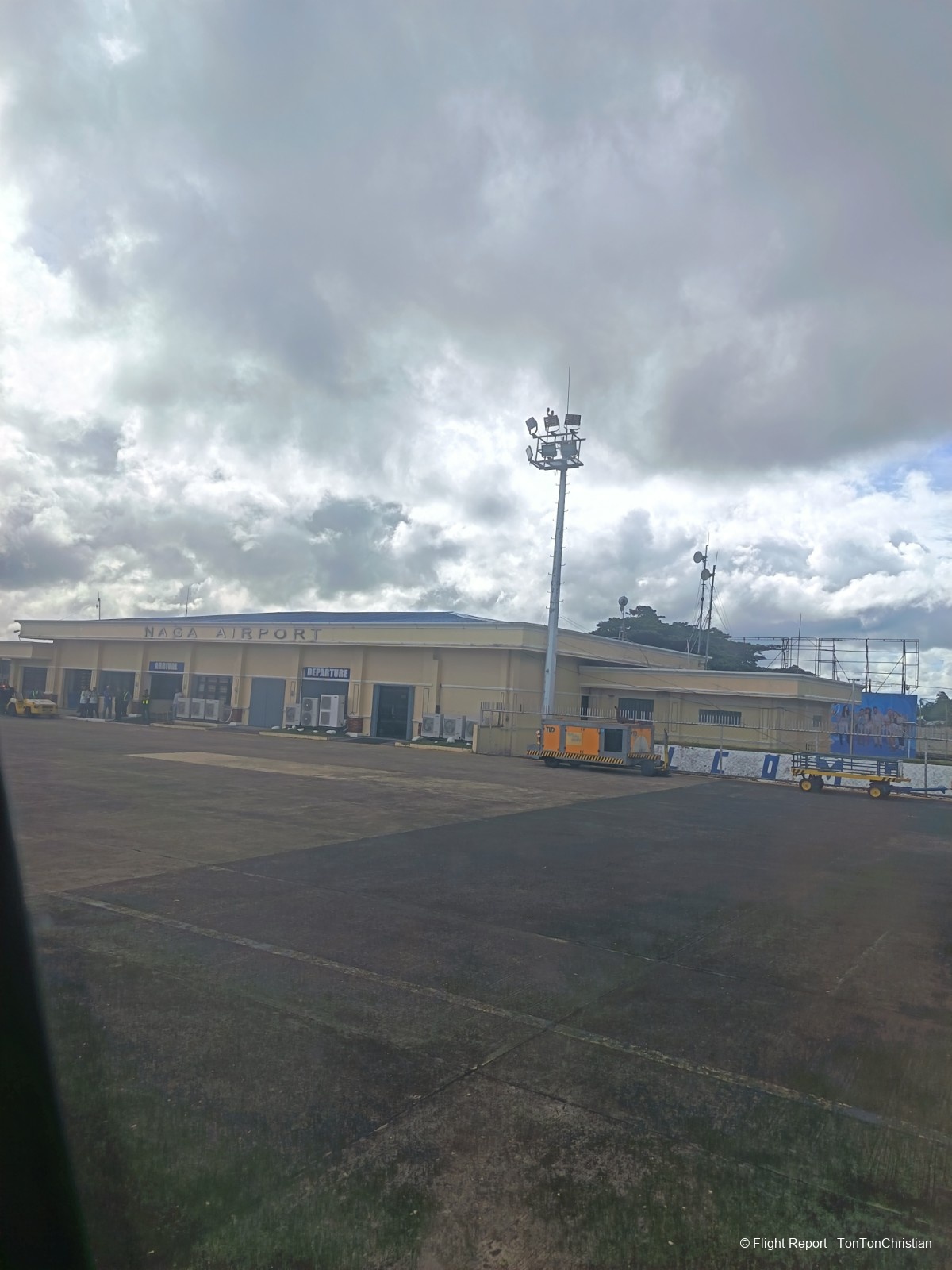 Petit taxi et longue attente avant de rejoindre la piste 31 (face nord ouest) car il y a des intempéries sur Naga-city et notre pilote nous explique qu'il doit attendre l'autorisation de décollage.