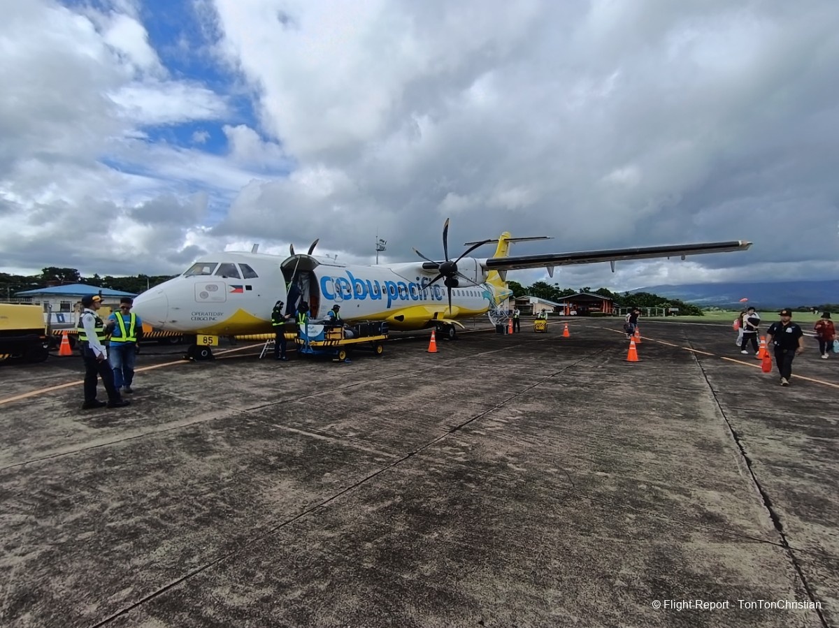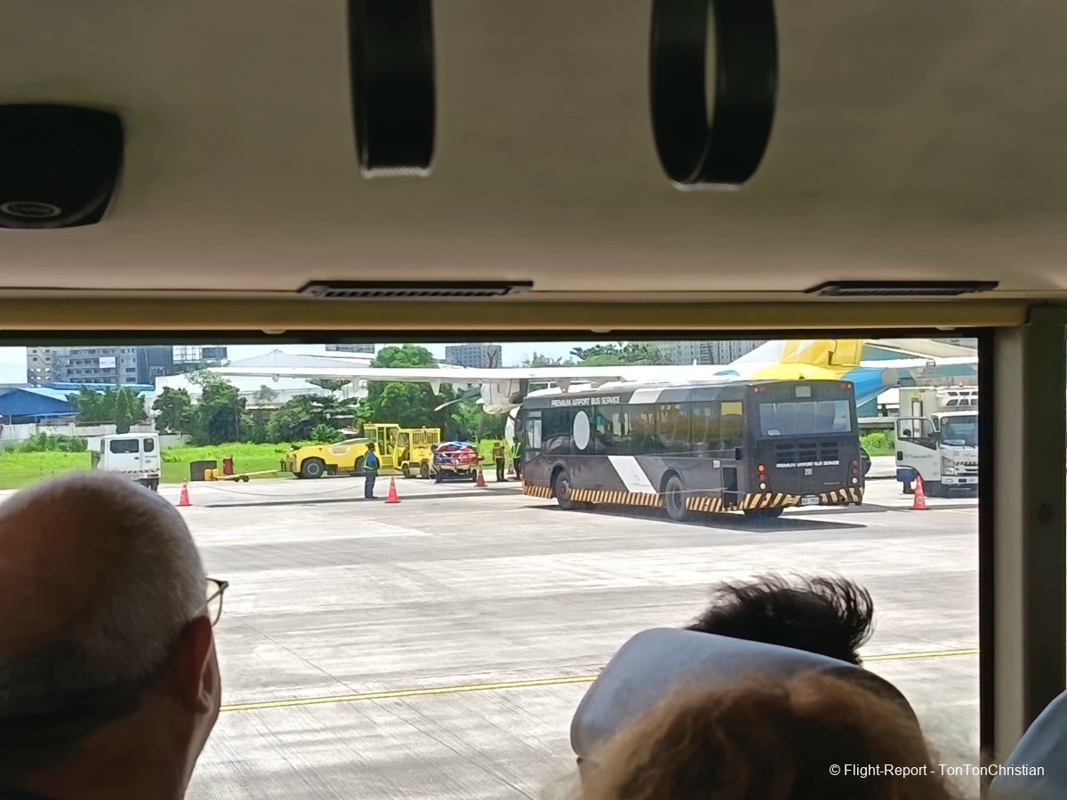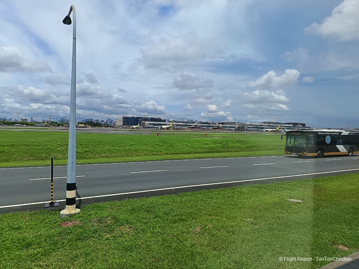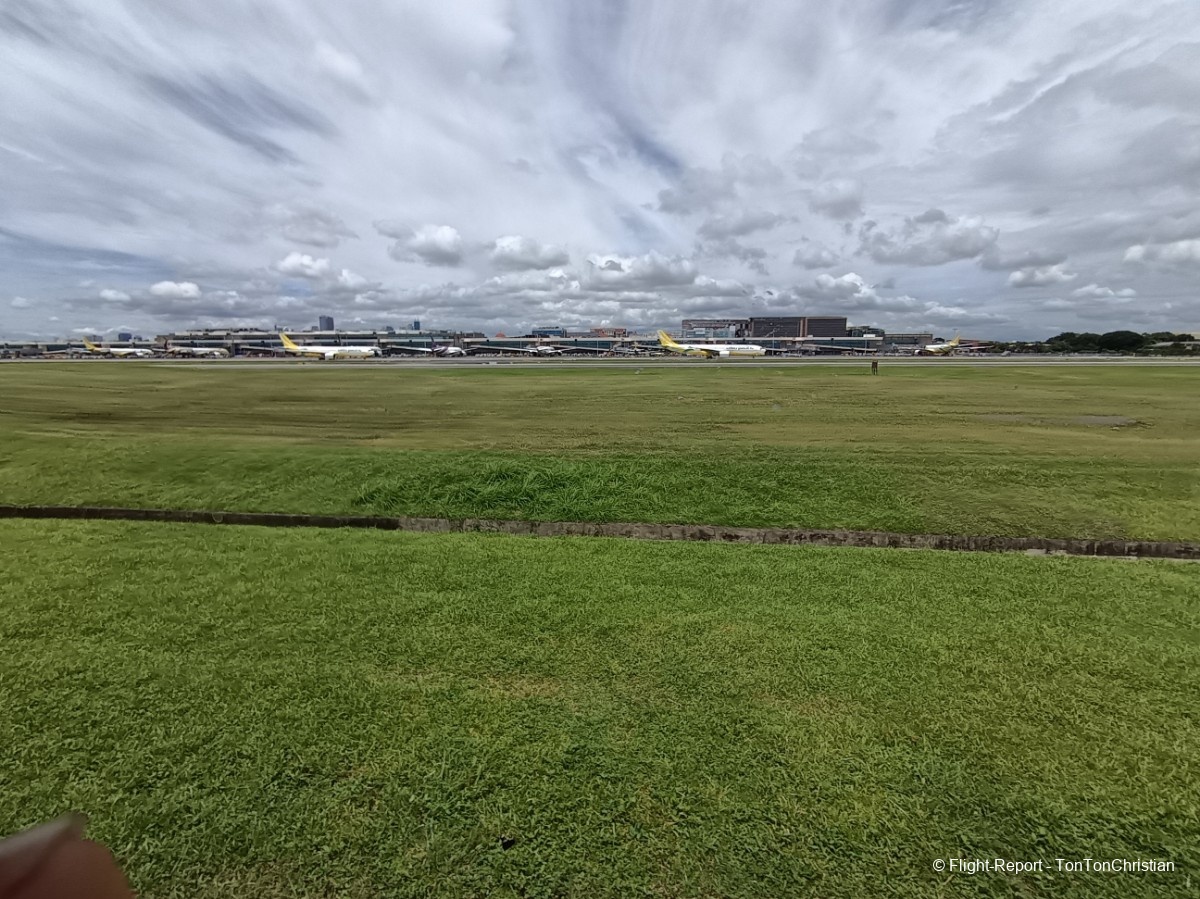 Petit taxi et longue attente avant de rejoindre la piste 31 (face nord ouest) car il y a des intempéries sur Naga-city et notre pilote nous explique qu'il doit attendre l'autorisation de décollage.