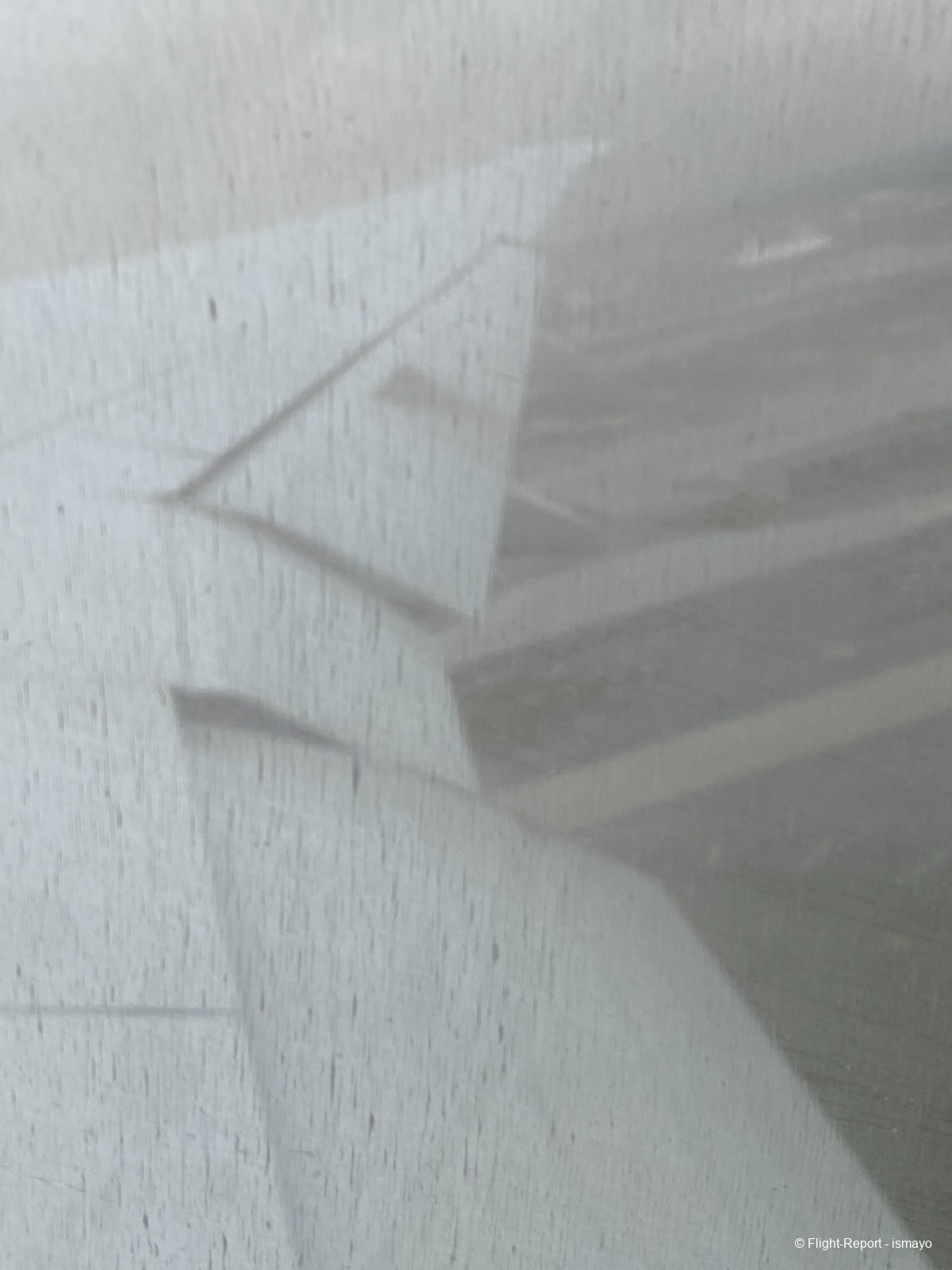 Et plusieurs minutes plus tard vient l'heure du pushback, au moment où mon paternel me montre un autre point faible de l'appareil en terme de propreté : les rayures sur le hublot à côté duquel il est assis…