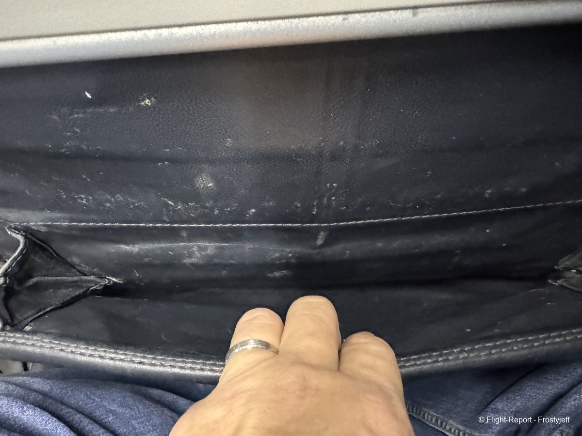 Au développé, la tablette de Mme présentera les stigmates de vol précédent, efficacement retiré avec les lingettes pris en amont lors de l'embarquement.