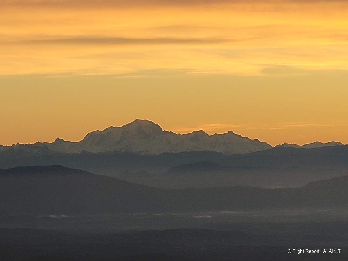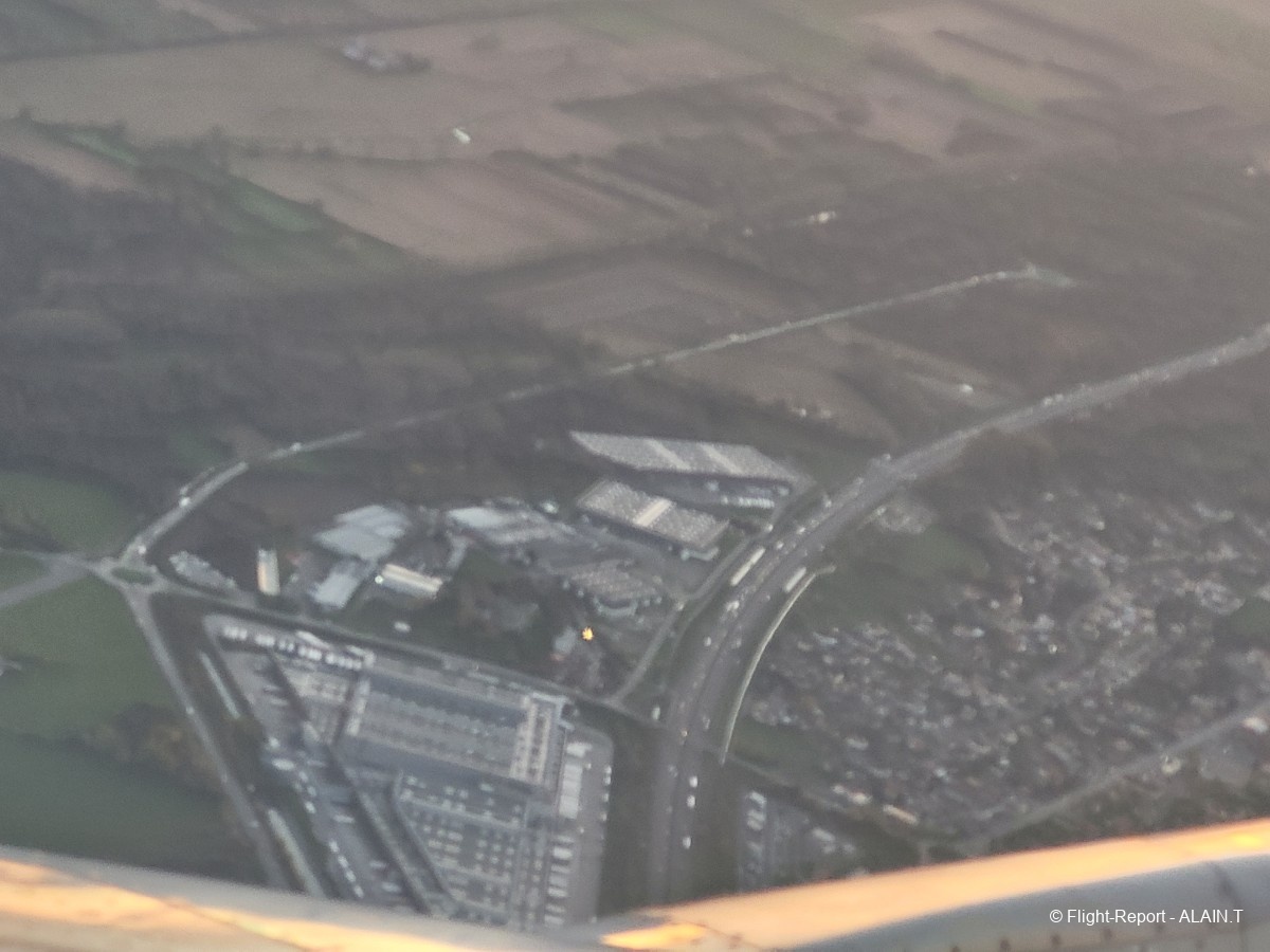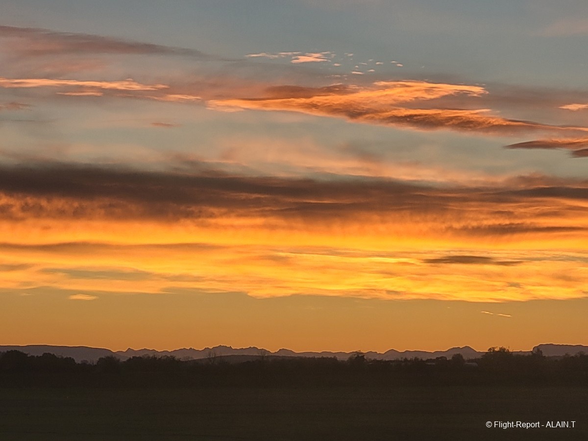 Nous approchons du seuil de piste et les montagnes apparaissent, ainsi que des vols en arrivée sur Lyon.
