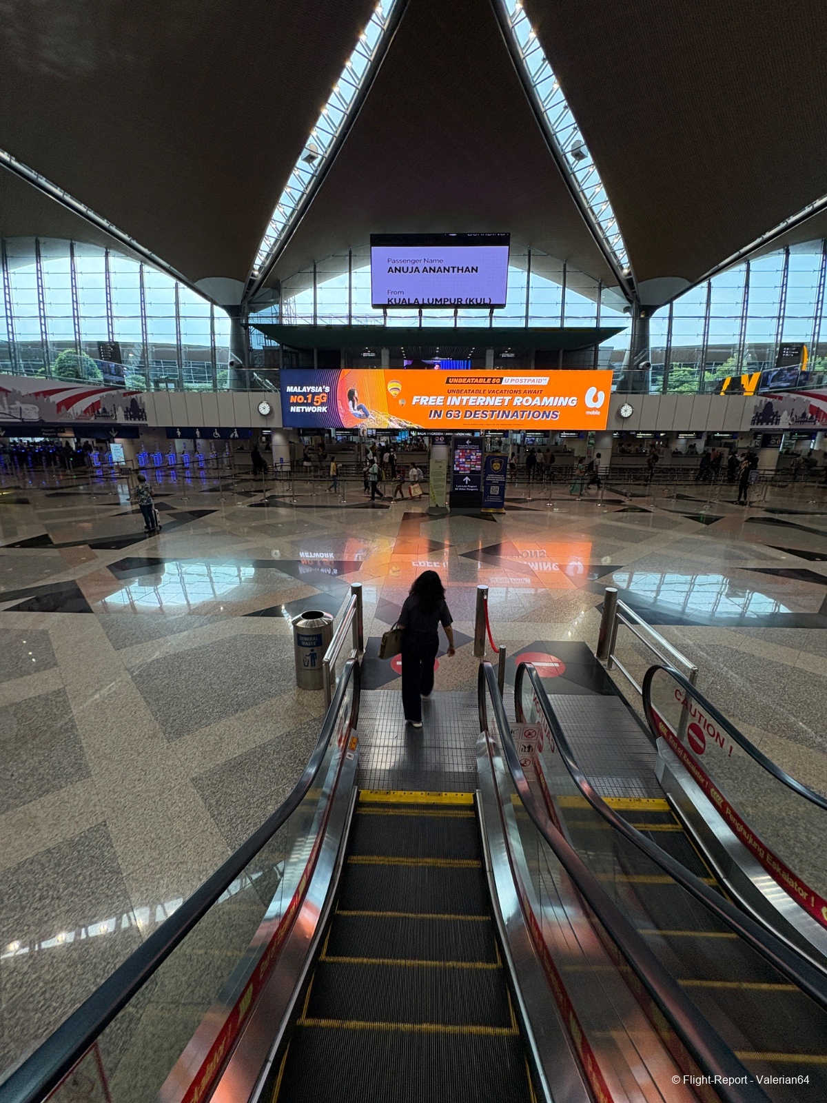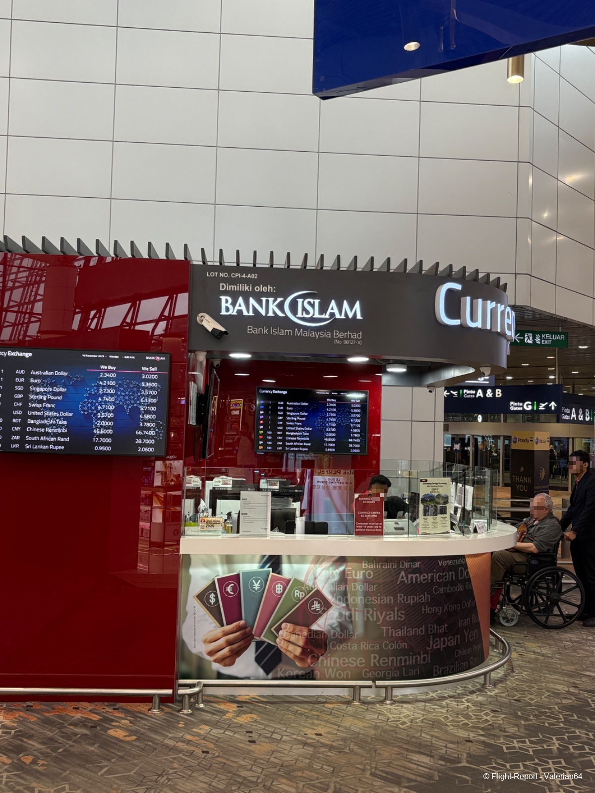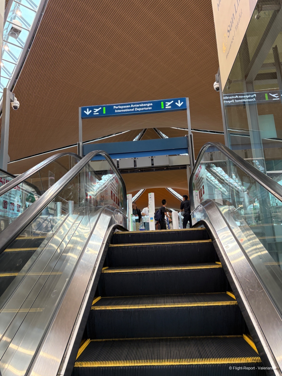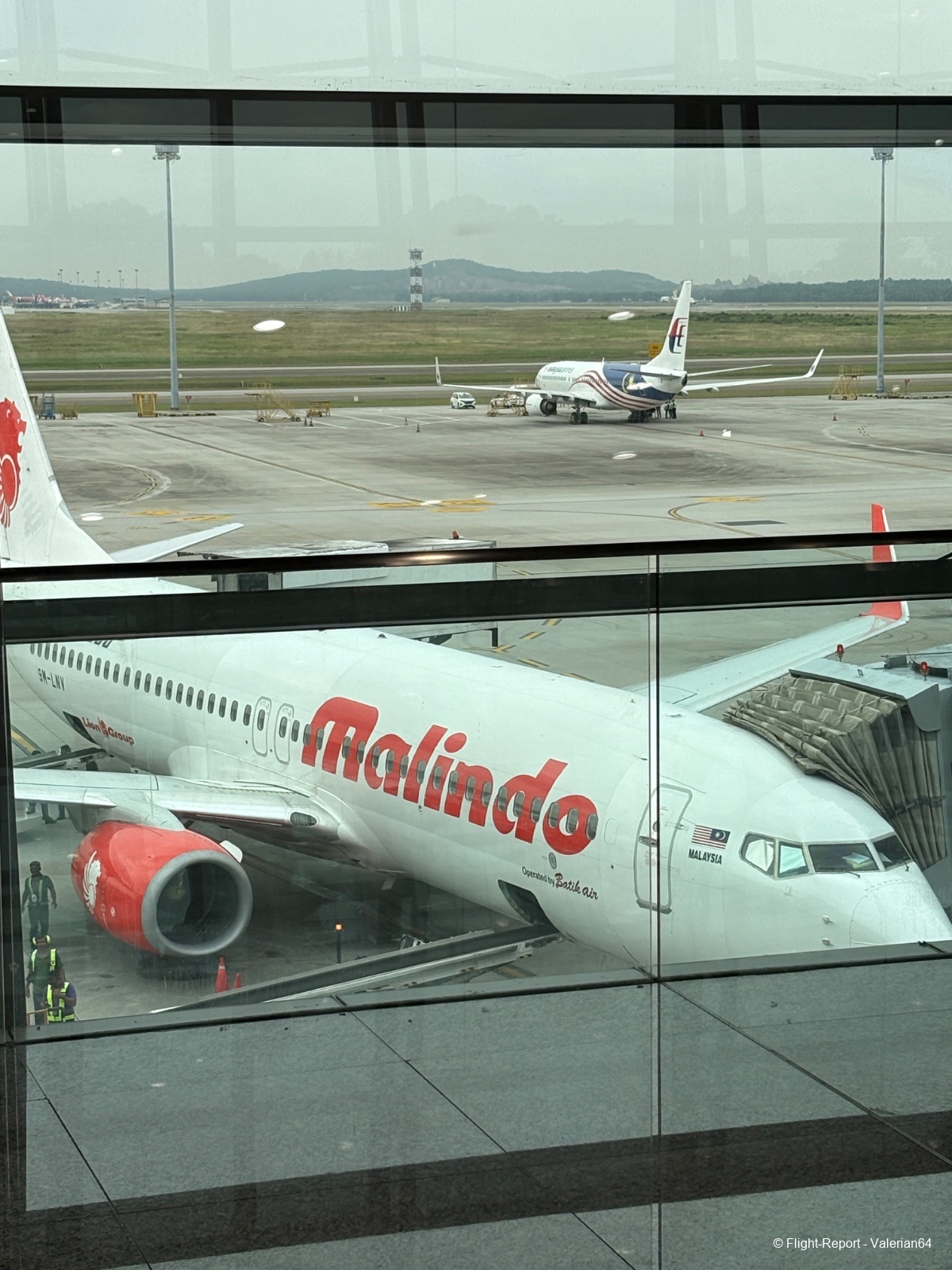 La dépose des bagages fut immédiate, le passage à la PAF tout aussi fluide. Puis passage par un scan bagages. À 10h, j’étais airside. L’attente se fait dans un long et moderne couloir, avec quelques boutiques duty-free habituelles et des décors malais. De larges baies permettent de spotter, mais la multiplication des vitres rendait difficiles les prises de vues.