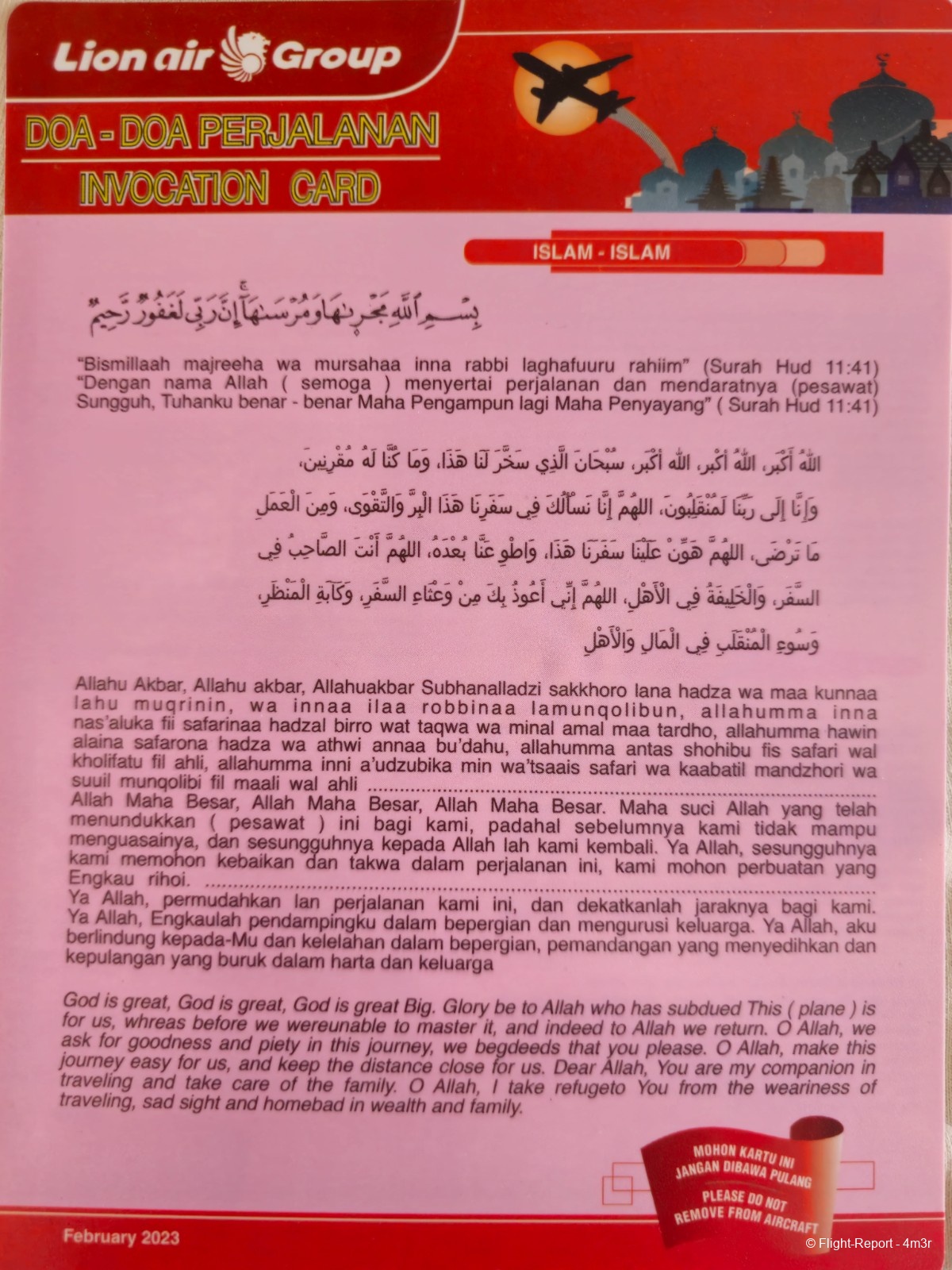 Avant le décollage, différentes cartes (Sécurité appareil, FAQ & invocations religieuses)