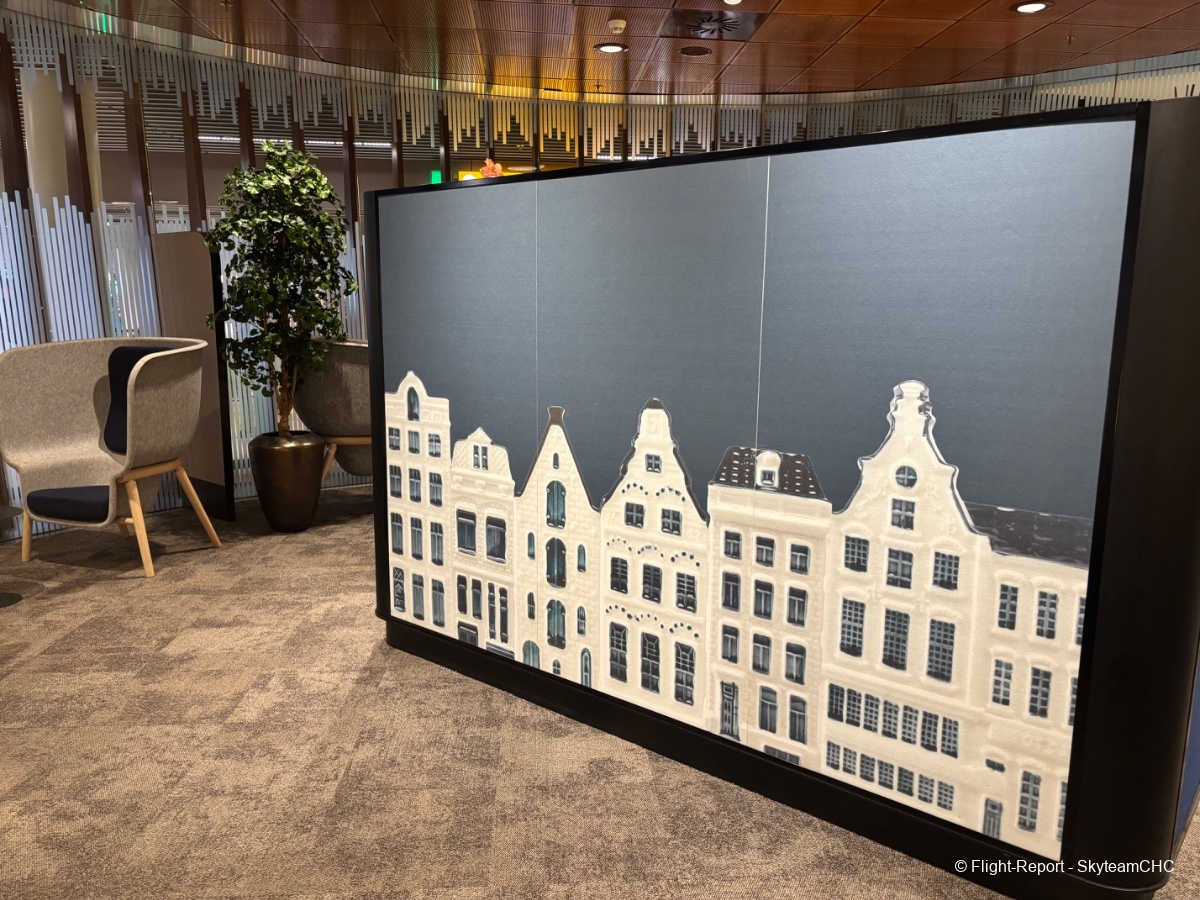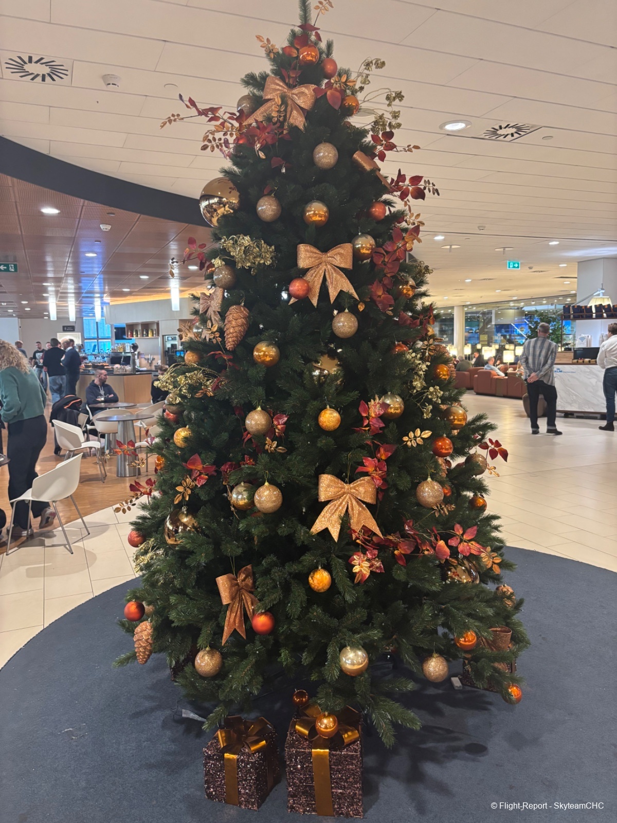 Le salon KL à AMS semble offrir de quoi bien petit-déjeuner : la présence de fruits est toujours appréciée et celle du sapin peut-être prématurée mais réjouissante