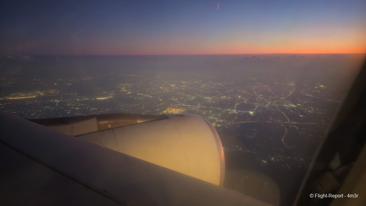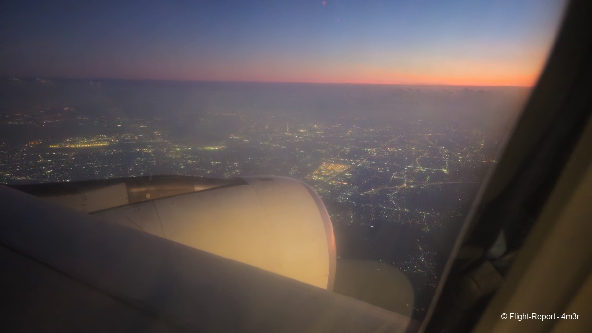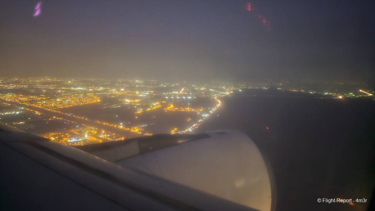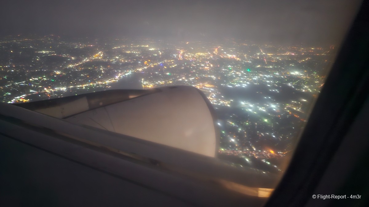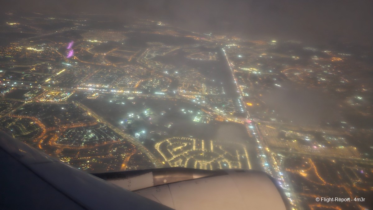 La métropole du Caire est en vue mais l'oiseau va effectuer quelques zigzags, le commandant de bord expliquera qu'il y a un trafic important dans CAI